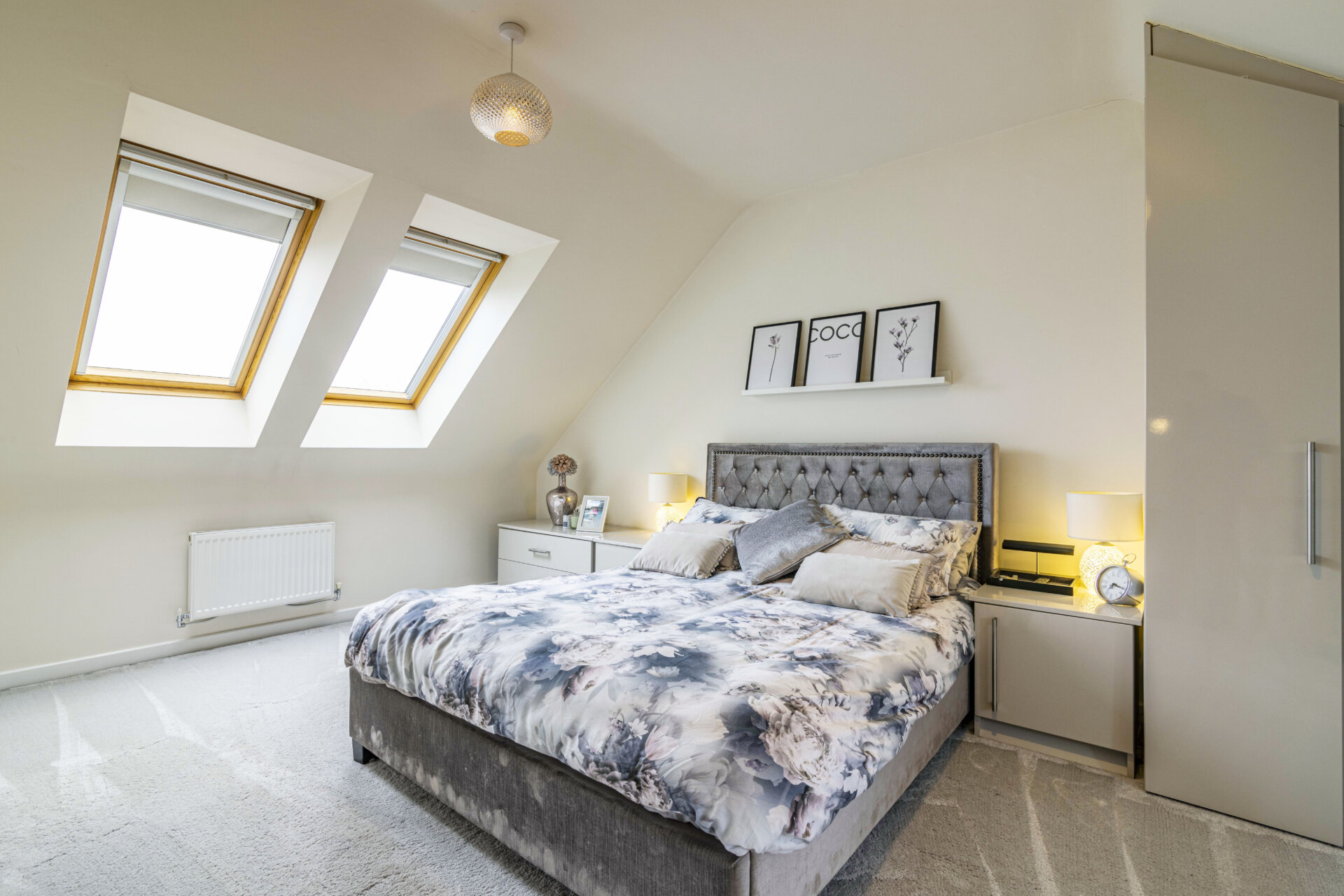 The entire second floor is dedicated to an impressive master suite, designed for ultimate comfort and privacy. This expansive room includes fitted wardrobes, Velux windows, and a luxurious en-suite bathroom, making it a true retreat within the home.