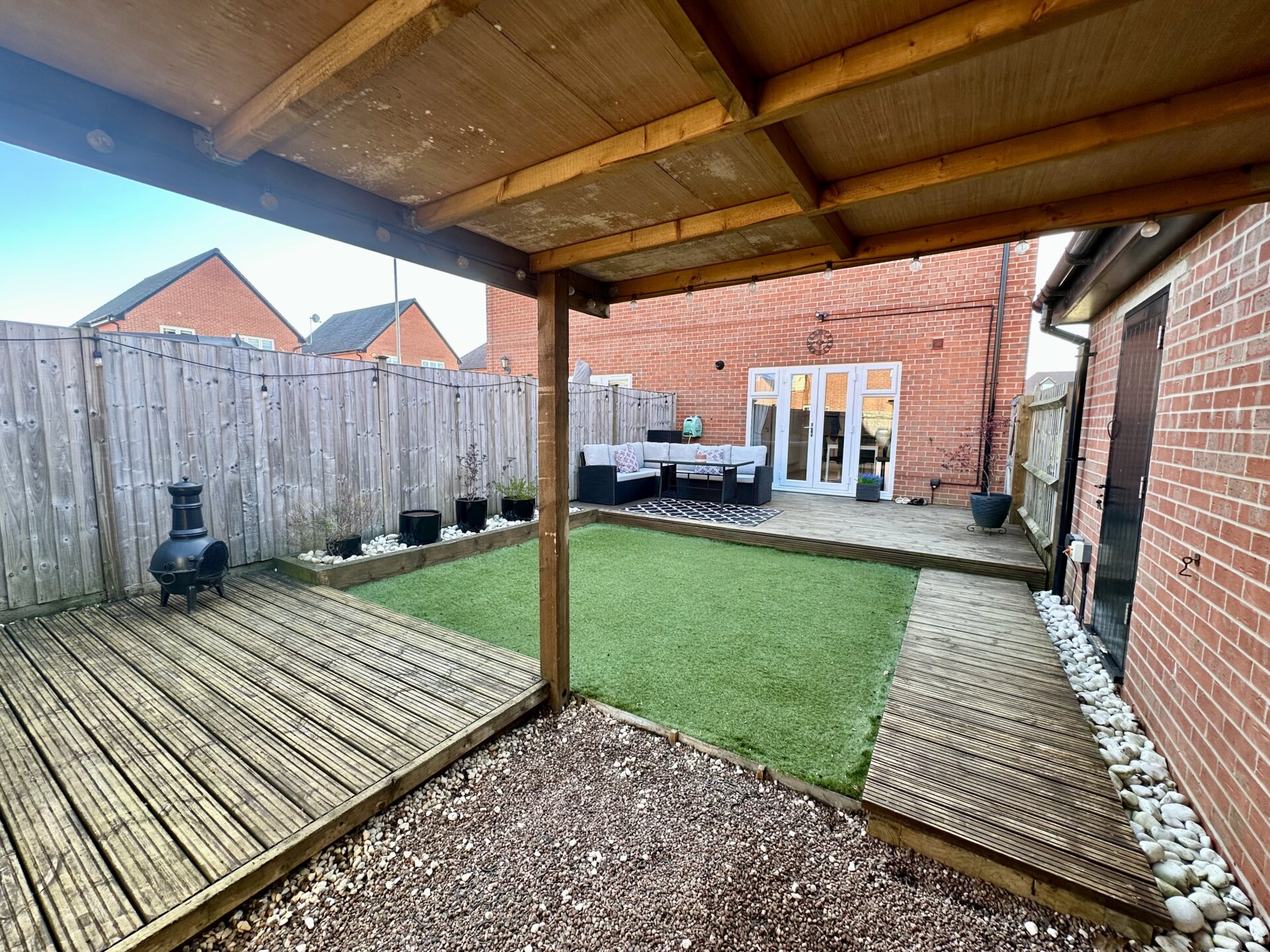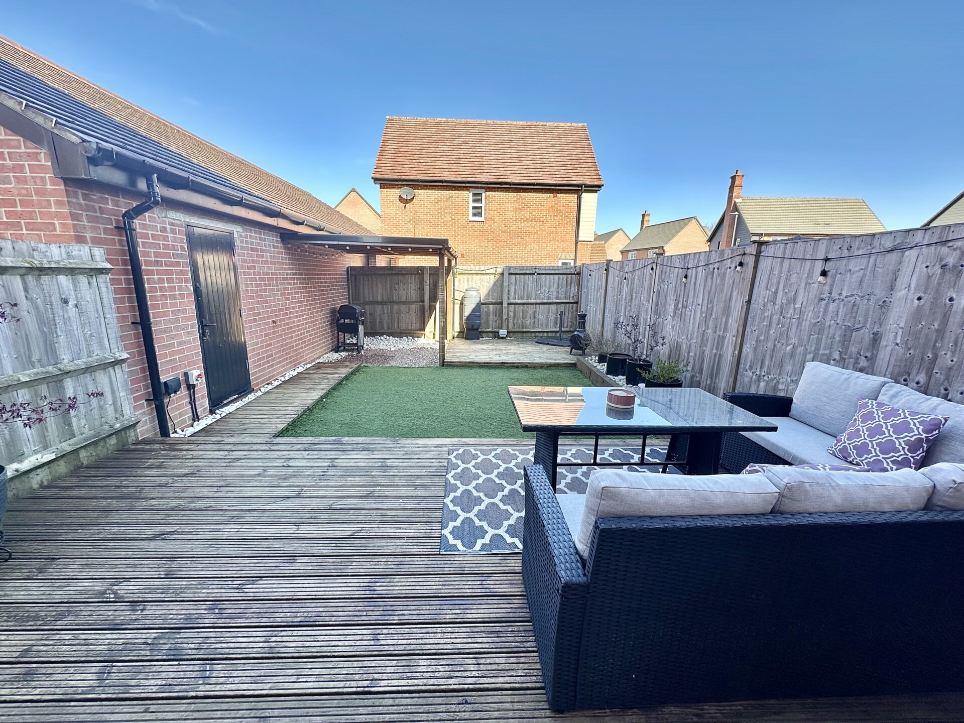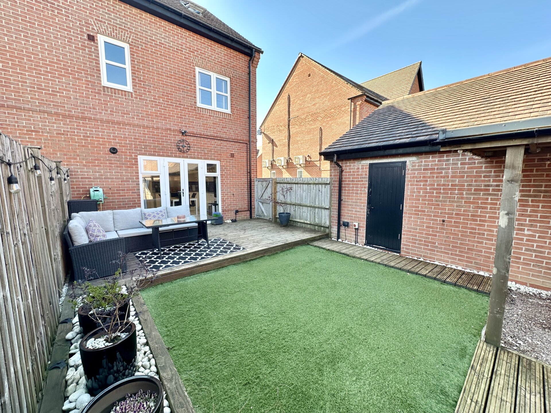 Externally, the property continues to impress with a beautifully landscaped rear garden, designed for low maintenance and maximum enjoyment. Featuring a large decking area and artificial turf, the space is perfect for outdoor entertaining or relaxing, while benefiting from a high degree of privacy as it is not overlooked. The home also offers direct internal access to a spacious single garage, equipped with lighting and electric sockets, enhancing both convenience and functionality. To the front, a driveway provides off-road parking for at least two vehicles.