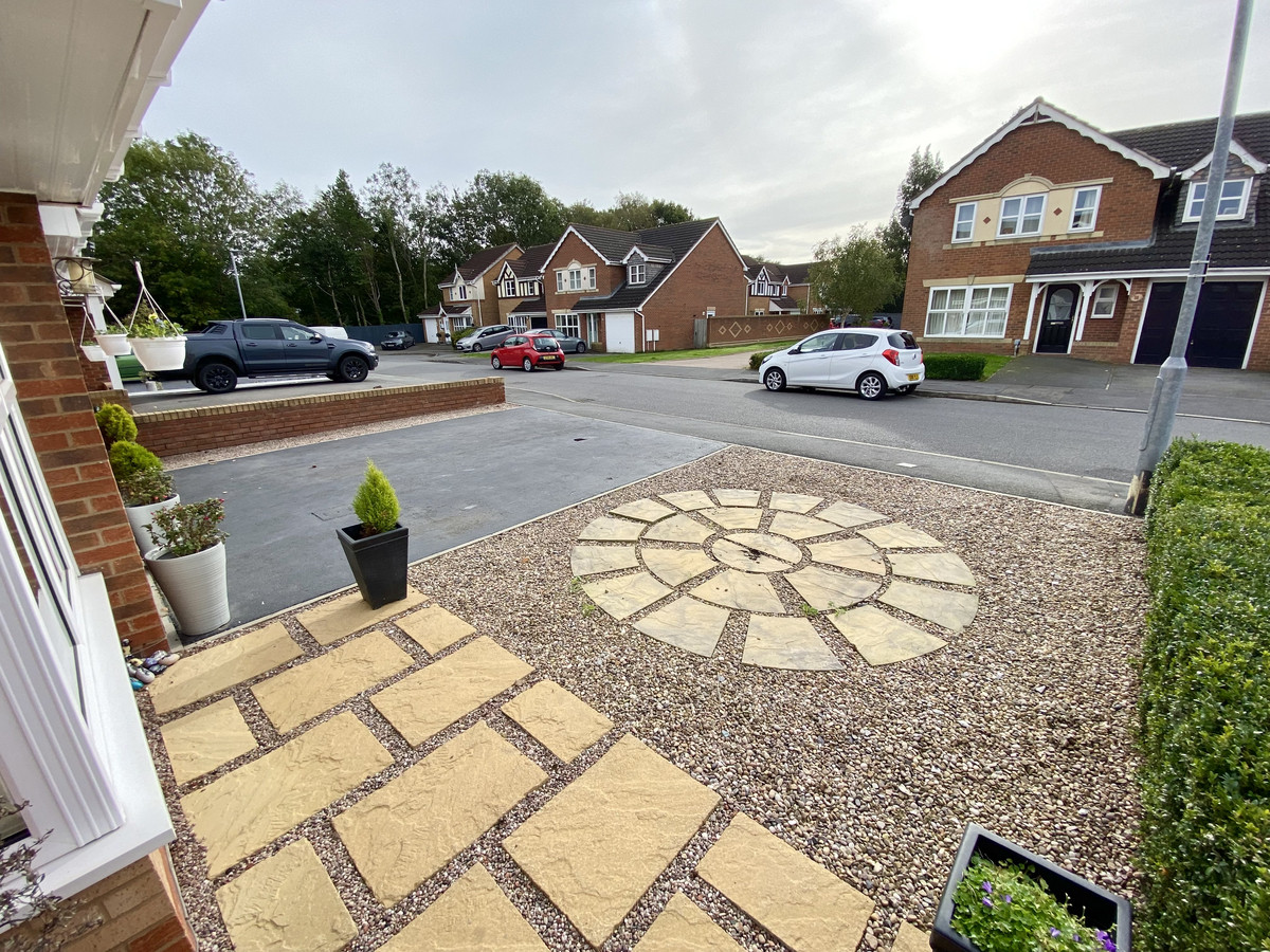 Exterior Front - Tarmac driveway for 2 cars, also a further space with stones and patterned paving slabs.