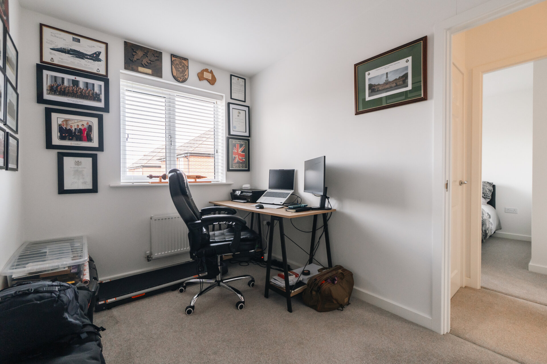 A comfortable fourth bedroom with ample space for furniture and storage, this room would also work well as an office or nursery