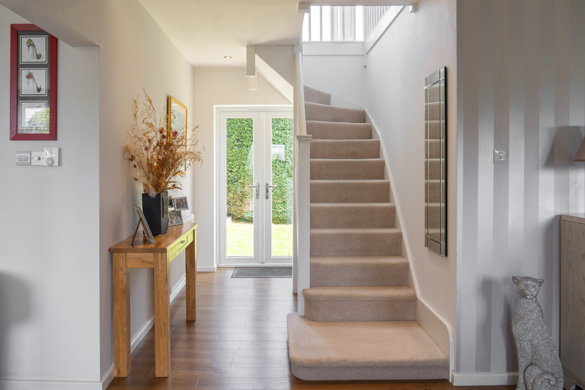 From the moment you step inside, the sense of space and light is immediate. A generous entrance hall flows openly into the dining area, setting the tone for the sociable, open-plan design that runs throughout the home.