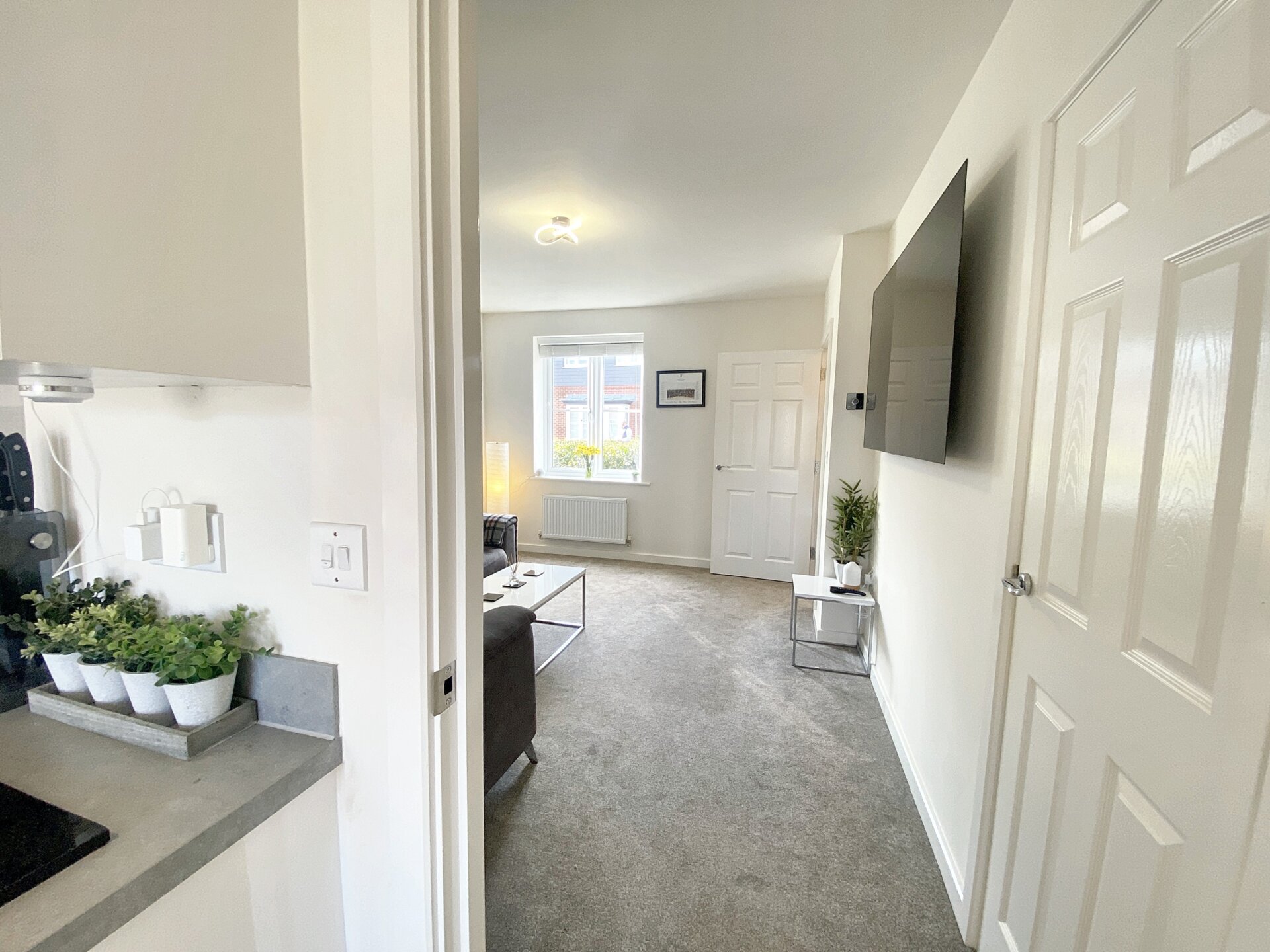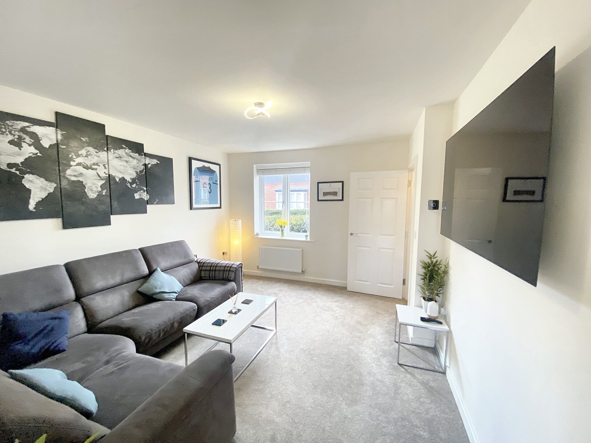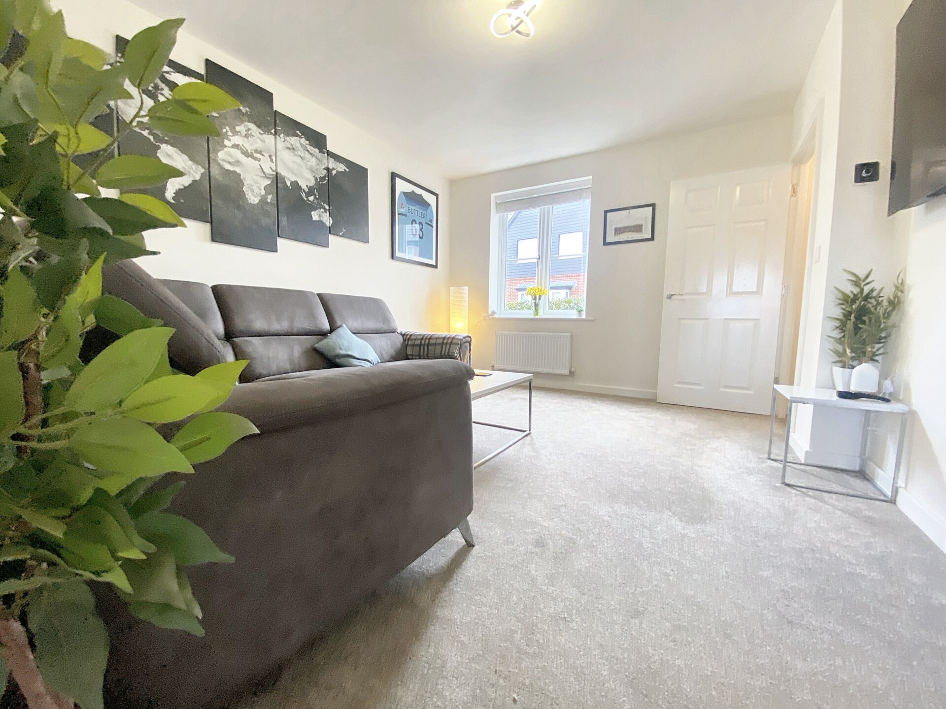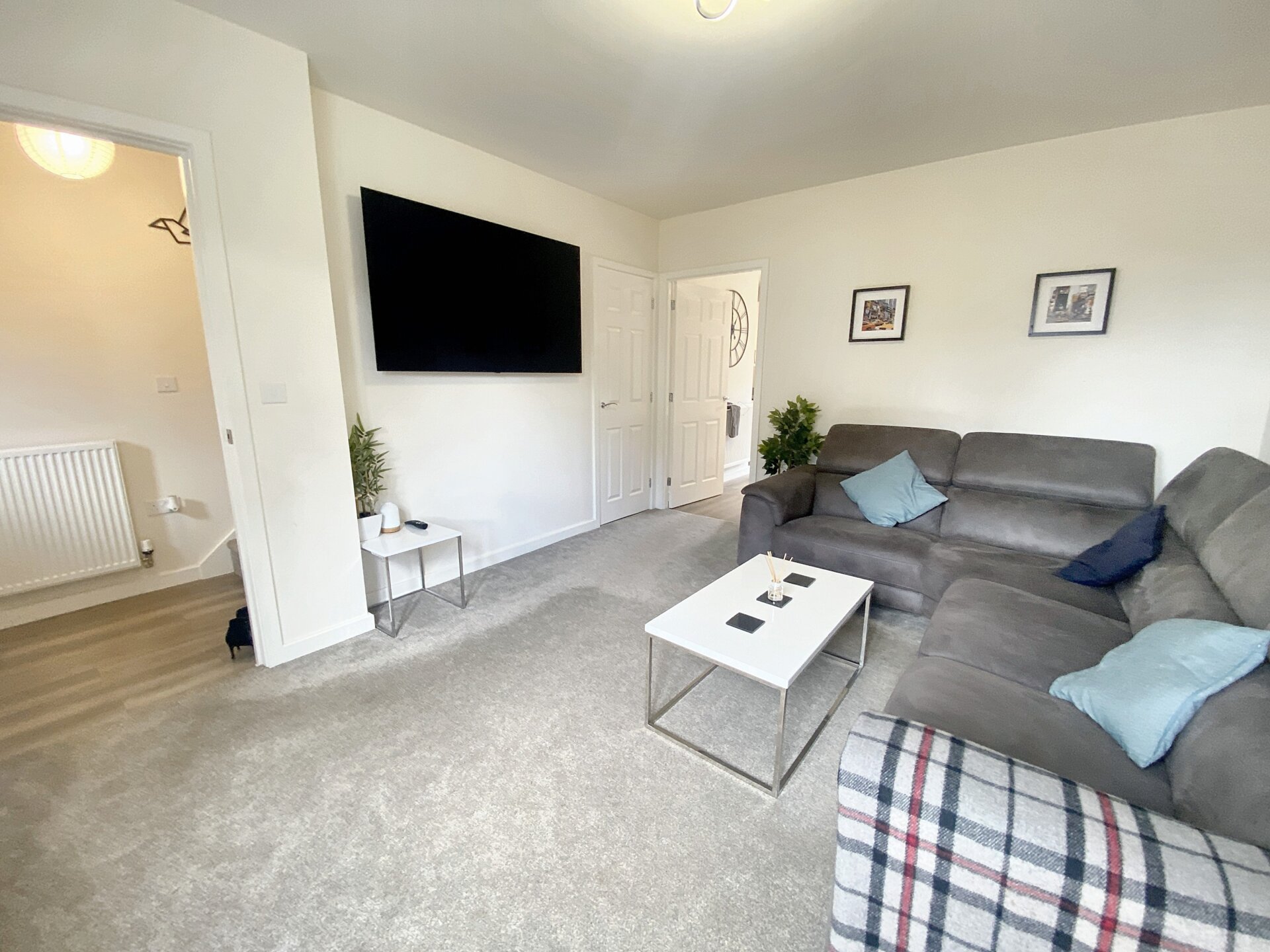 A bright and spacious room, boasting luxury carpet and window to the front aspect. Having television and media connection points, two radiators, deep under-stairs storage cupboard (housing the fuse board).