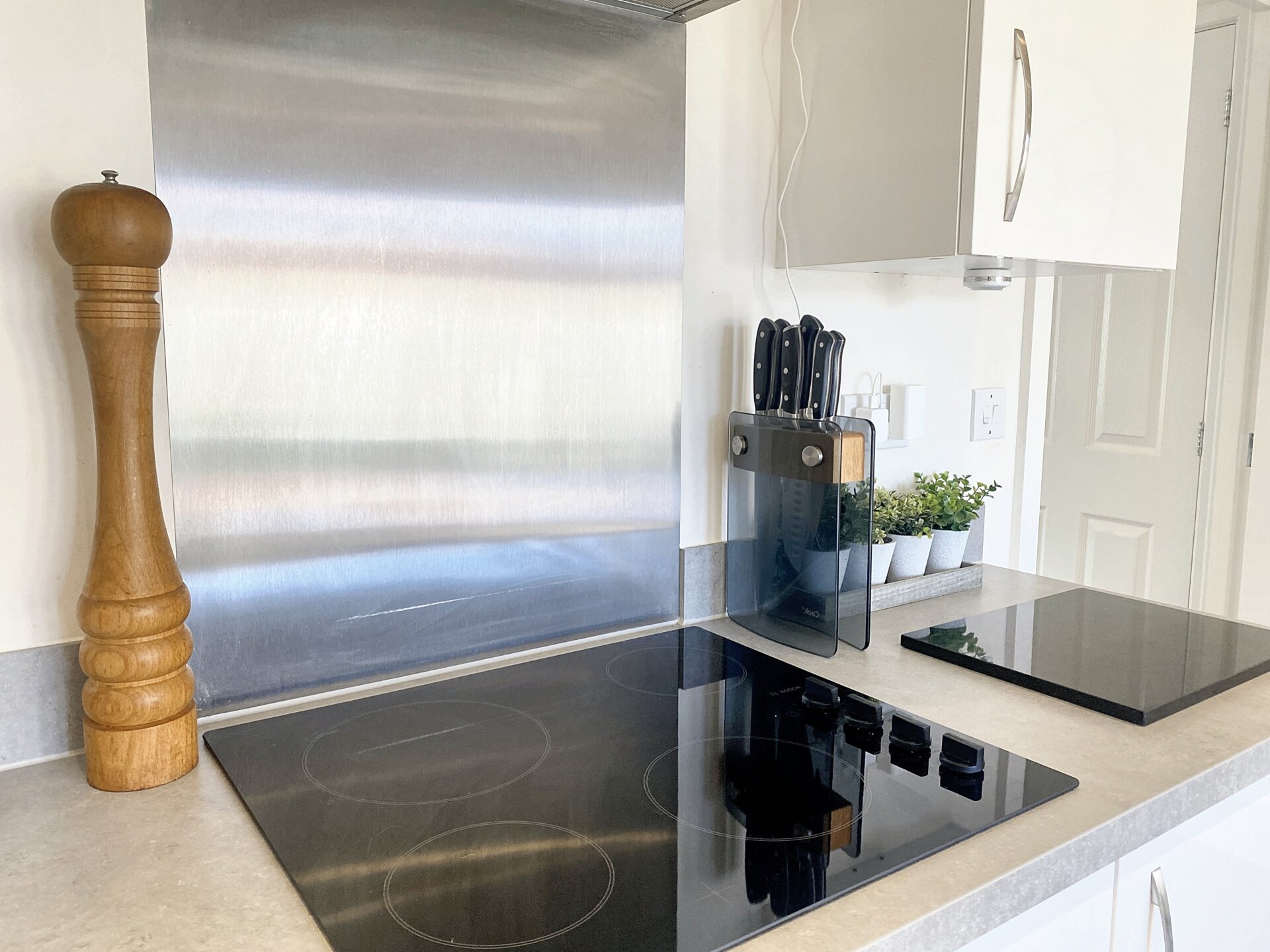Having concealed Ideal Logic wall mounted combination gas boiler, laminated rolled edge working surface, fitted base cupboard, space and plumbing for automatic washing machine, Amtico flooring and radiator.