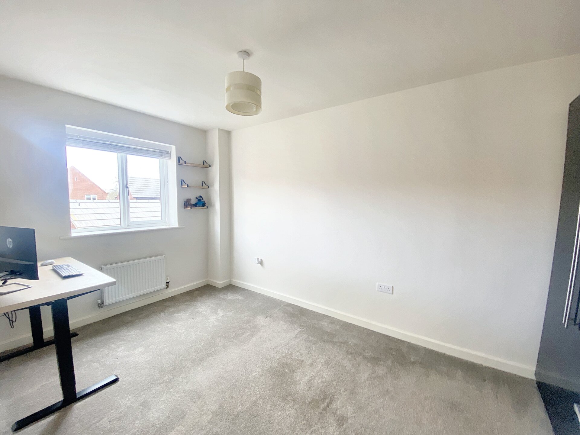 Currently used as a home office, this double bedroom also features inset wall for wardrobe space, luxury carpet, radiator and window to the front elevation.