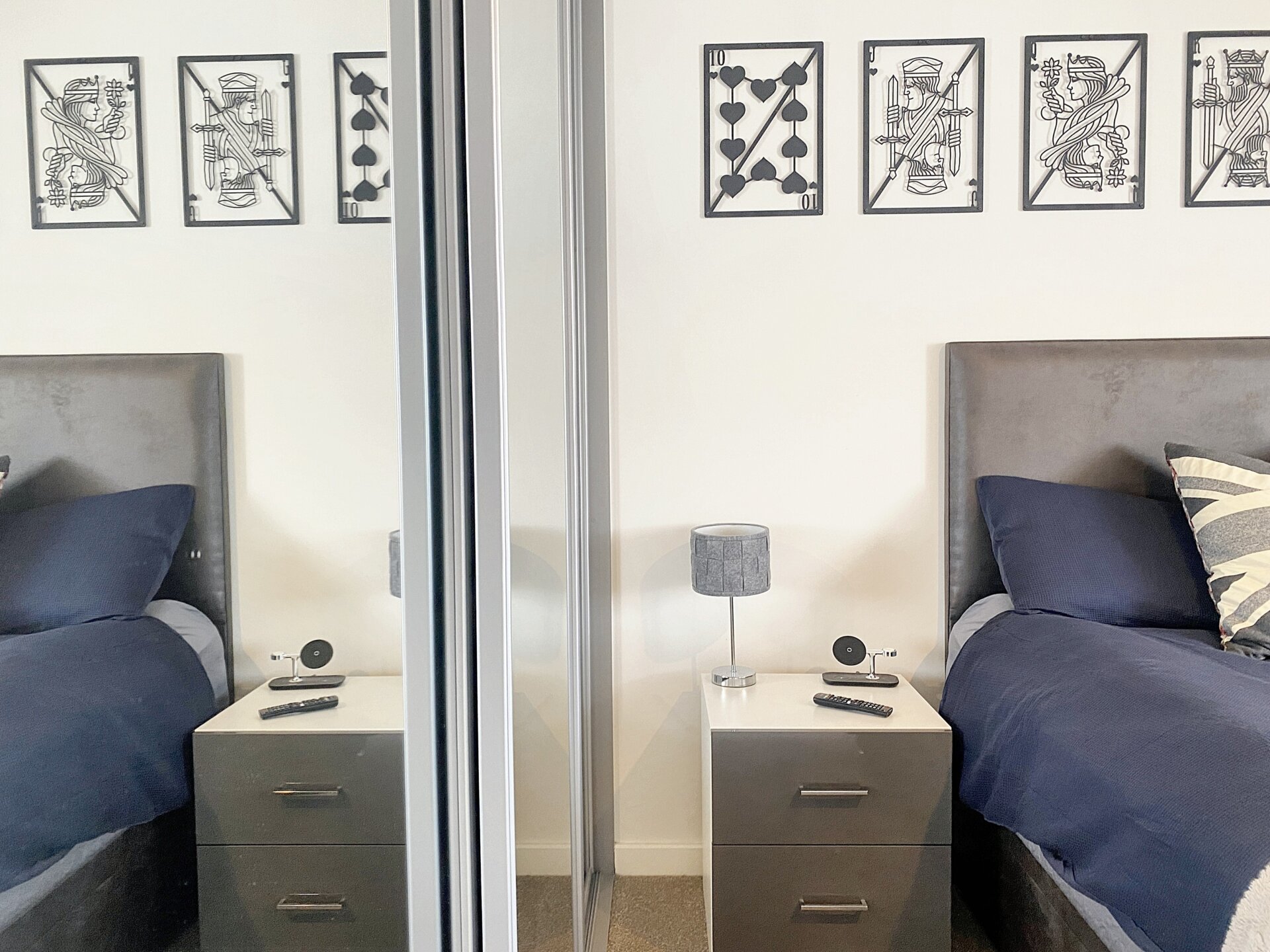 This principle kingsize room is an elegant and expansive space, offering triple mirrored fitted wardrobes, storage cupboard and dressing room area. With a Dorma window to the front elevation offering extra space and light, and Velux window in the dressing room with fitted blind and 2 radiators. Leads into a private en-suite shower room.