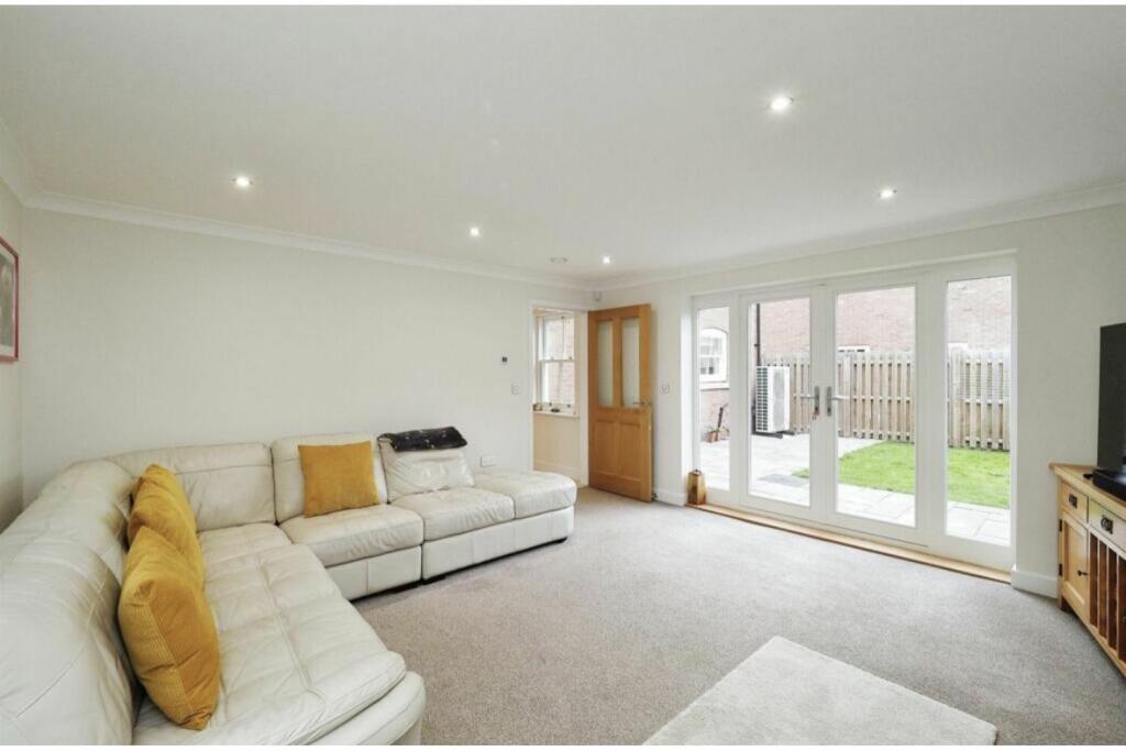 The heart of the home is the light filled lounge, complete with a charming chimney and log burner, creating a cozy and contemporary atmosphere. French doors open from both the lounge and the kitchen diner, seamlessly connecting the indoor spaces to the outdoors, perfect for entertaining.