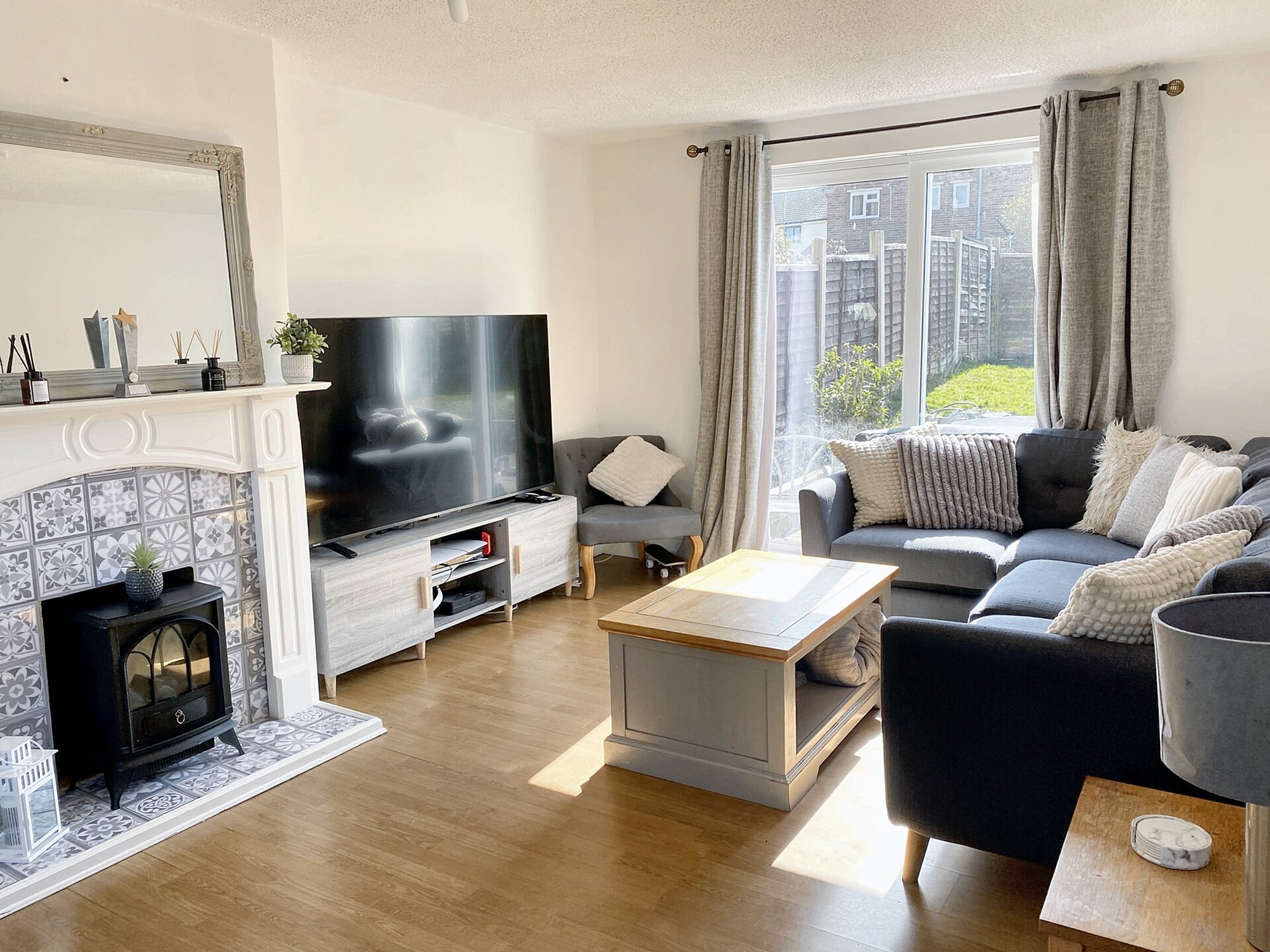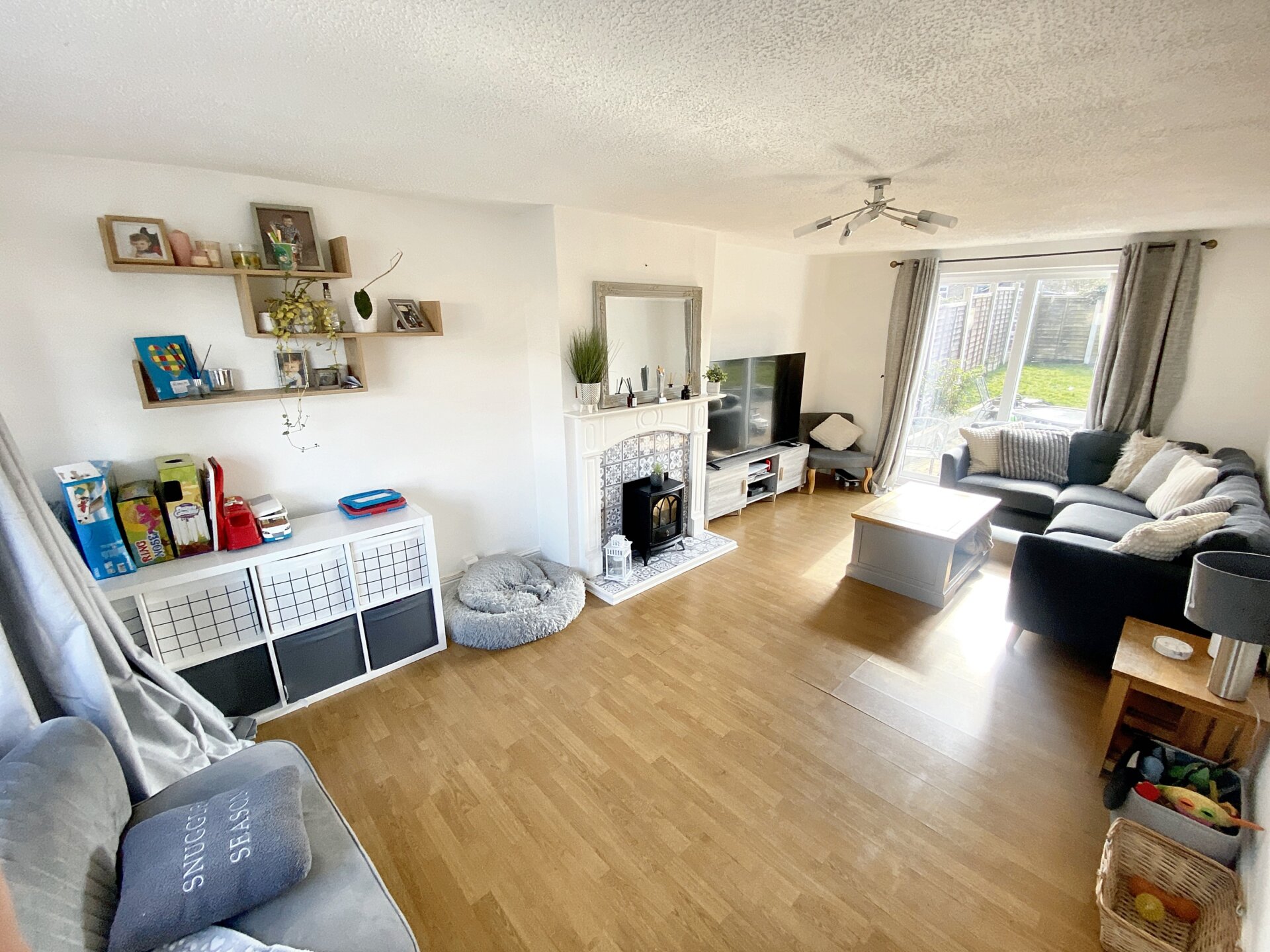 A well presented 19ft lounge offers lots of natural light with a window to the front and patio doors to the back leading to the rear garden. Running the entire depth of the home from front to back, with a decorative feature fireplace and mantle offering a central focal point of the room. With wood effect laminate flooring and central heating radiators.