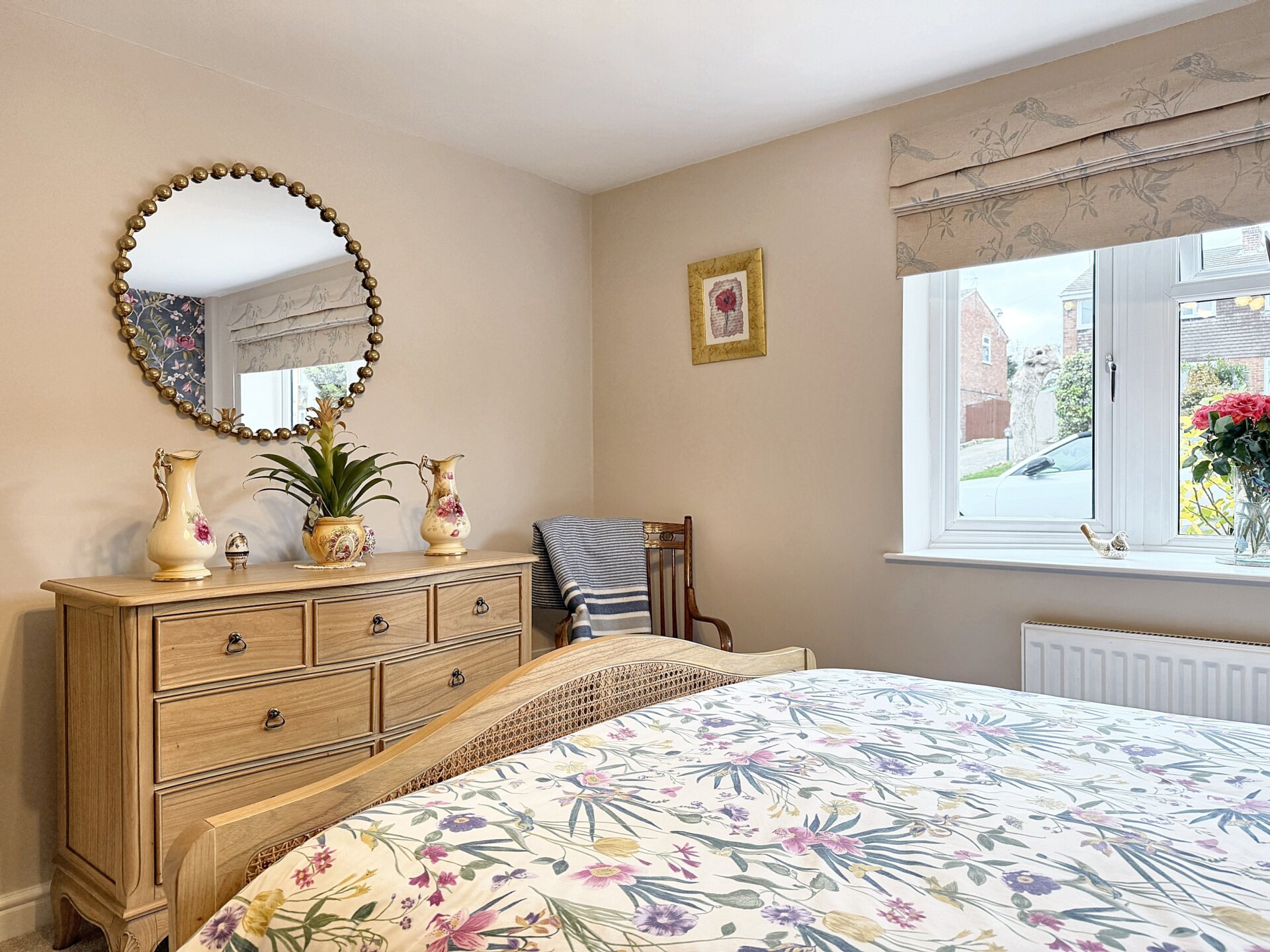 A well-presented, substantial double room located to the front of the property, featuring a glazed bay window with uPVC frames that fills the space with natural light. The room is complemented by a central heating radiator, offering comfort throughout the seasons.