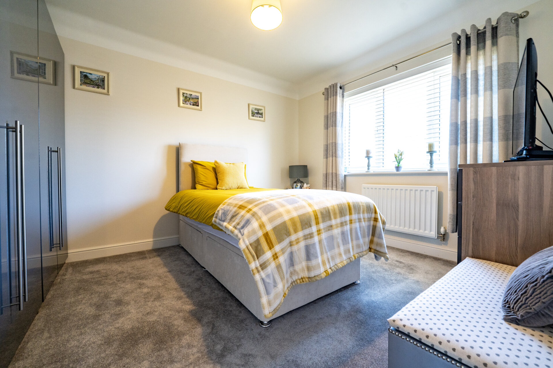 UPVC double glazed bay window to the front, radiator, TV point