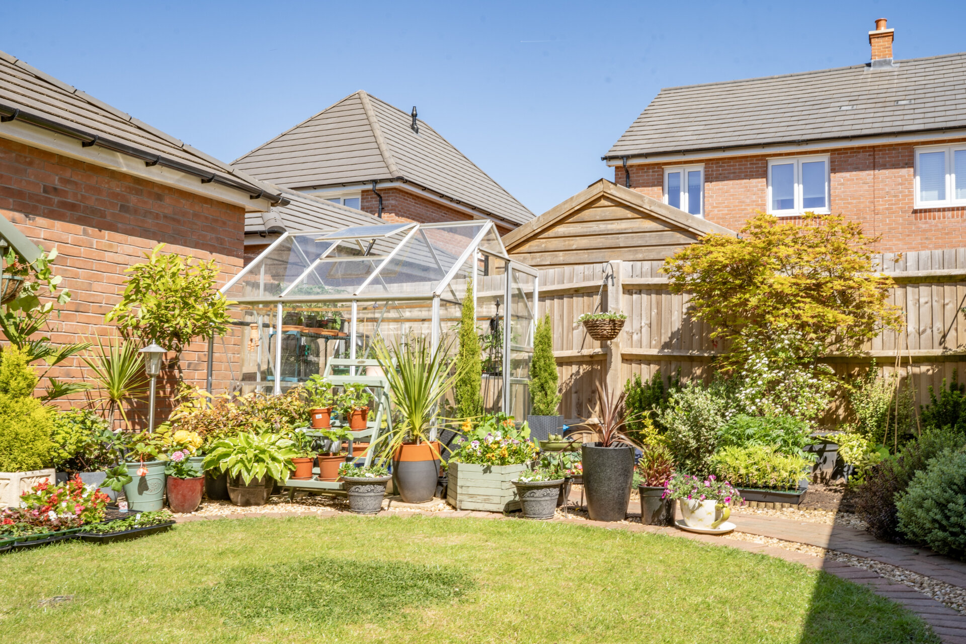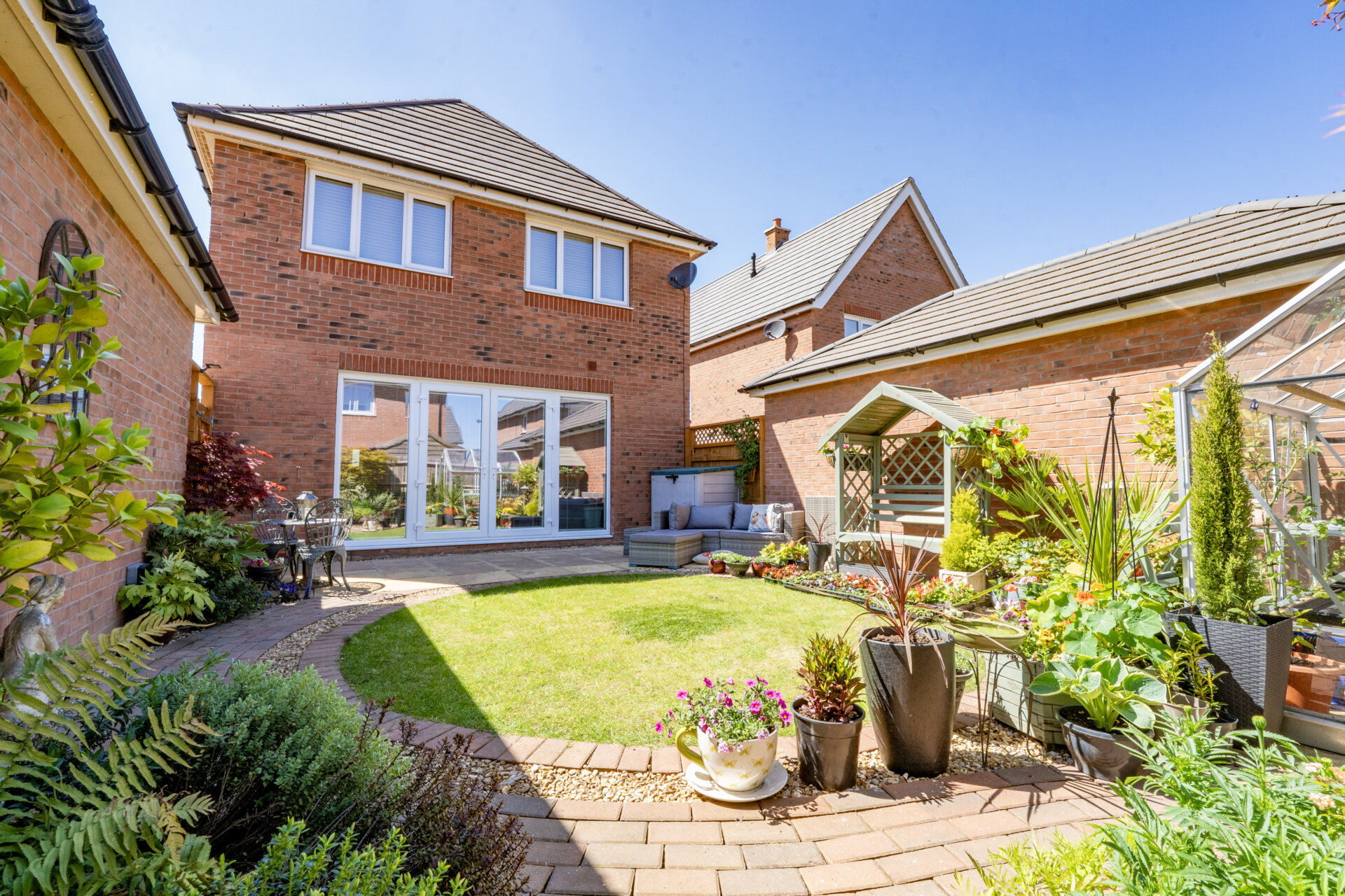 Step outside and discover a meticulously landscaped outdoor area. There is a tar-macadam driveway with parking for three cars and a detached garage. The rear garden offers a private escape, complete with a patio area that transitions to a circular lawn, accented by block paving and gravel borders. Blooming shrubs and flowers add a touch of nature, creating a picturesque setting that is fully enclosed by fencing and walls. The garage, measuring 21'0 x 11'1, is equipped with an up-and-over door, providing easy access for storage or parking. Embrace the serenity and beauty of this outdoor retreat, where tranquillity and style merge seamlessly to offer a lifestyle of comfort and refinement.