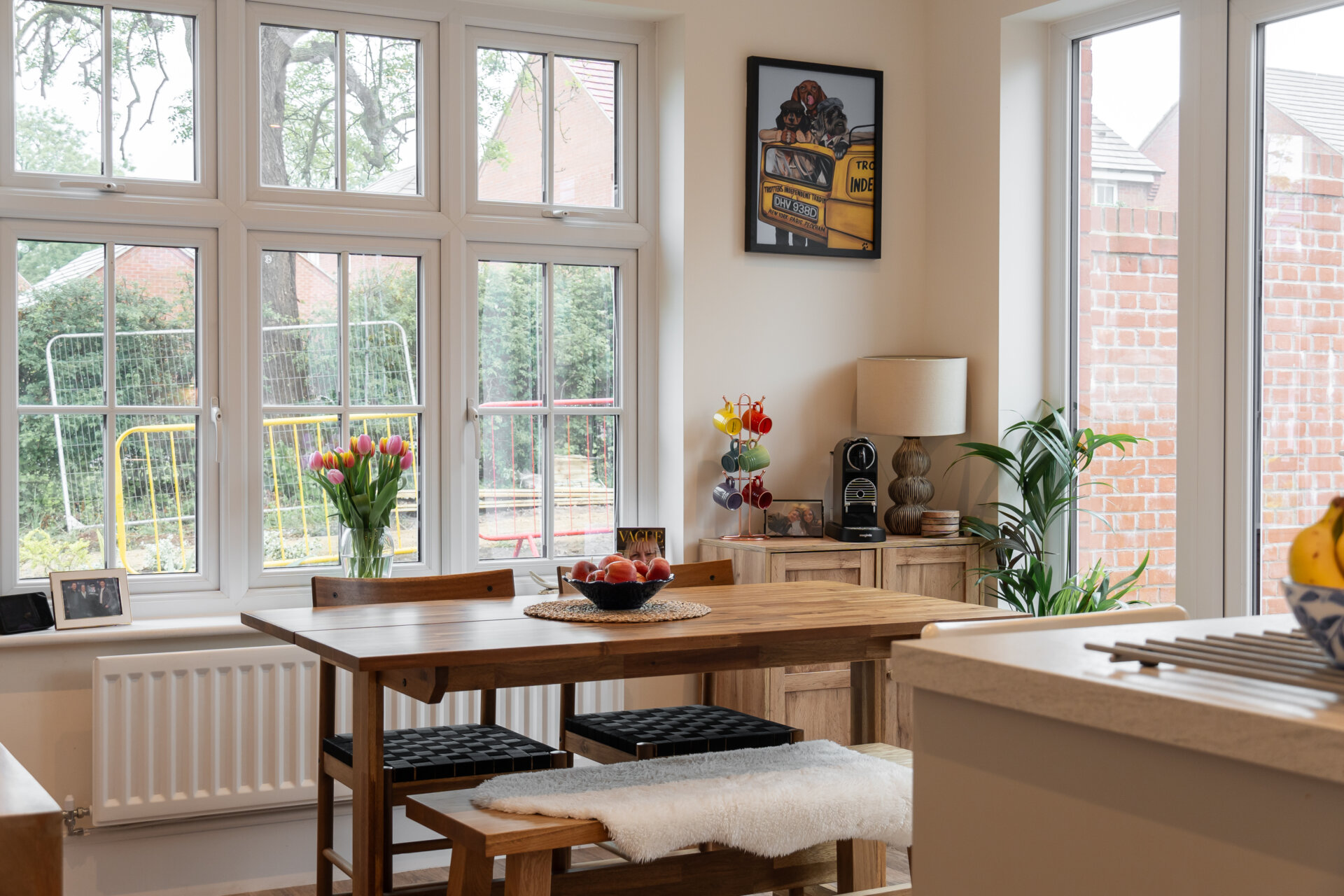 Triple glazed window, door to storage cupboard housing gas central boiler, radiator, air ventilation system, radiator