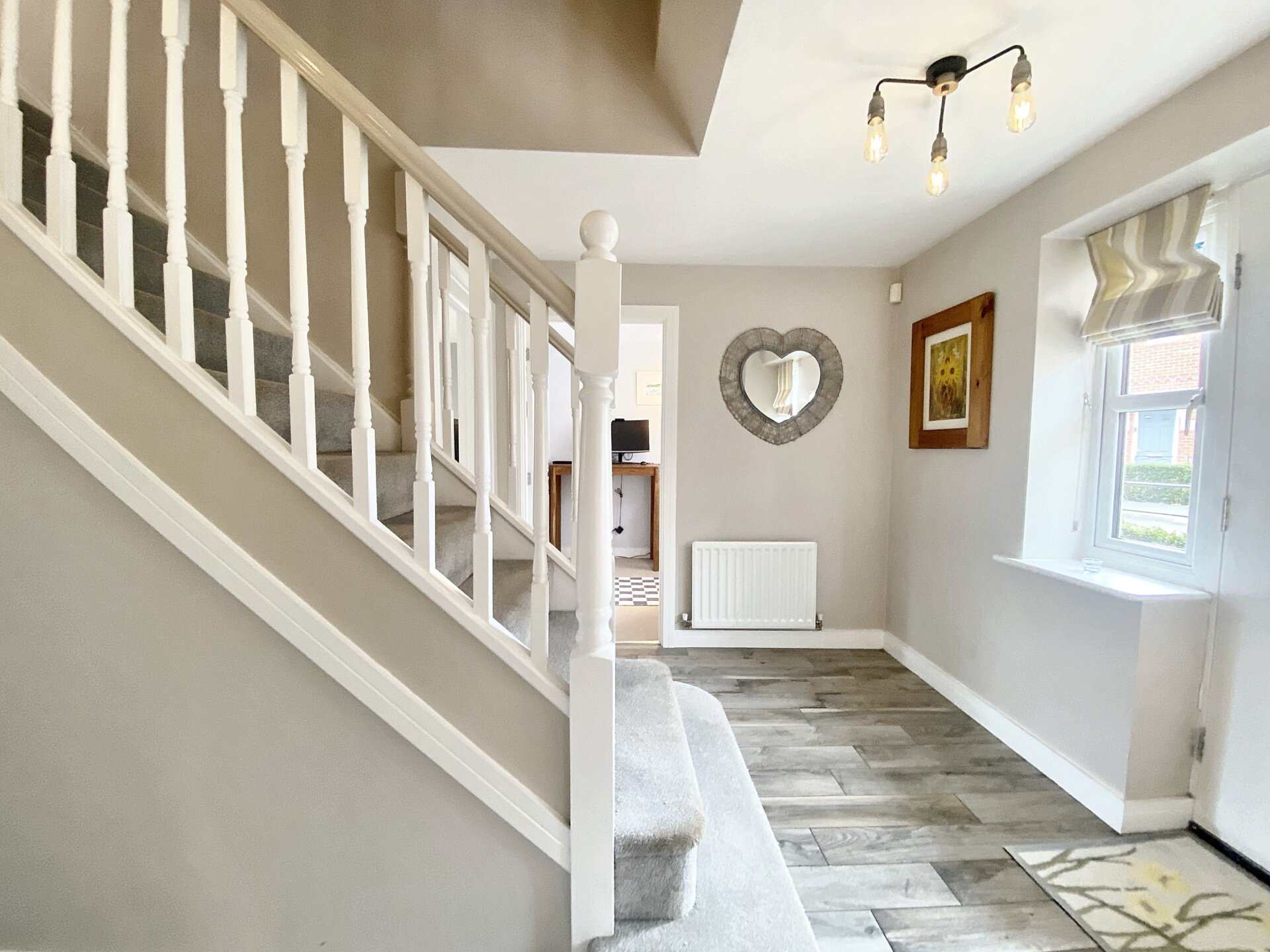 Boasting a spacious 'U' shaped entrance hall, with stairs rising from the centre to the first floor. Wood effect porcelain flooring that continues through to the breakfast kitchen and utility, two ceiling lights, radiator, under-stairs storage cupboard. Doors leading to the dining room/study, office, lounge, and breakfast kitchen.
