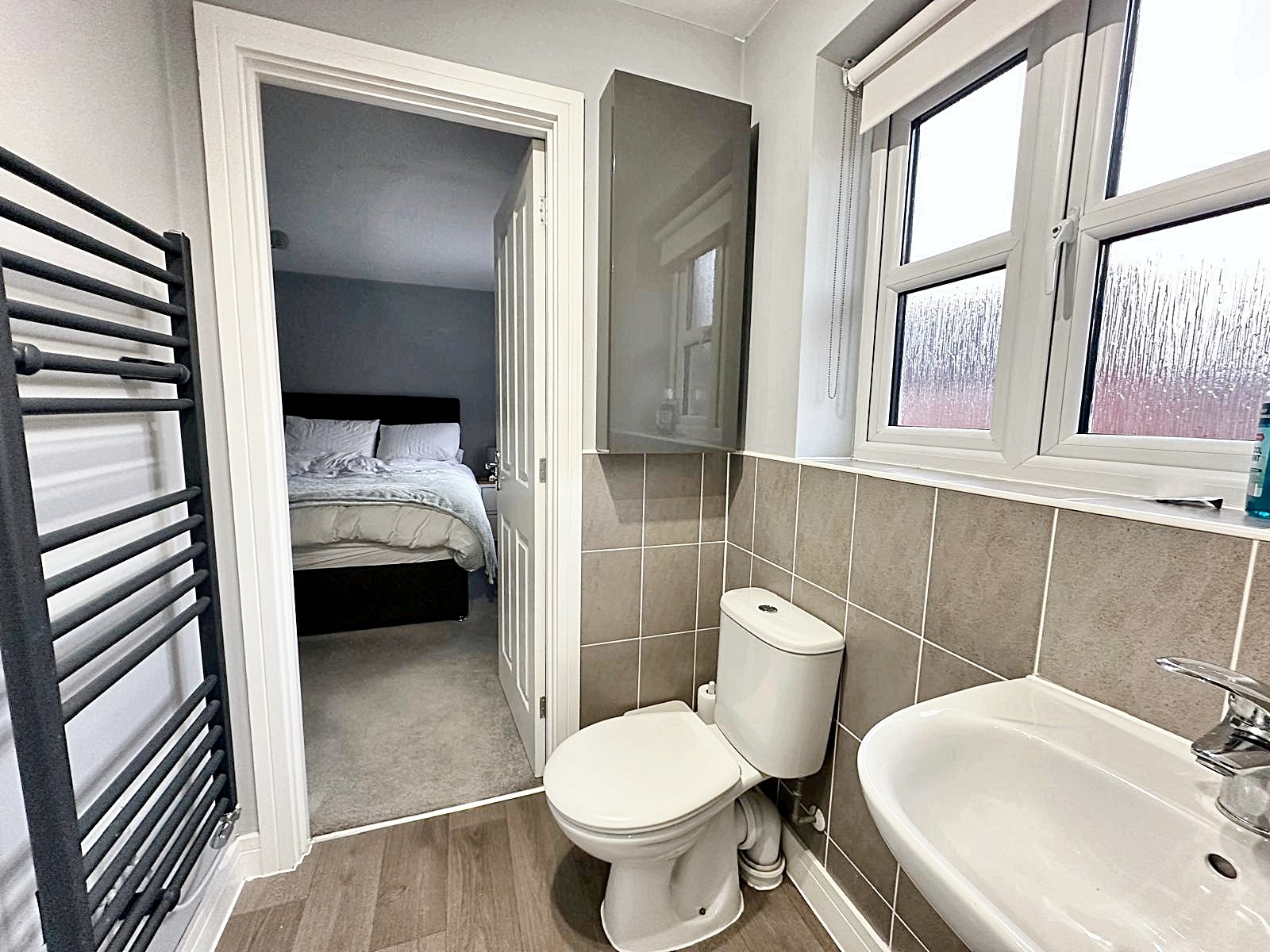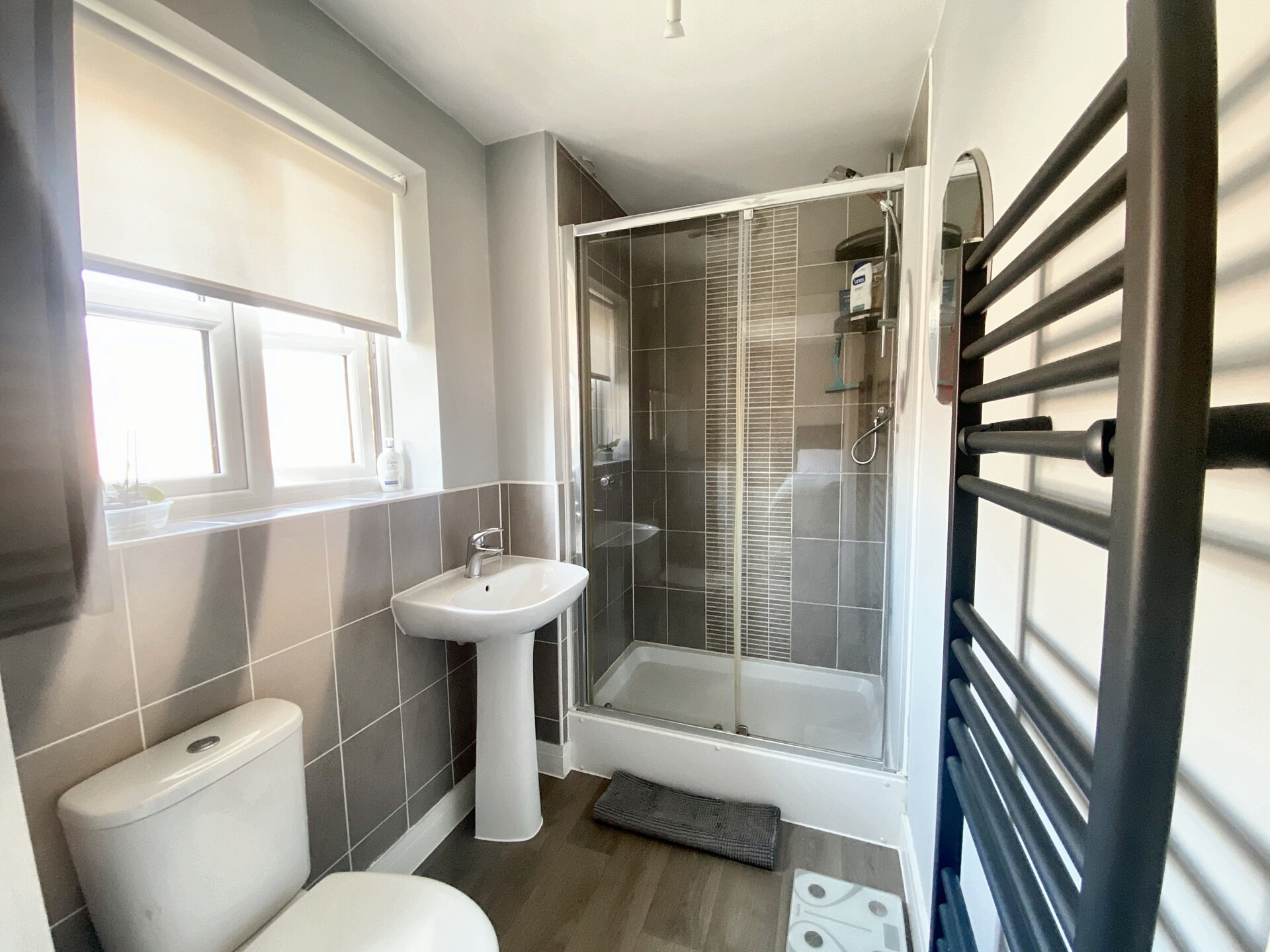 En Suite Shower Room - Fitted with a three piece suite comprising a low flush w/c, wash hand basin with a mixer tap, and a tiled shower enclosure with rainfall shower.Window to the front elevation, heated towel rail, storage cupboard.