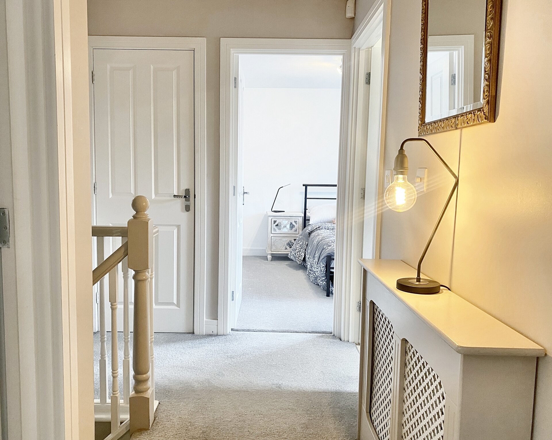 First Floor Landing - Feature radiator, airing cupboard, loft hatch with pull down ladder, doors into four bedrooms and the family bathroom.