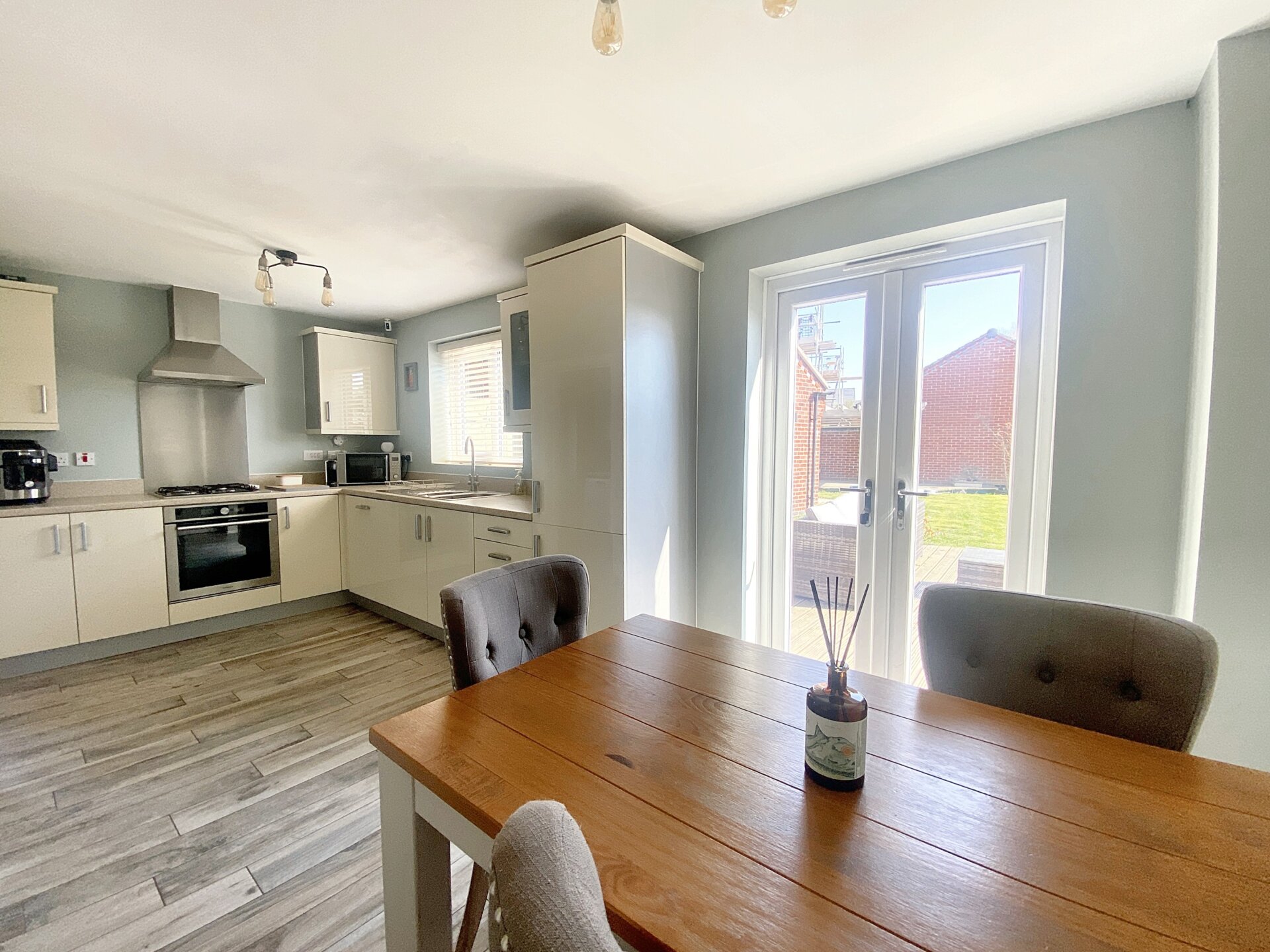 Designed for modern living the ground floor features a welcoming entrance hall, office, snug (dining room),lounge,wc,utility and an impressive kitchen diner with French doors opening onto the garden. The spacious lounge boasts bi-folding doors seamlessly connecting indoor and outdoor spaces. Upstairs, four double bedrooms including a master with en-suite, complimented by a stylish family bathroom.