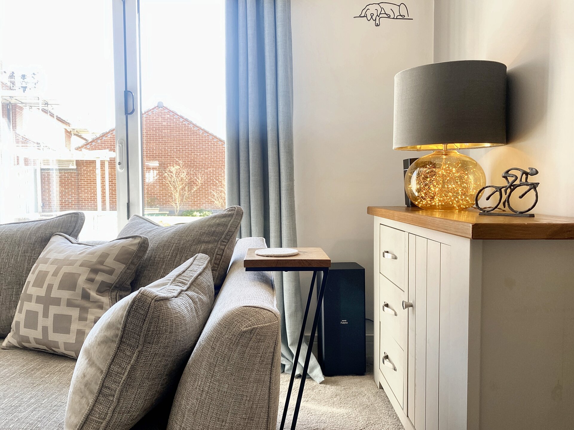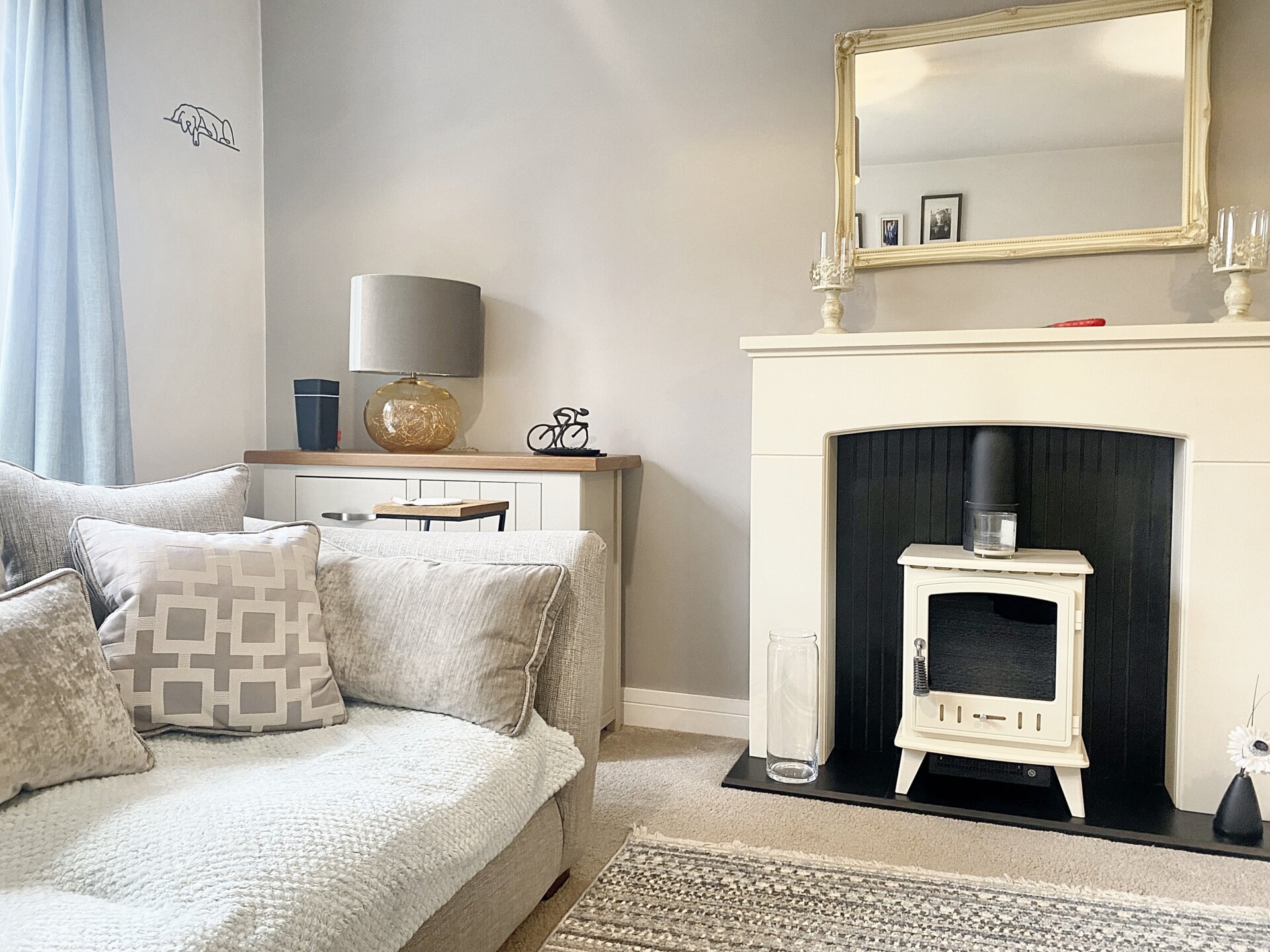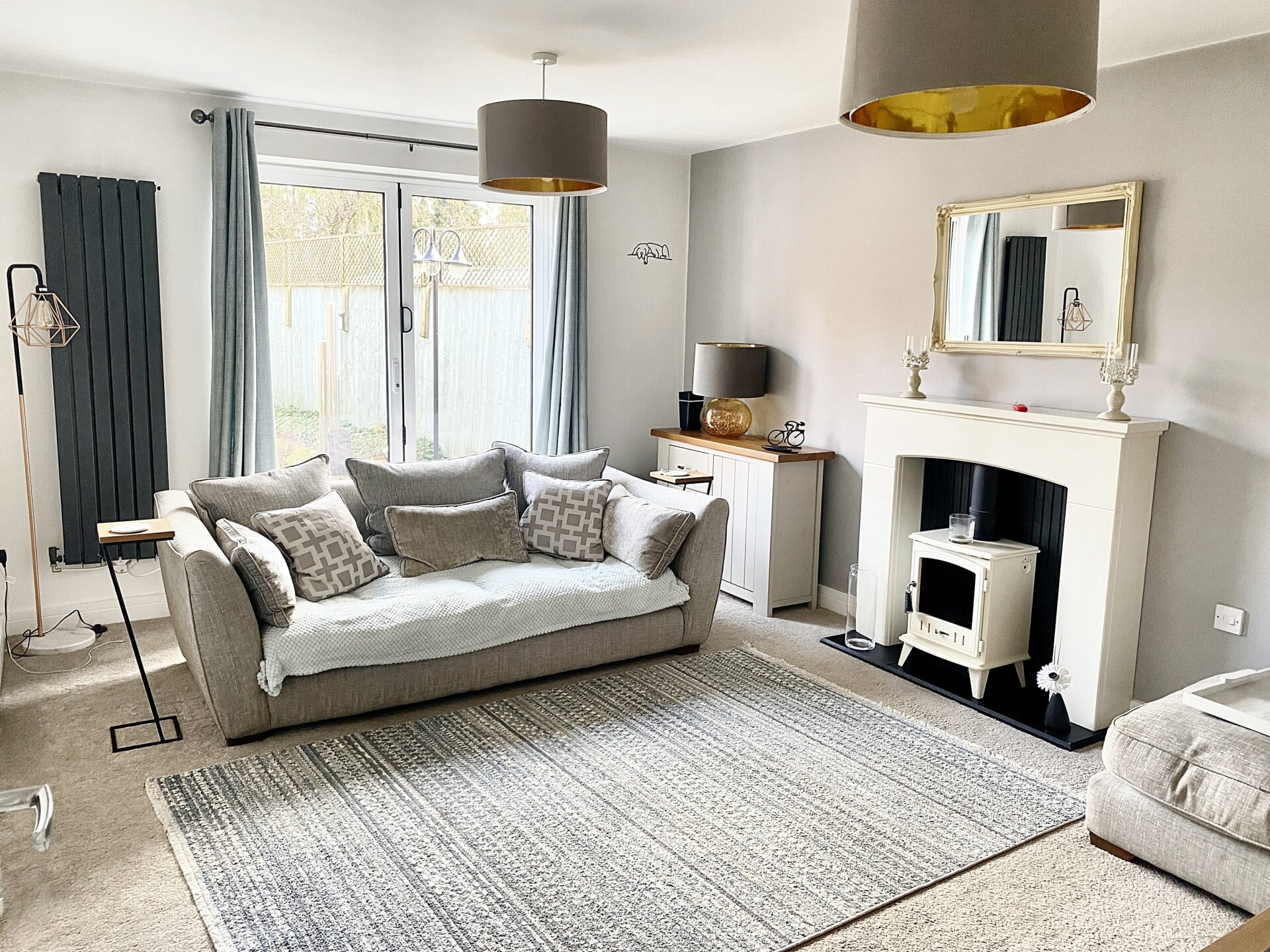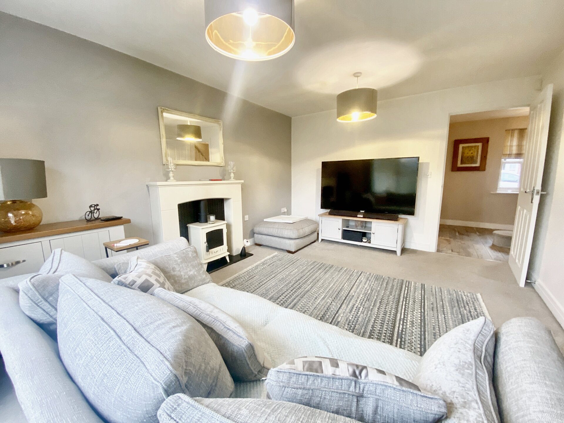 An elegant and well presented lounge, boasting aluminium bi-folding doors leading directly to the rear garden and decking area. The feature log burning stove is the centre piece of the room offering versatility of room layout. With vertical anthracite radiator, two feature lights and cream carpet.