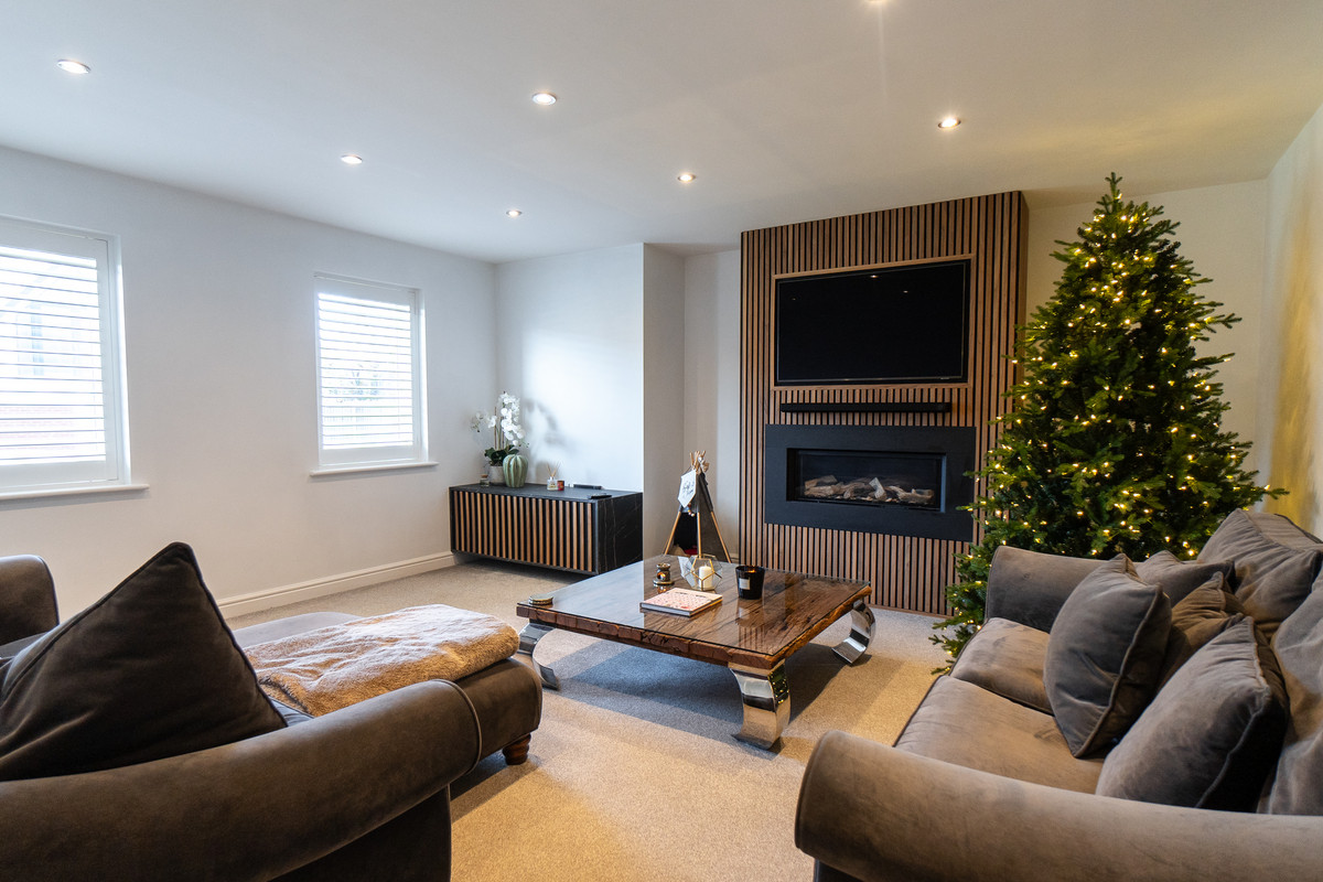 With a spacious feel and containing feature inset fire and designer surround this room is perfect for a large family.