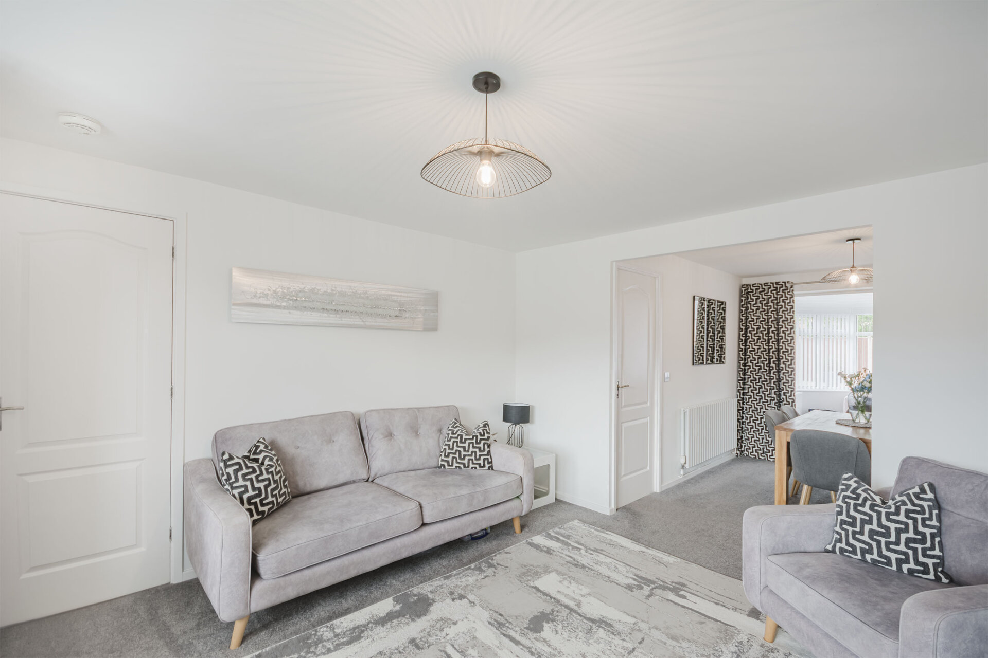 Carpet flooring, double glazed bay window to front, radiator, carpet flooring, open arch to Dining room.