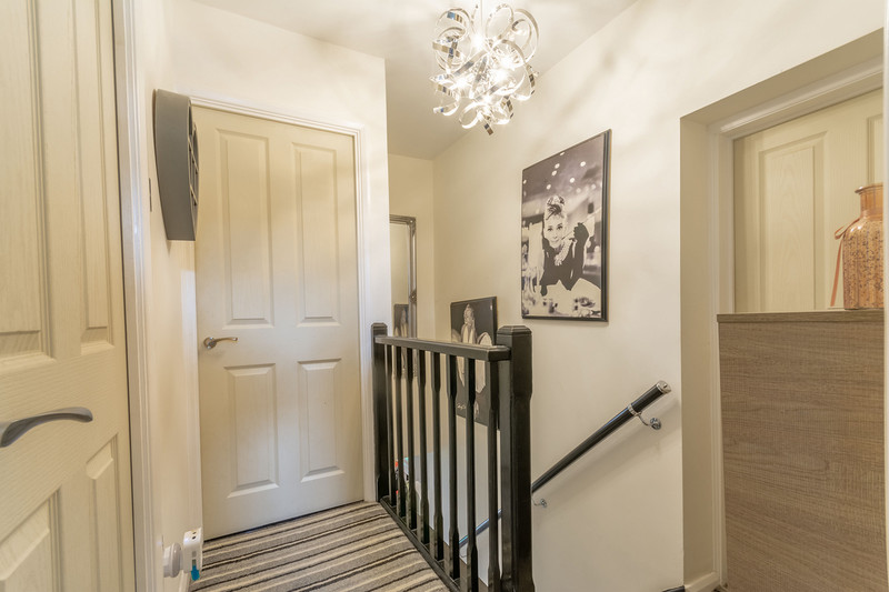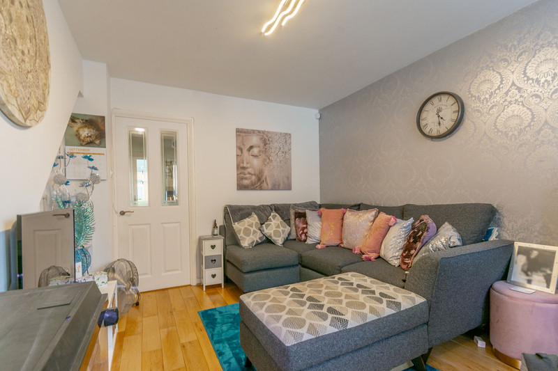 Double glazed composite door to enter, area for cloaks, wood effect laminate flooring, stairs ascending and door to
