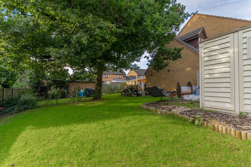 double plot rear garden with a generous area laid to lawn. Space is plentiful for extending