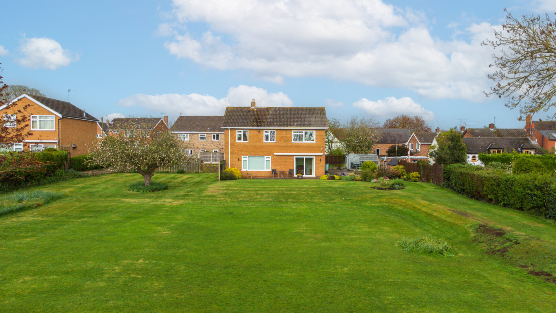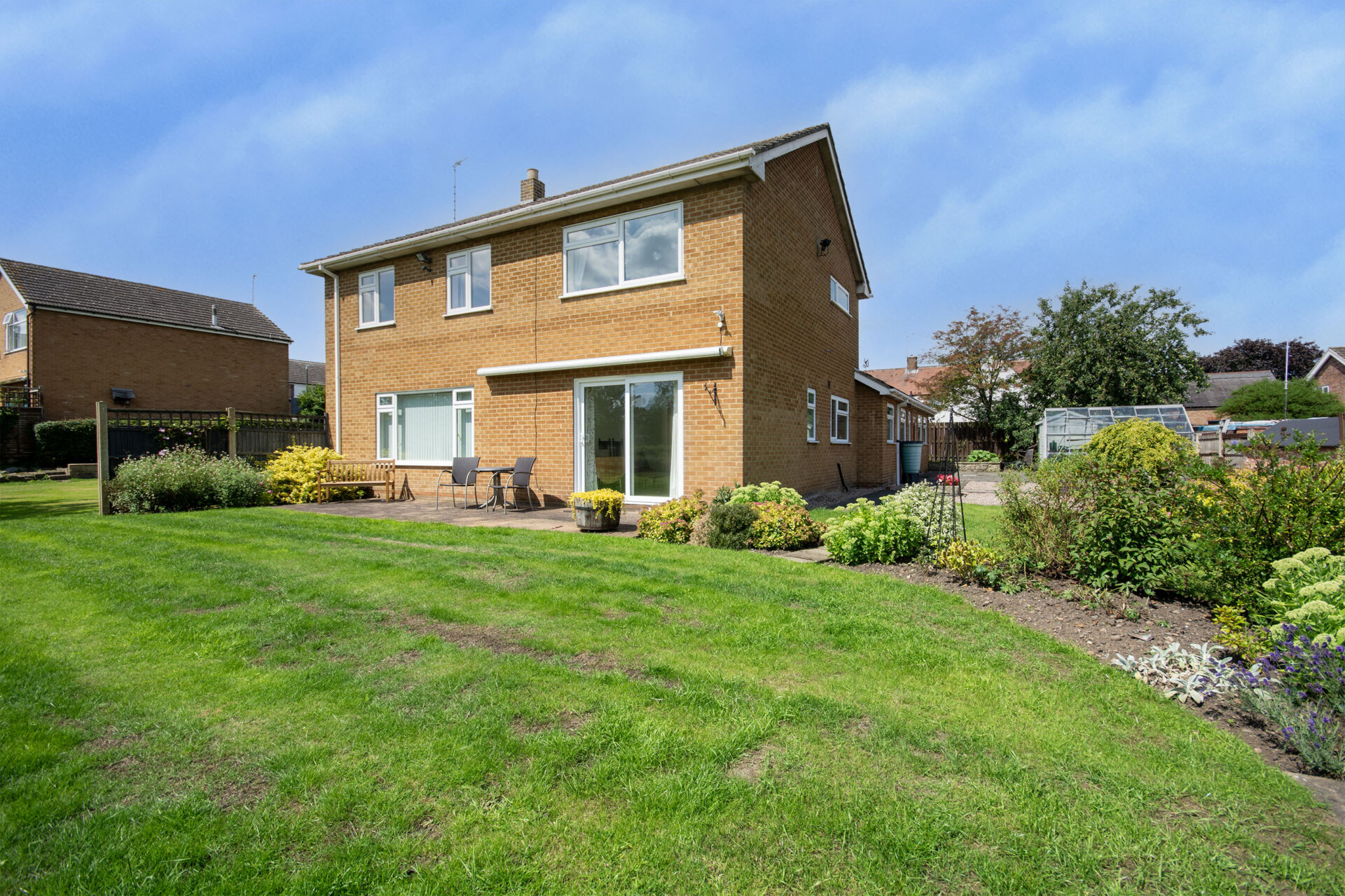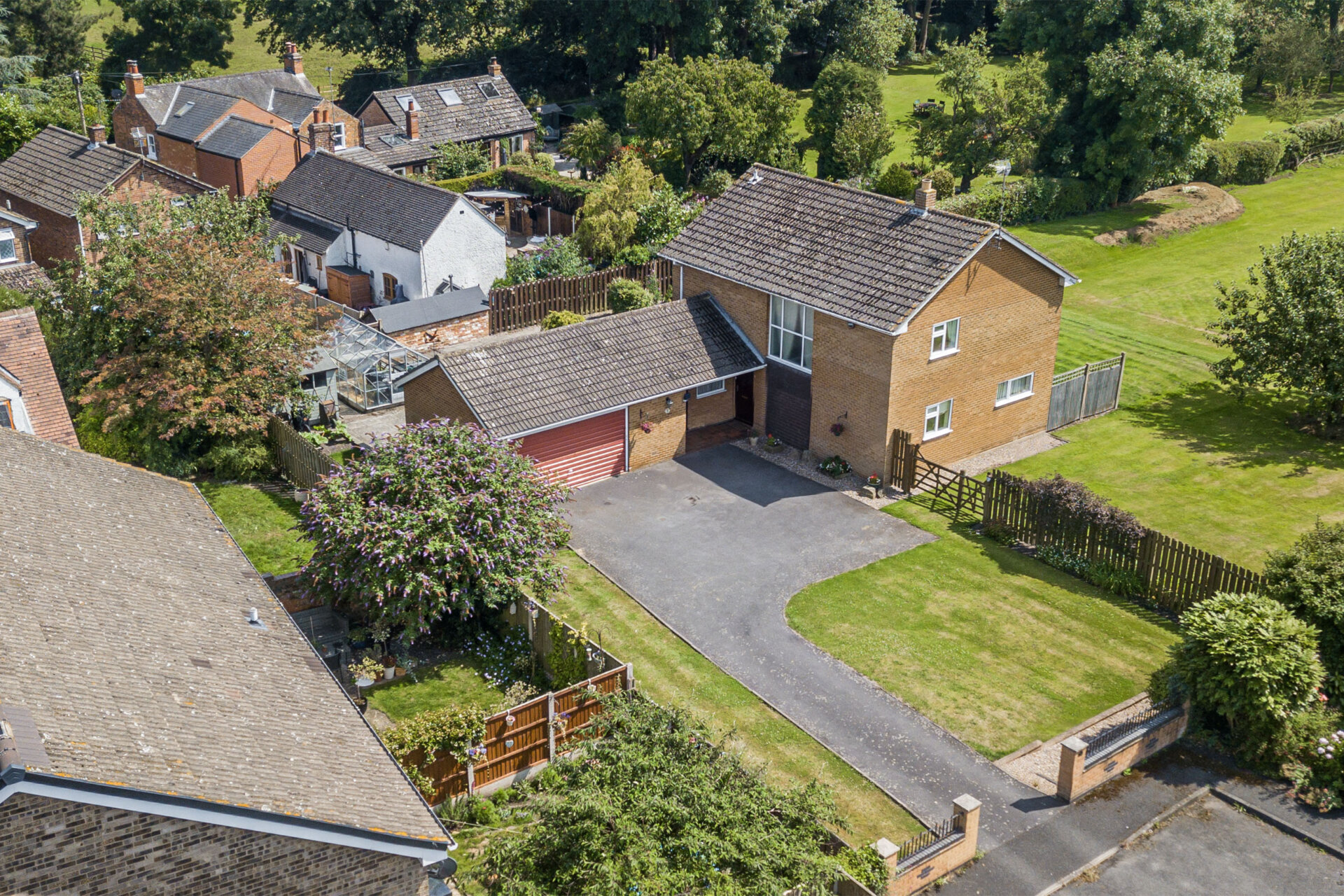 Situated at the head of a cul-de-sac, the property occupies approximately a quarter of an acre, offering breathtaking and uninterrupted views of the fields, with the added bonus of a south-facing aspect.