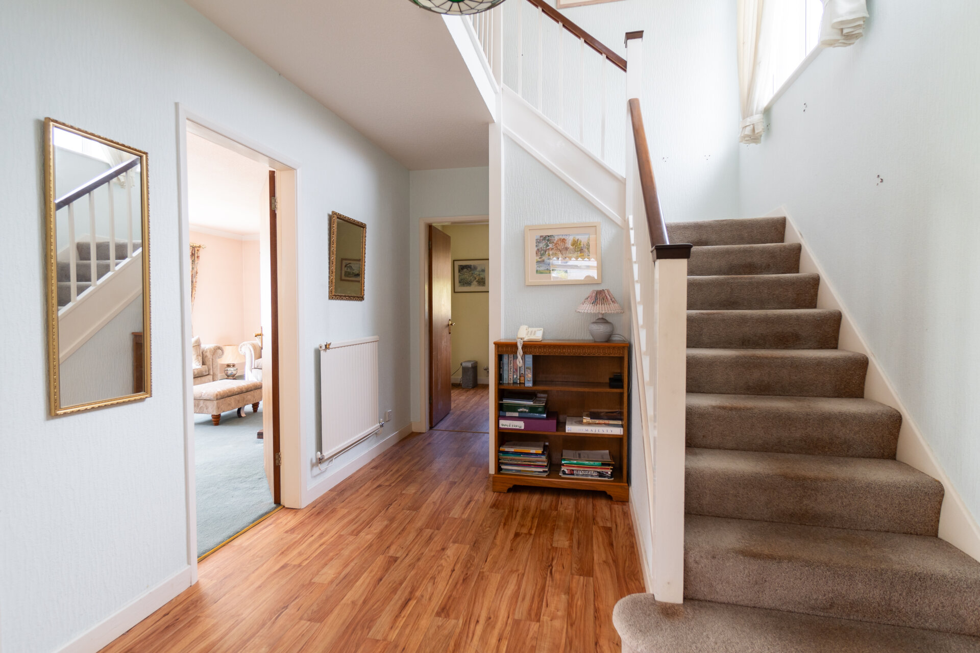 Upstairs, a sizeble landing flooded with natural light from a large window guides you to the bedrooms all with built-in wardrobes and a family bathroom boasting a four-piece suite.