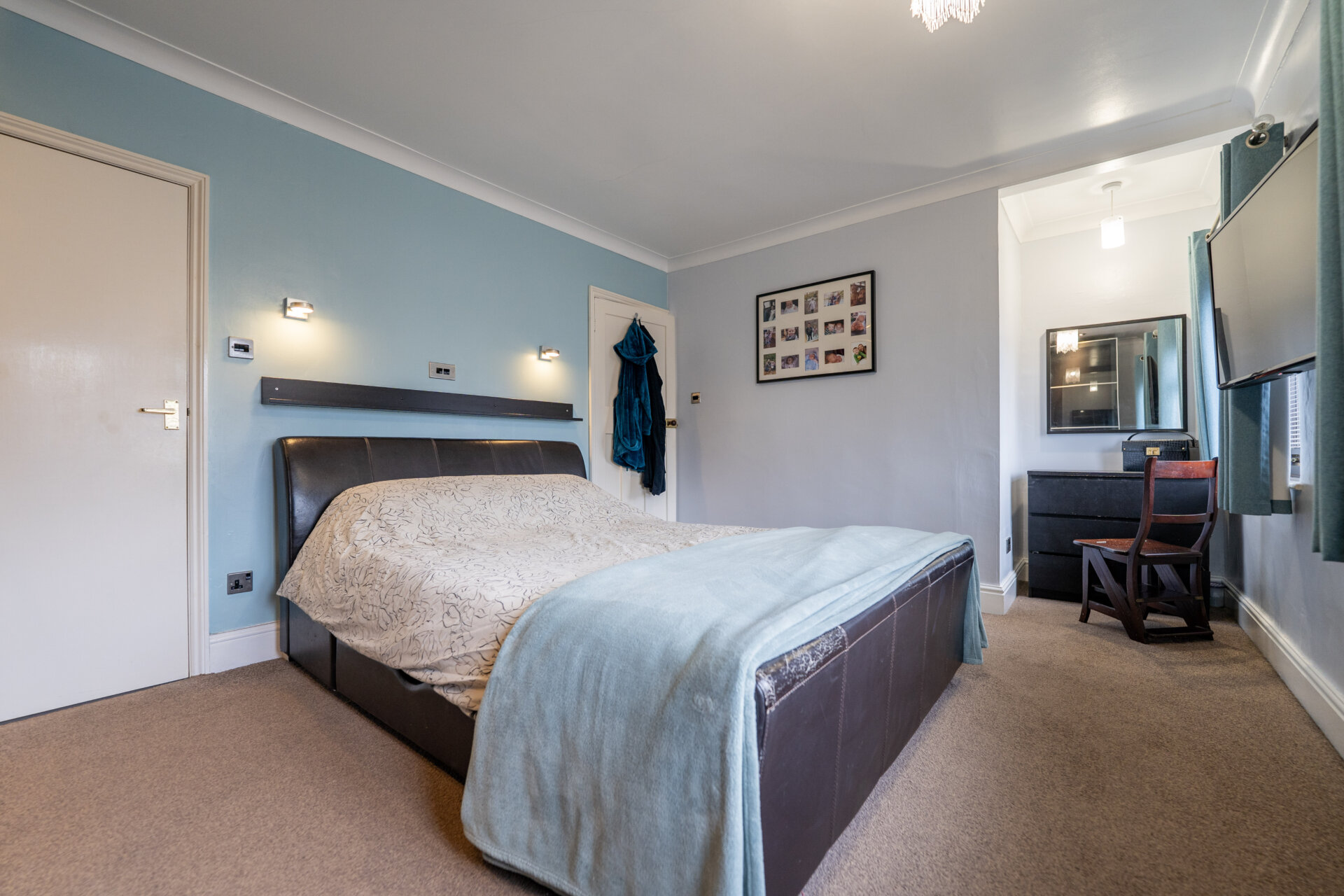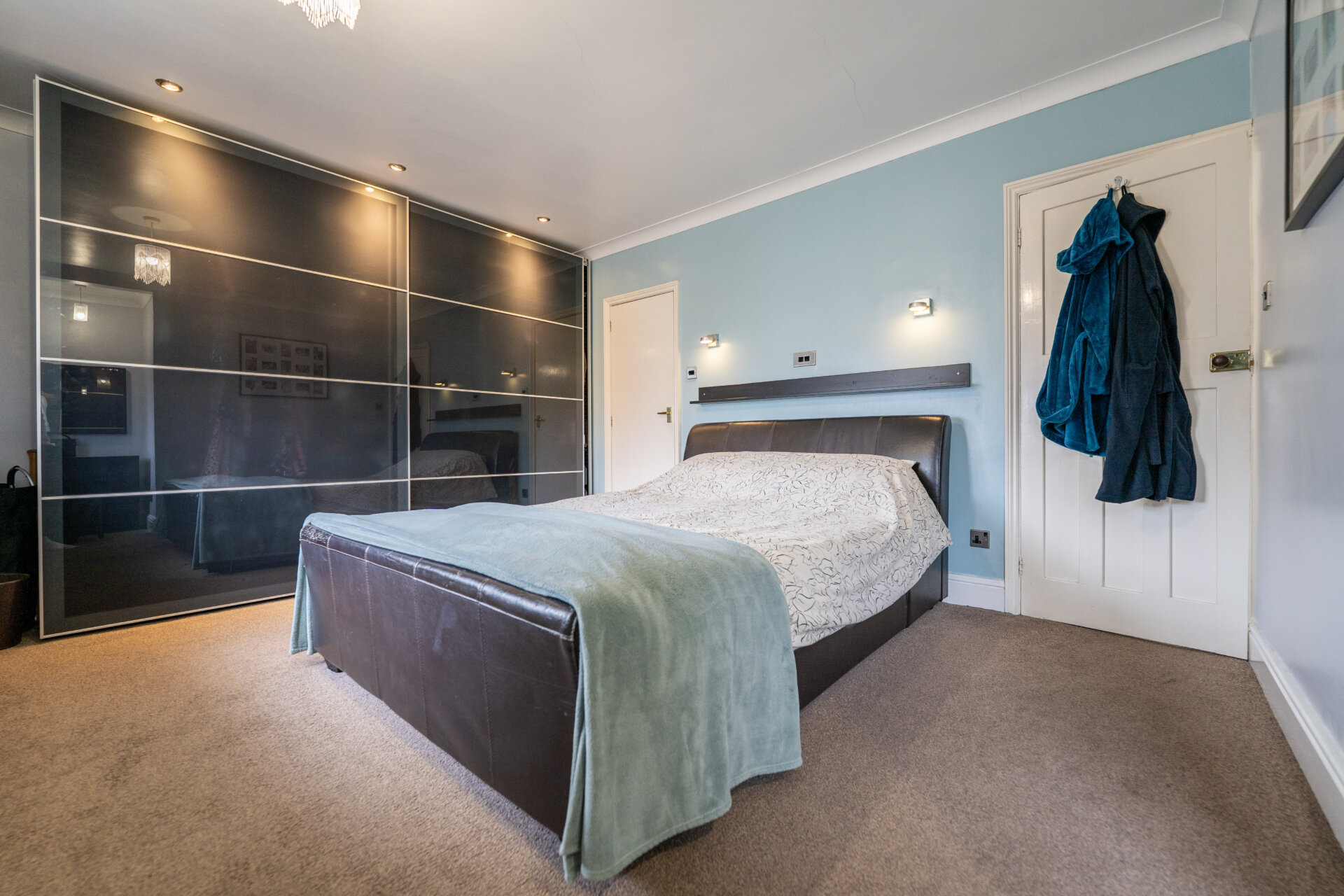 UPVC double glazed window x2, radiator, coving to the ceiling, spotlights and built-in sliding door wardrobe.