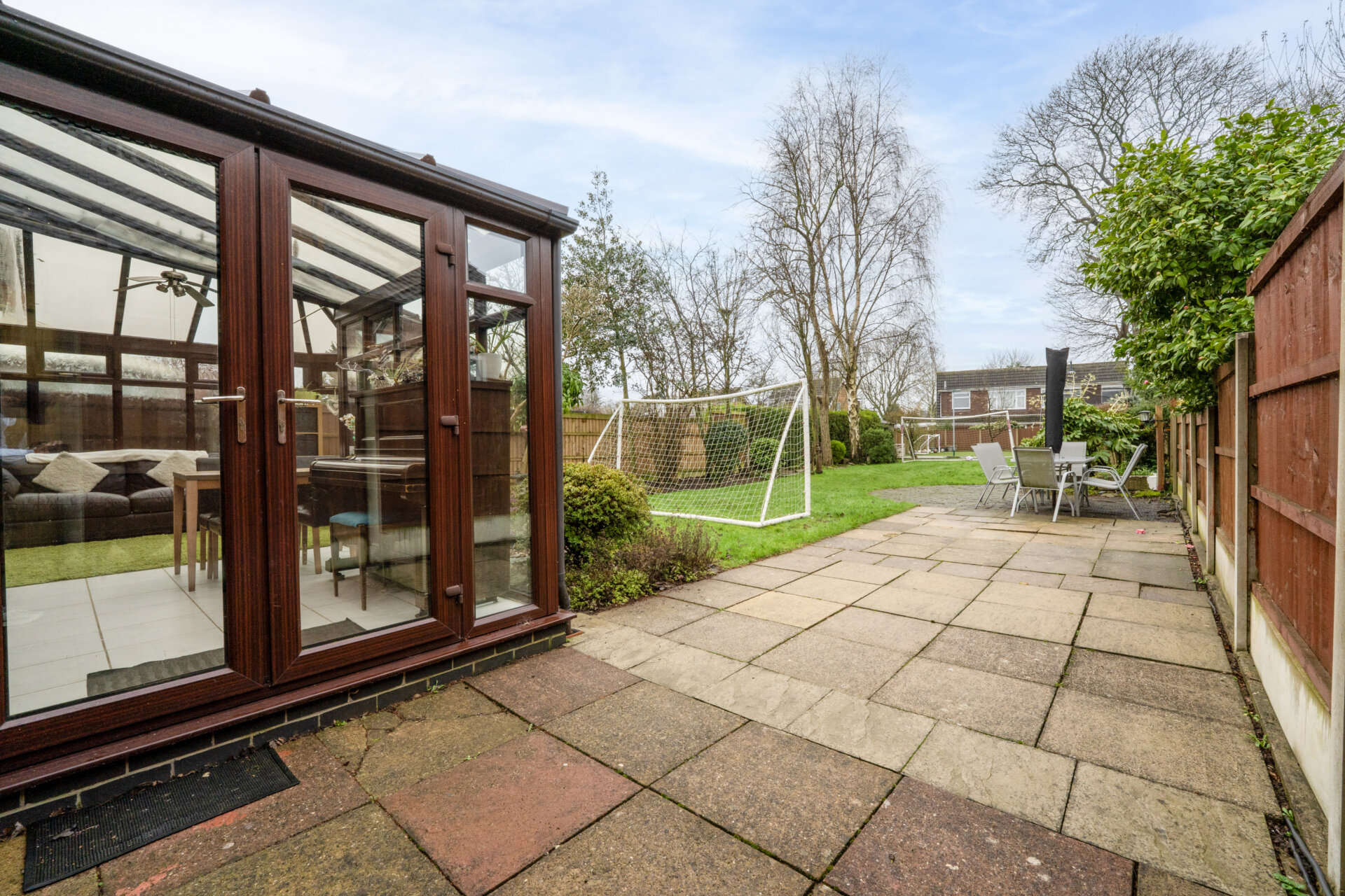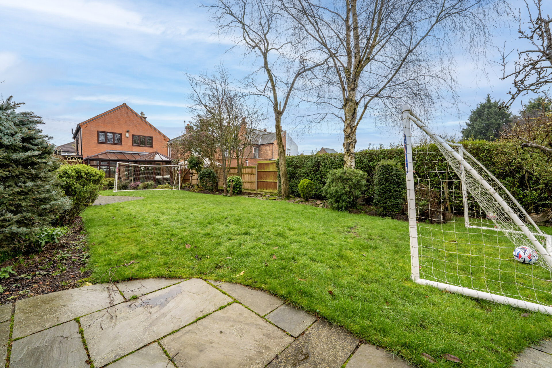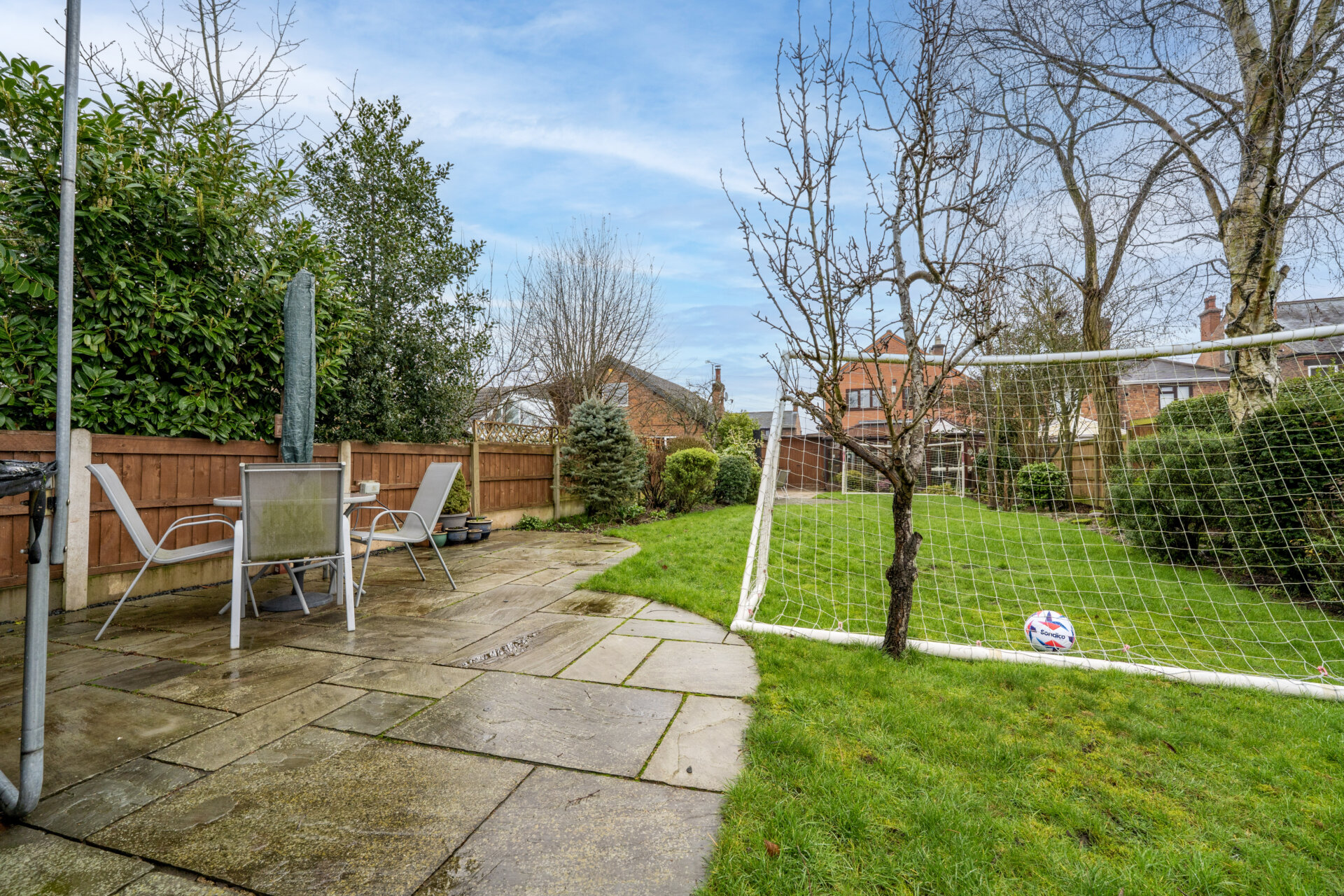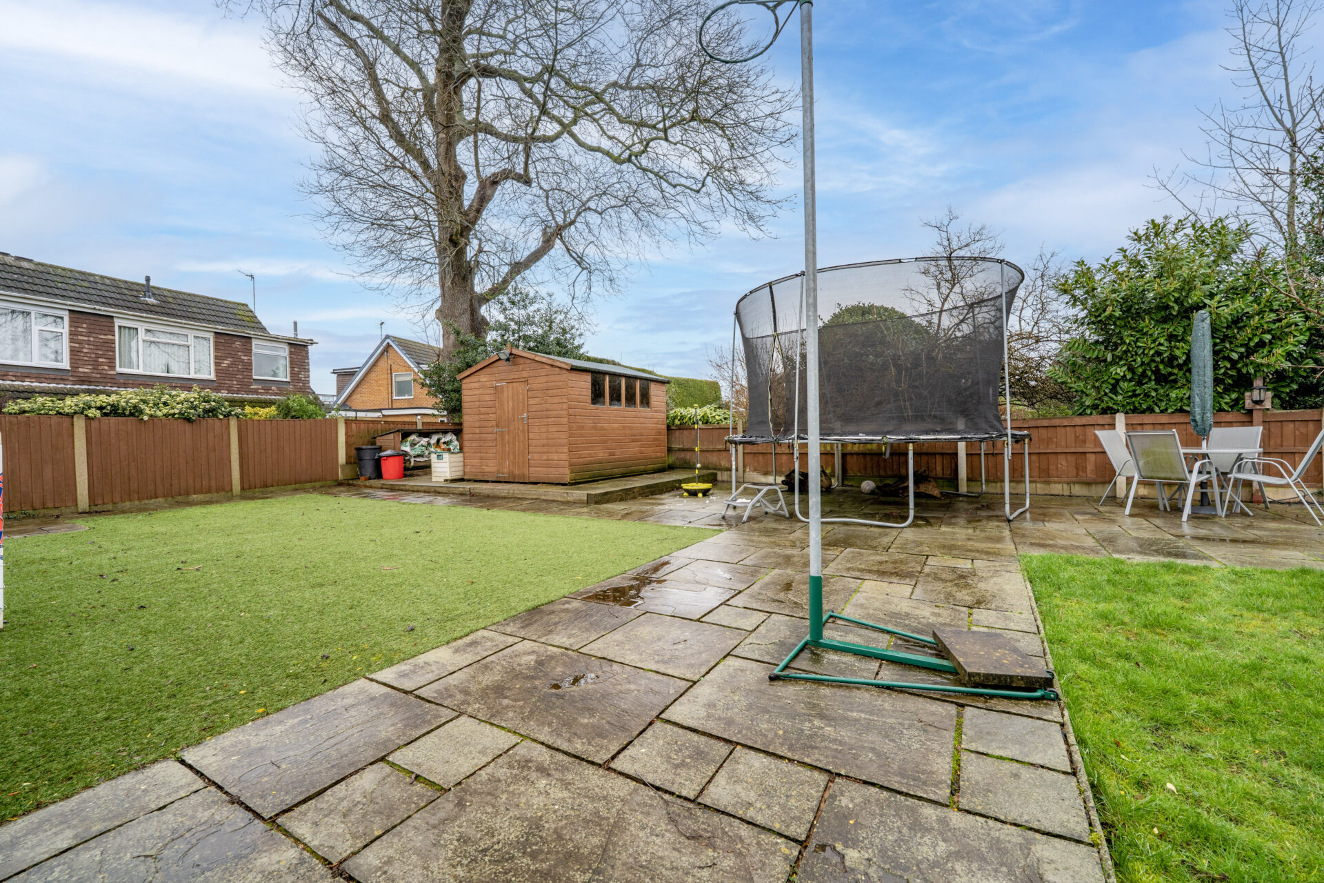 Externally, the property is set back from the road and privately enclosed by a brick wall. A block paved driveway to the side provides ample off-road parking and leads to a carport, which is accessible through gates at both the front and rear. The rear garden is a particular highlight, extending to at least 100 feet and enjoying a desirable south west facing aspect (perfect for afternoon and evening sun). A generous patio area is ideal for outdoor dining and entertaining, leading to a predominantly lawned garden with well-stocked borders featuring a variety of flowers, shrubs, and trees. At the end of the garden, there is an additional patio area with astro turf lawn, offering further space for relaxation or play. A large garden shed provides useful storage, and the whole garden is privately enclosed with fenced boundaries for security and peace of mind. An outside tap is also installed for convenience.
