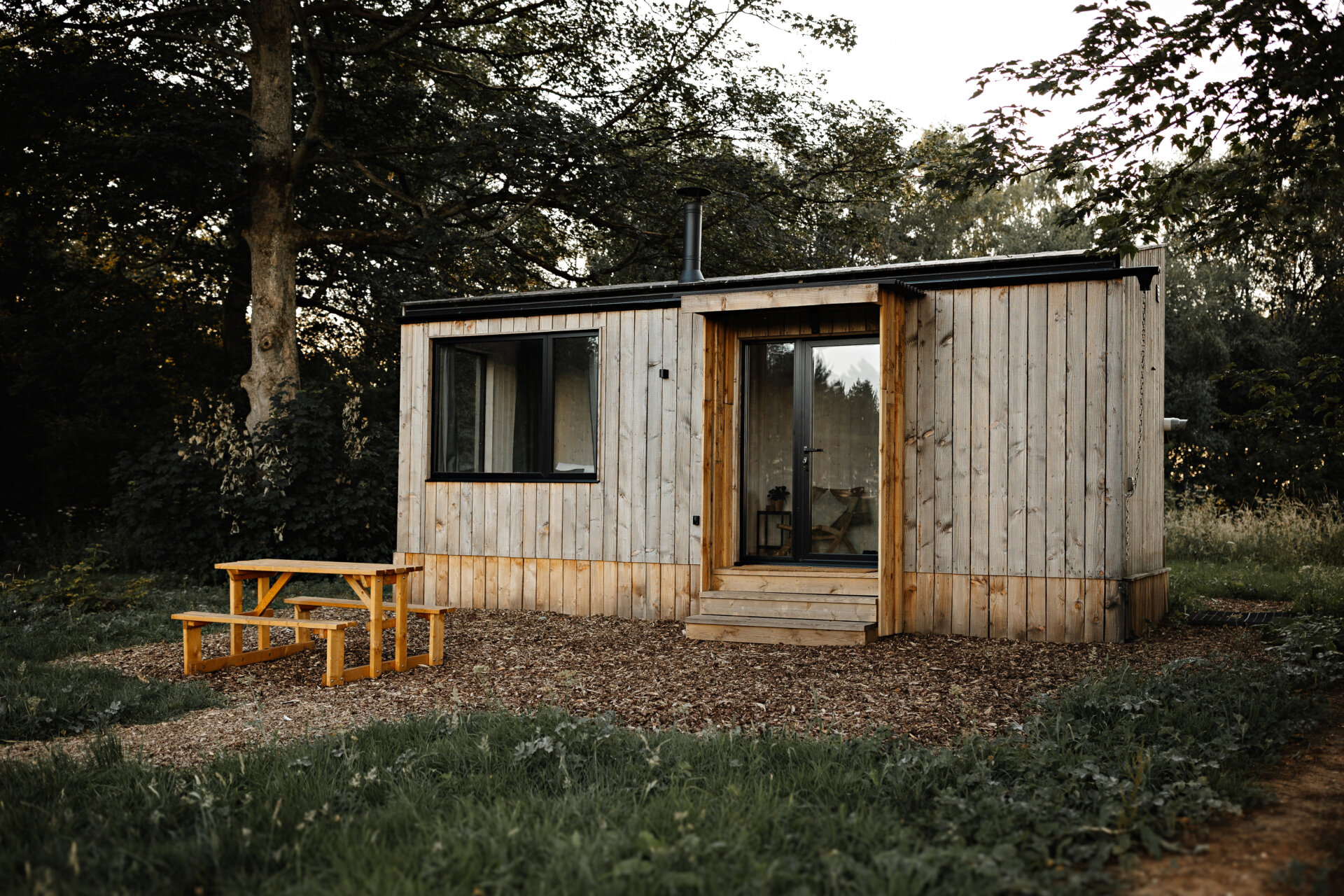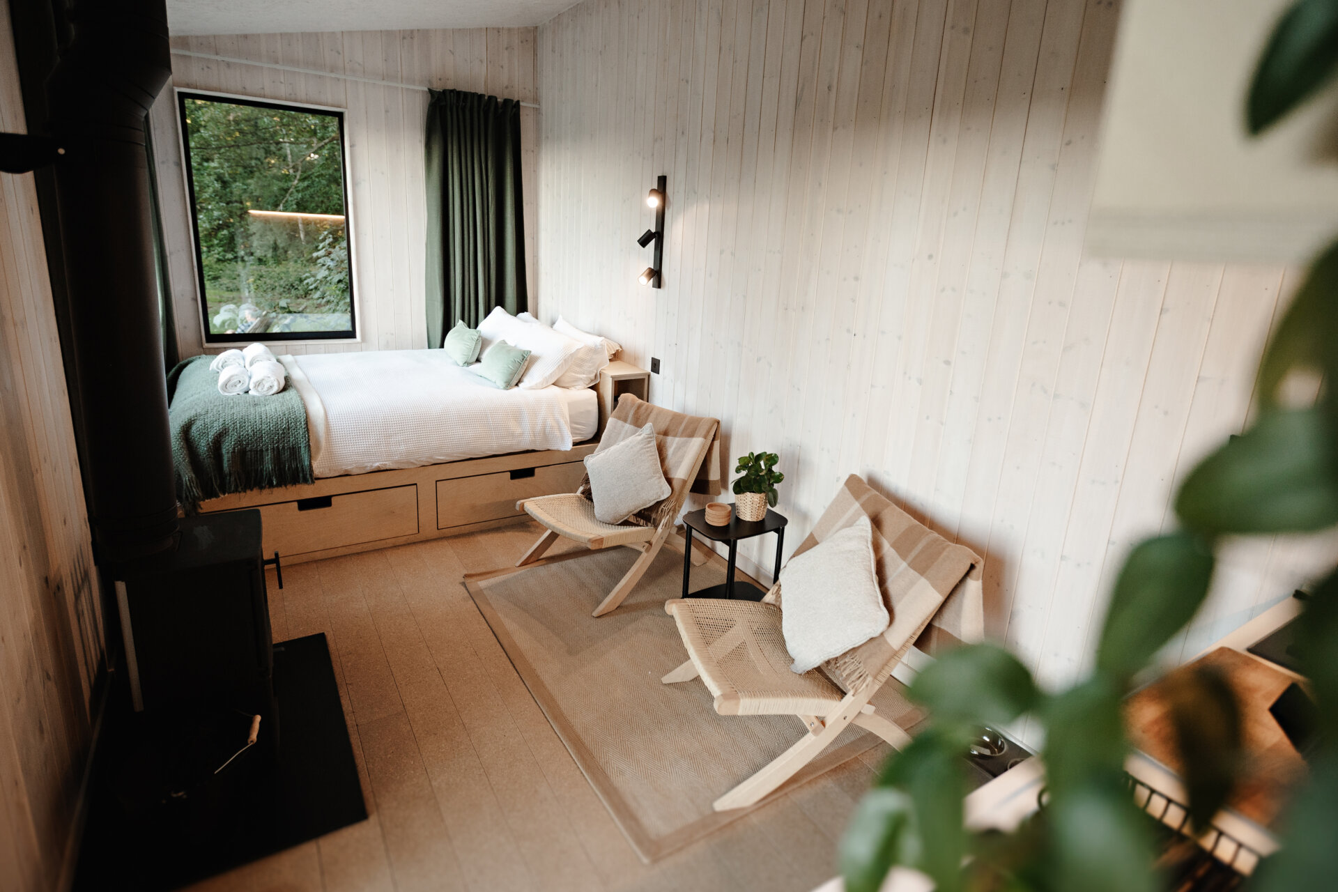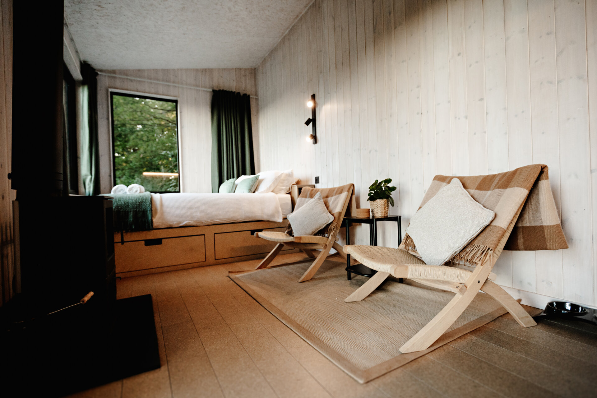 The cabin benefits from six 400W solar panels (DM108H), enhancing energy efficiency and providing power to two 12V Fogstar Drift batteries, offering a reliable off-grid energy solution. All solar panels, batteries and associated fixings are included in the sale.