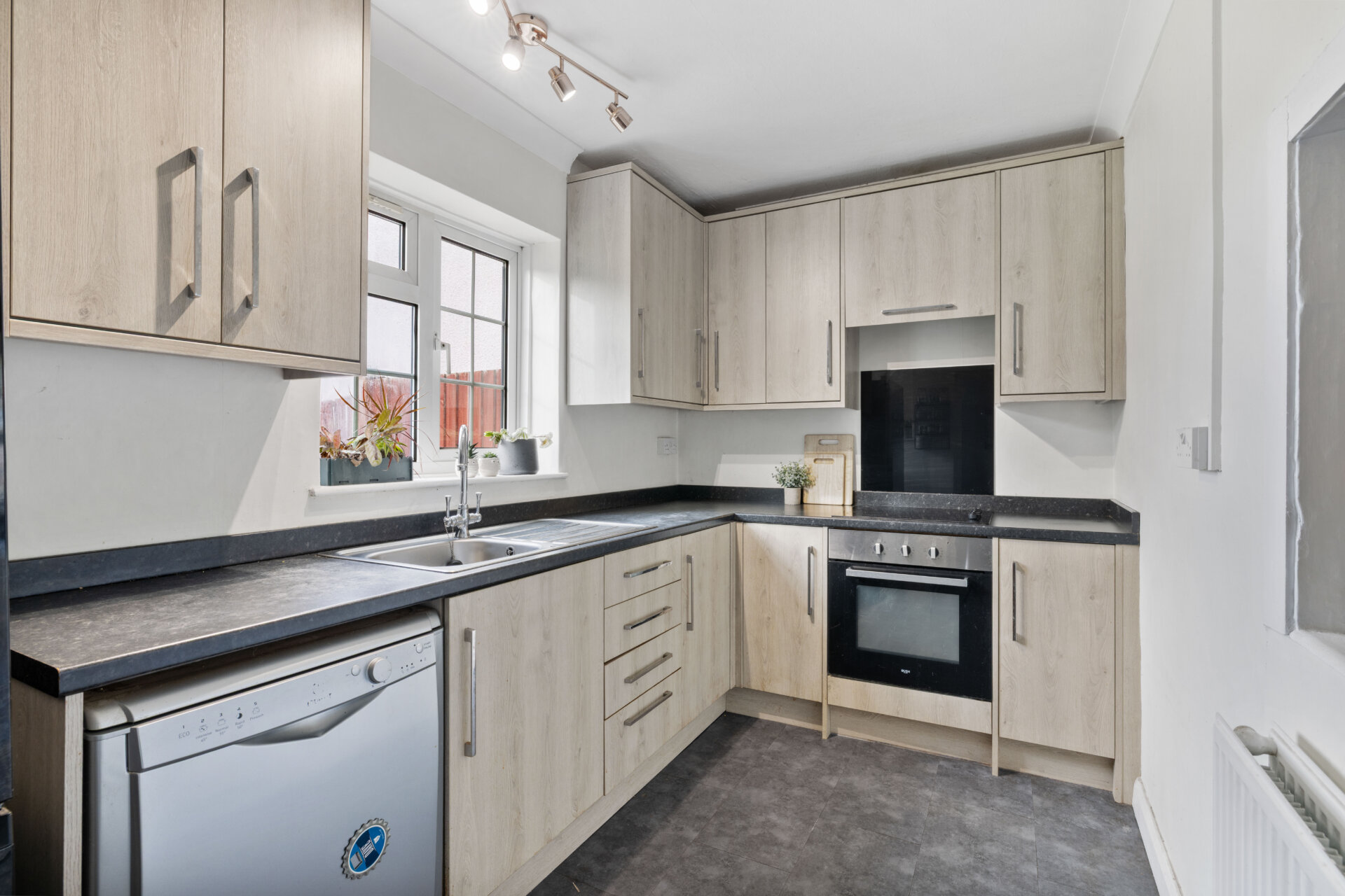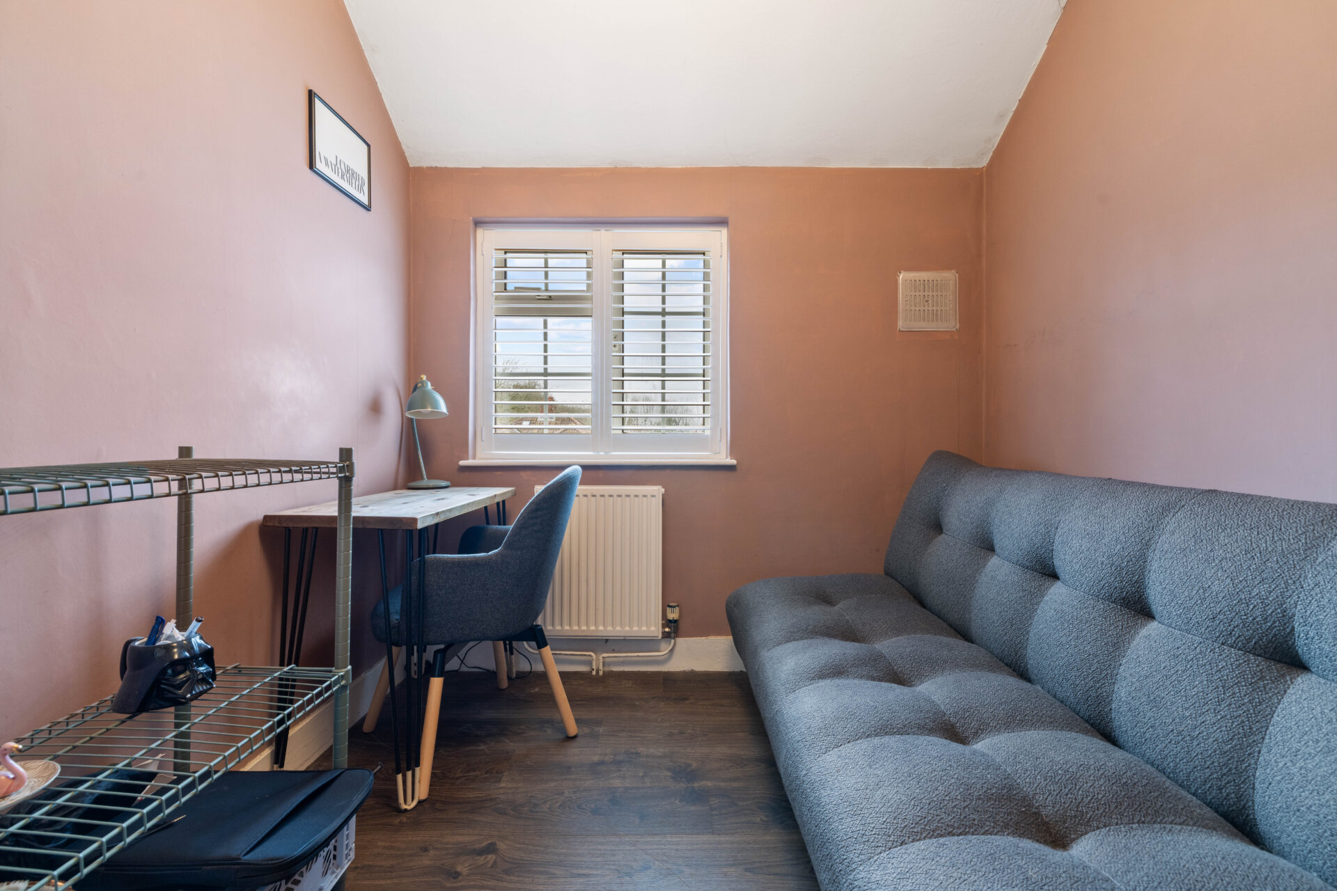 Upstairs, the property offers three well-balanced bedrooms, including a well-proportioned principal bedroom with ample space to add built-in wardrobes if you so desire. The second bedroom is also a comfortable double and benefits from an integrated storage cupboard. The third bedroom is perfectly suited as a child’s room, nursery or home office, offering flexibility to adapt as needs change.