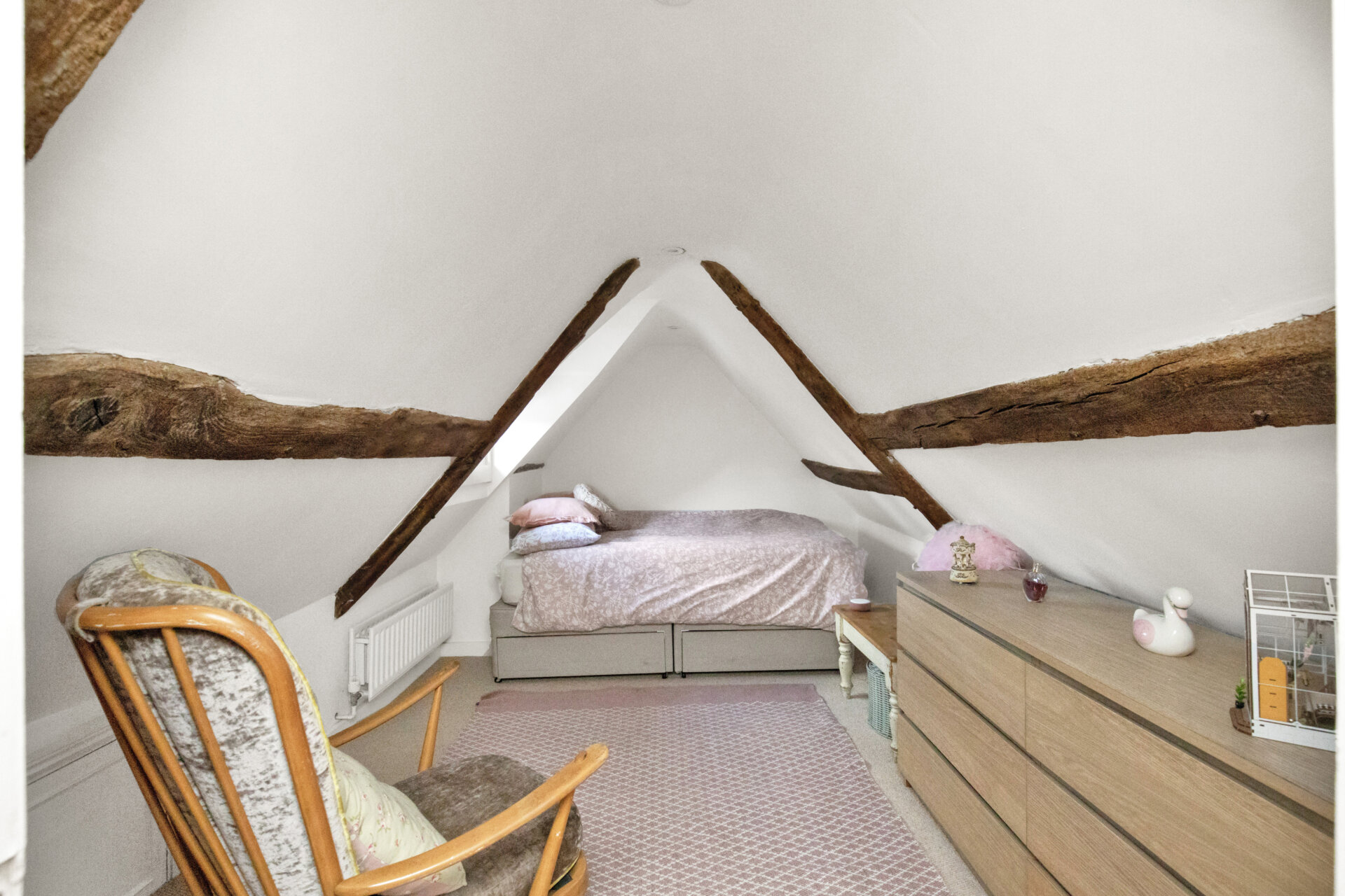Ascend to the first floor where the home’s character continues to unfold, with exposed wooden floors, high ceilings and striking oak beams in both double bedrooms. This level also features the main family bathroom with Japanese style Deep Soaking bath tub, adding to the convenience and charm of the space. A further staircase leads you up to the second floor, revealing just how deceptively spacious this home truly is.