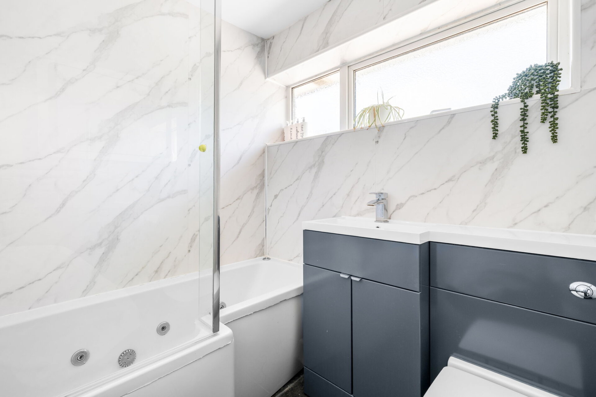 The bedrooms are served by a modern family bathroom, fitted with a contemporary suite and stylish finishes, providing both comfort and convenience.