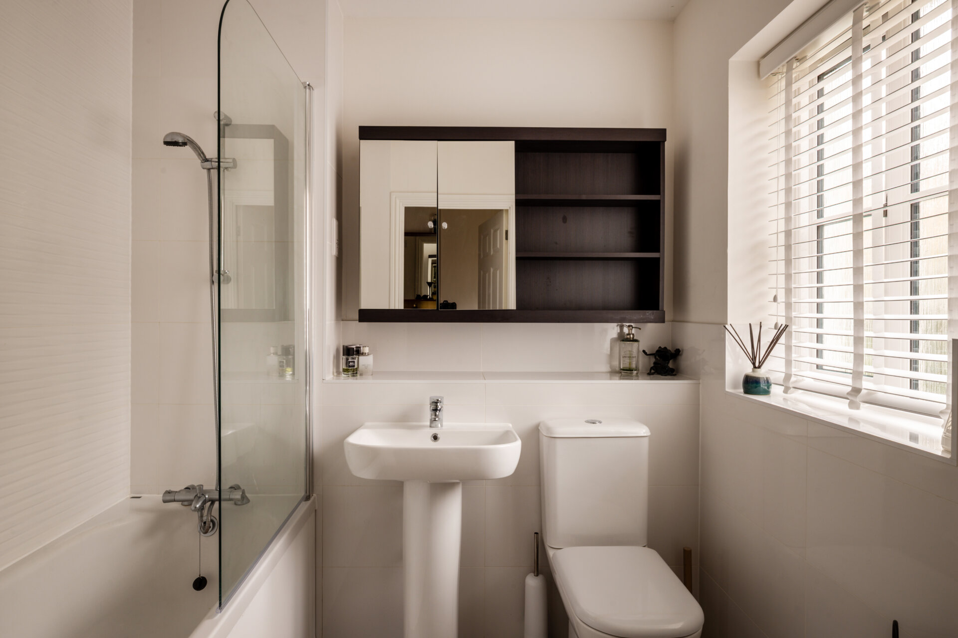 On the first floor, the principal bedroom offers fitted wardrobes and its own en-suite shower room, creating a calm and private retreat. A further bedroom on this level works equally well as a nursery, guest room or dressing room, depending on your needs.
