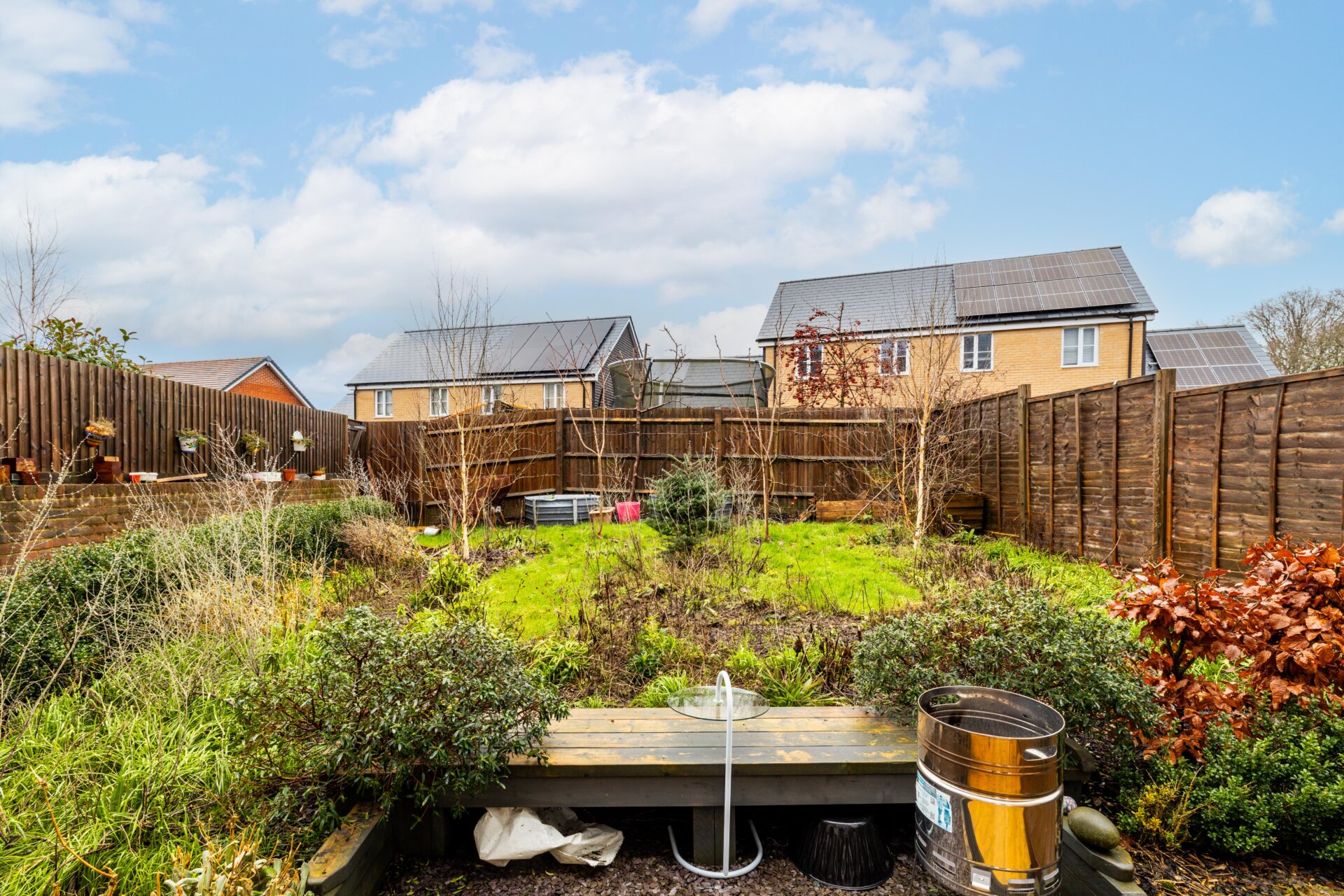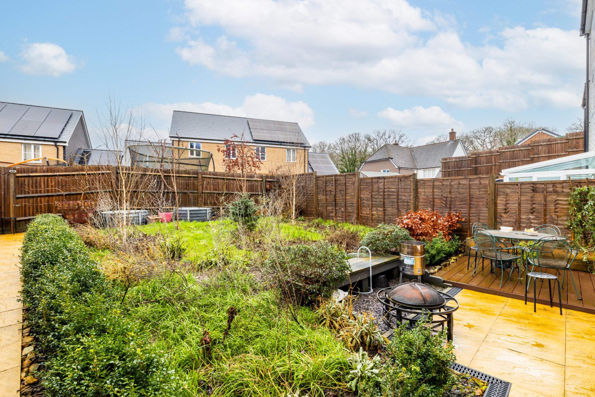 The rear garden is a real highlight. Fully enclosed and private, it has been thoughtfully designed with nature in mind, offering a peaceful outdoor space to enjoy throughout the year. Well suited to keen gardeners and nature lovers, it features a variety of planting and relaxing areas. For those preferring something more low maintenance, the garden could easily be adapted to create a practical space for entertaining family and friends.