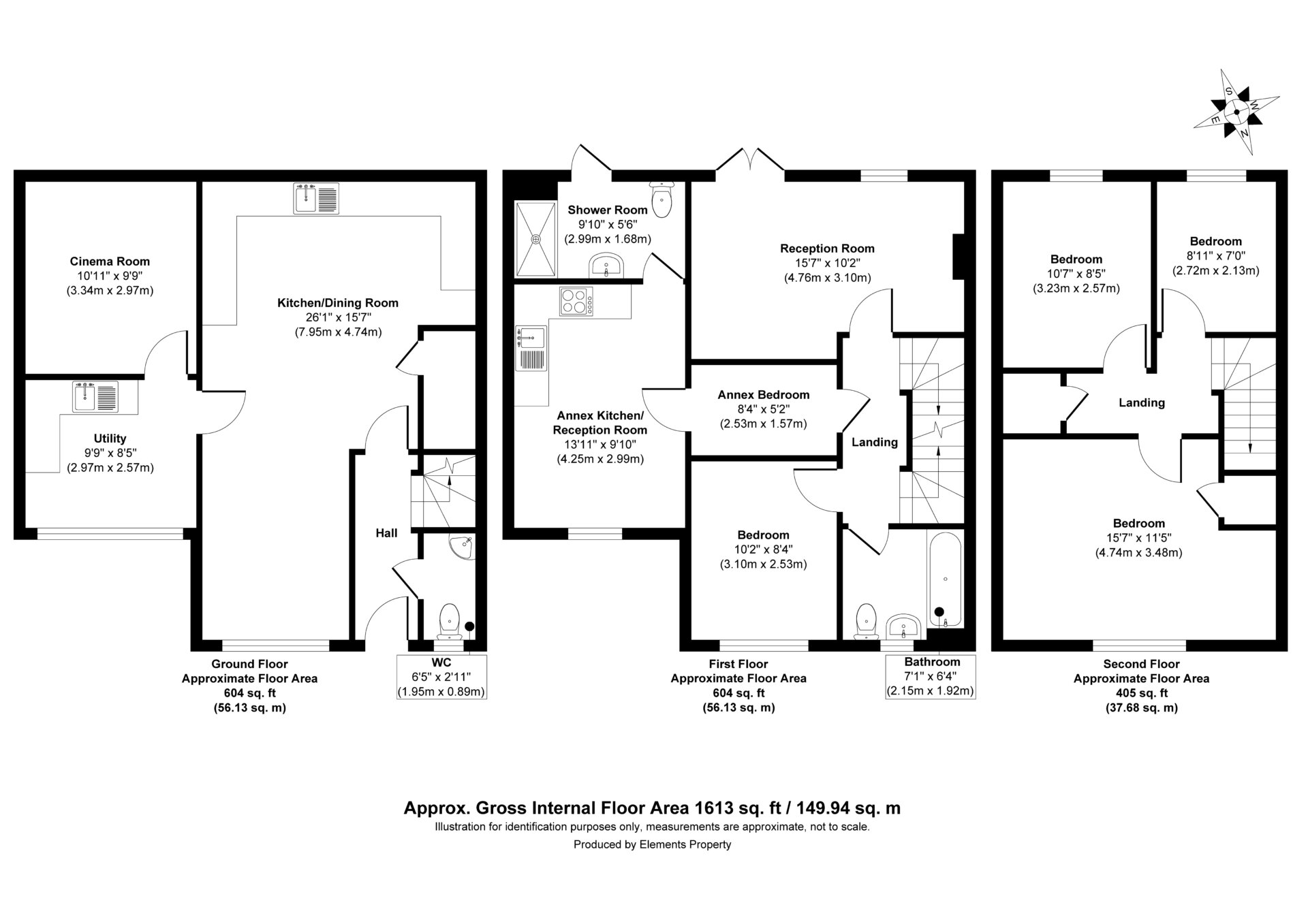 The second floor comprises three further well-proportioned bedrooms, offering flexibility for family life, guests or home-working needs.