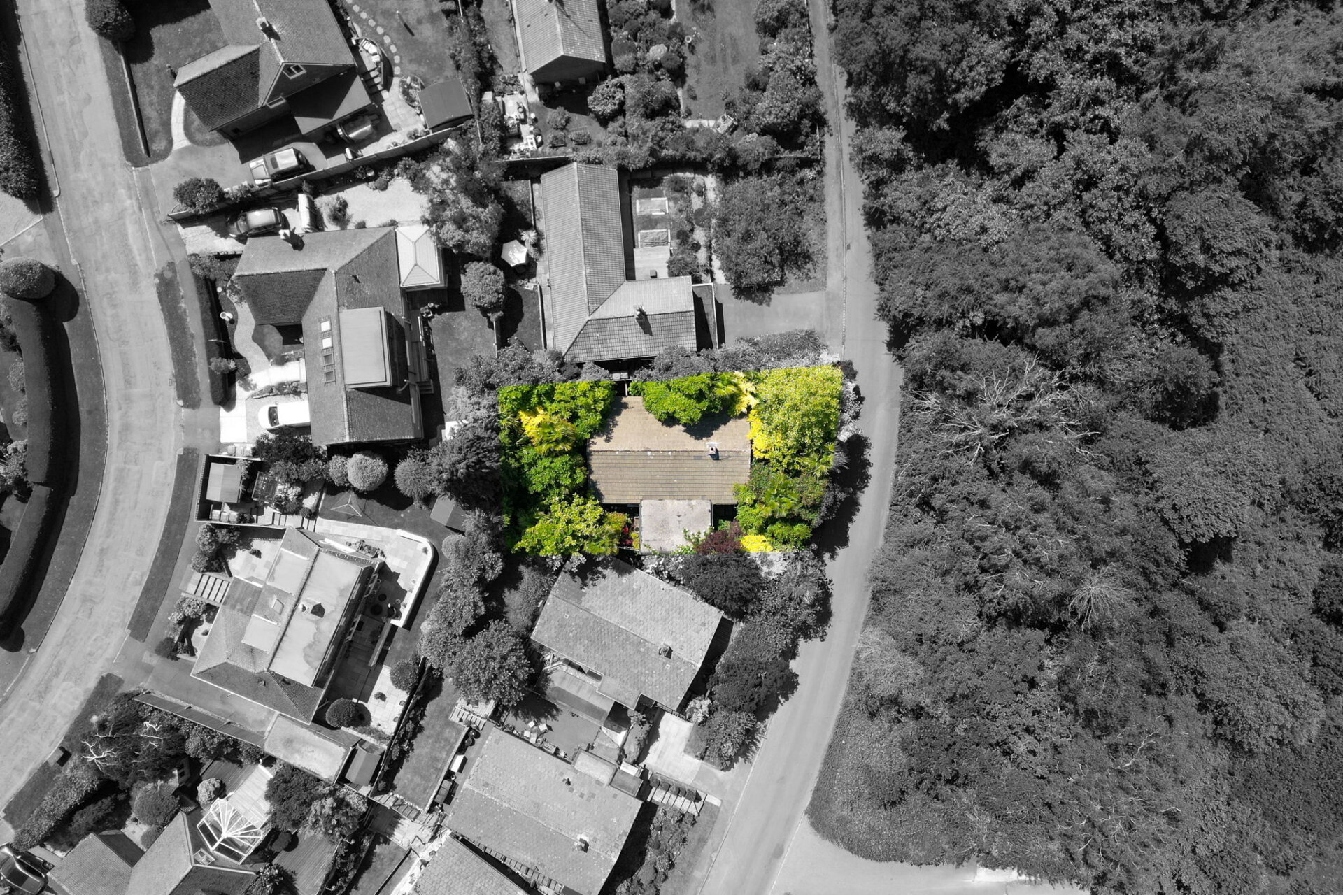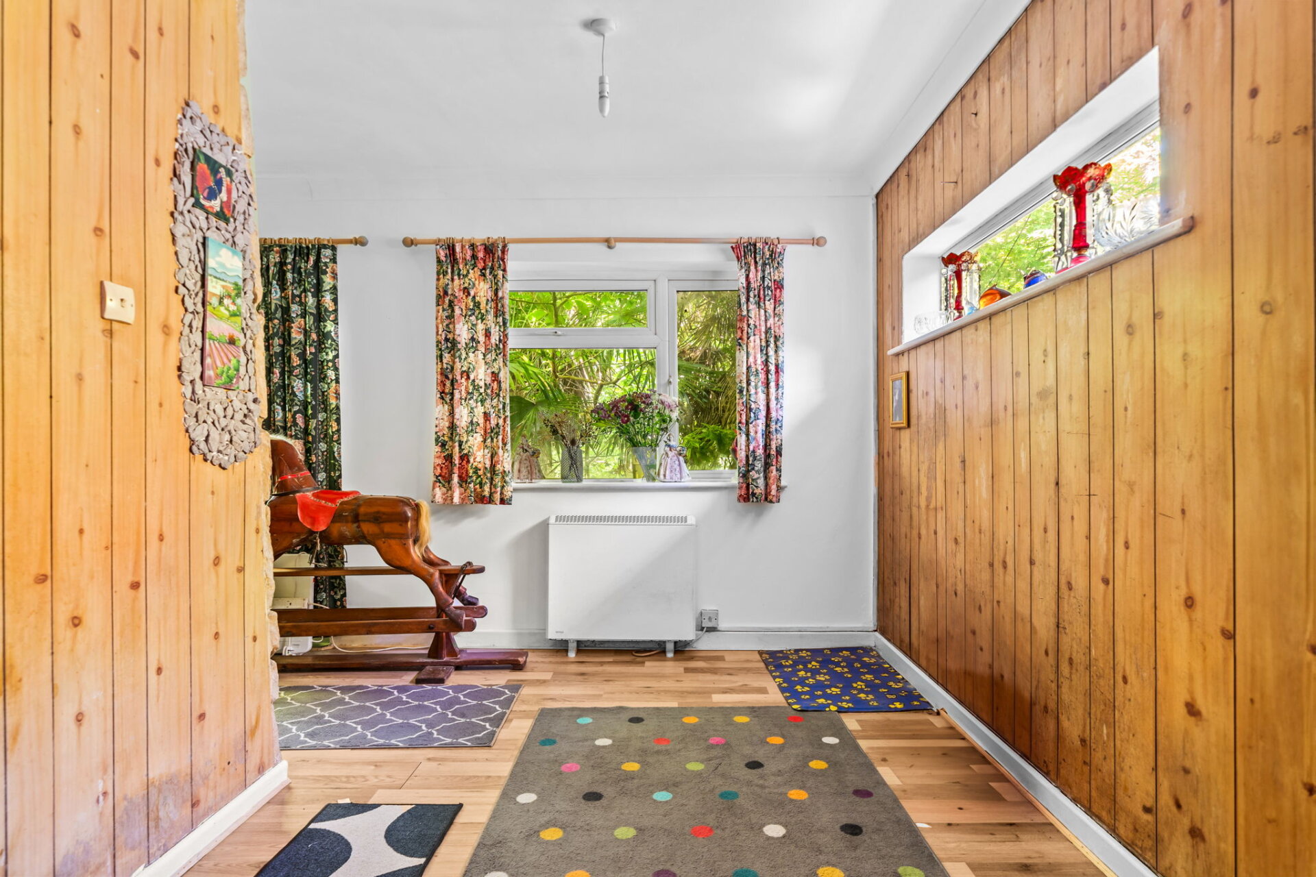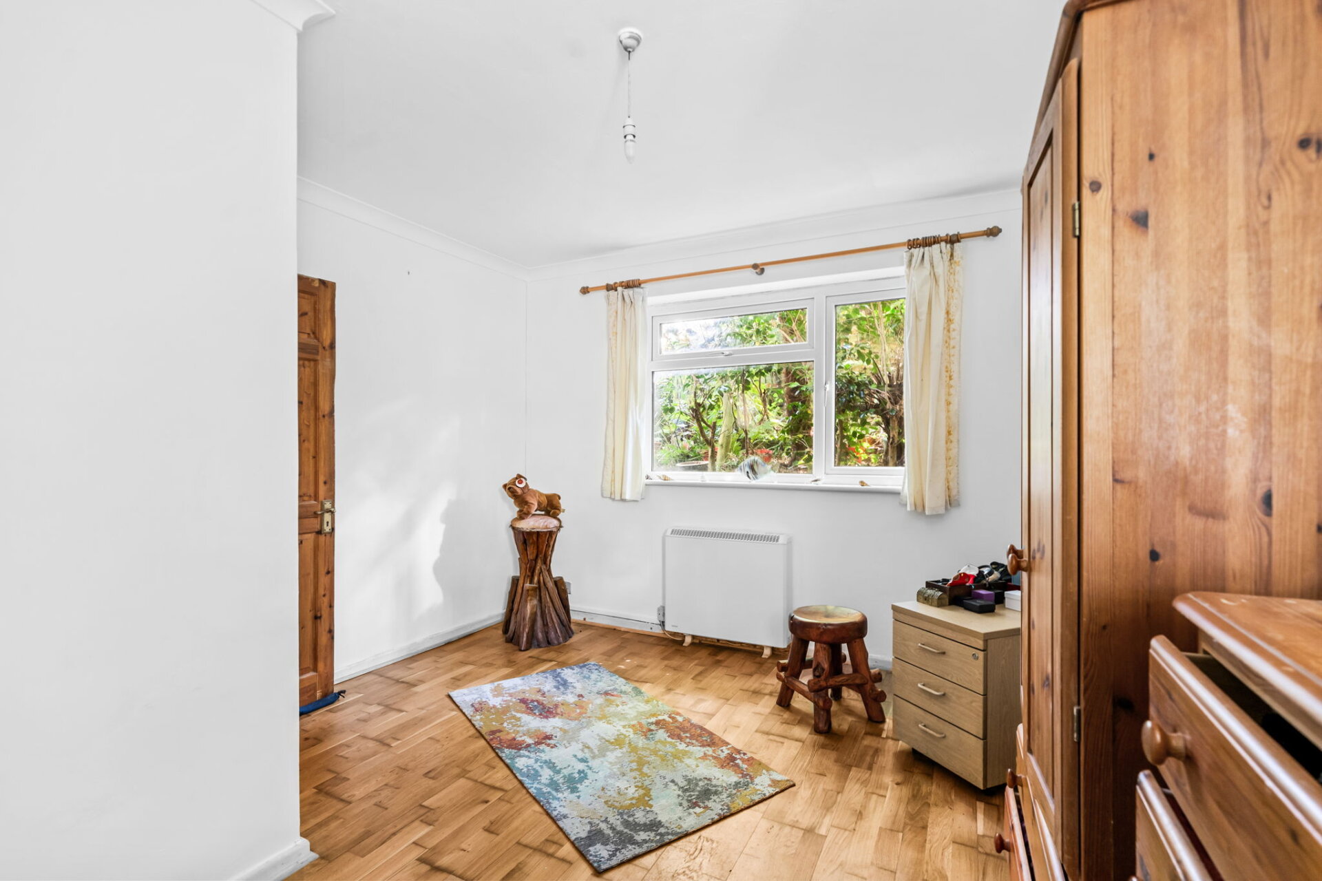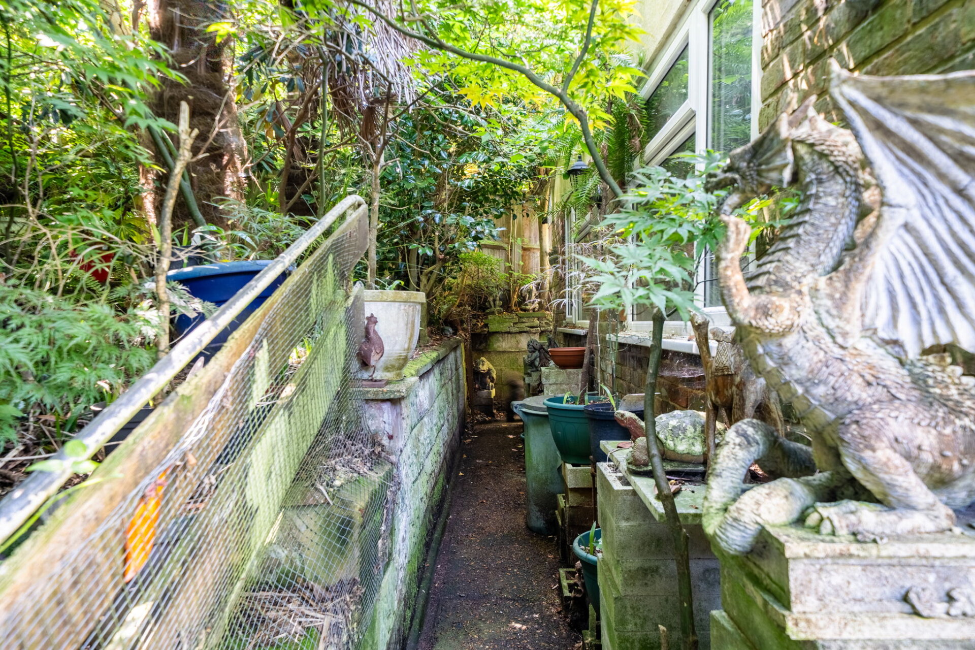 The garden wraps around the property, offering a good amount of outdoor space with plenty of potential. Currently in need of some general tidying and attention, it’s stocked with a variety of mature trees and plants — including Acers and palms — which, once cared for, could create a wonderfully private and secure garden environment.