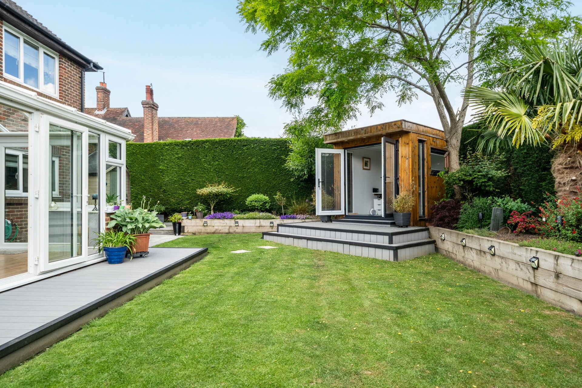 A separate garden office offers a quiet and versatile space ideal for working from home, creative projects, or simply enjoying some peaceful time. There’s also a useful garden shed for additional storage.