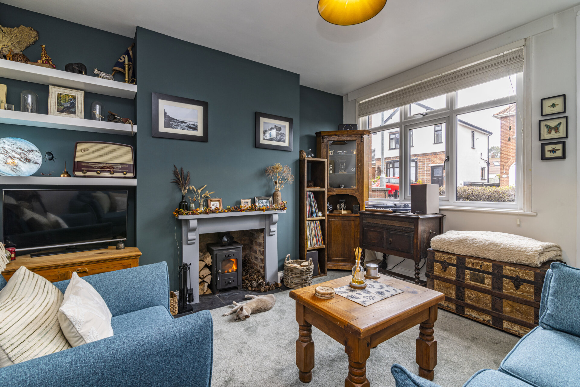 This stunning two-bedroom end-of-terrace home boasts exceptional curb appeal, thanks to its recently fitted front door and windows that add a contemporary touch to its classic charm. As you step inside, you are welcomed by a warm and inviting lounge that exudes character, featuring elegant coving and a cosy log burner - perfect for those relaxing evenings.