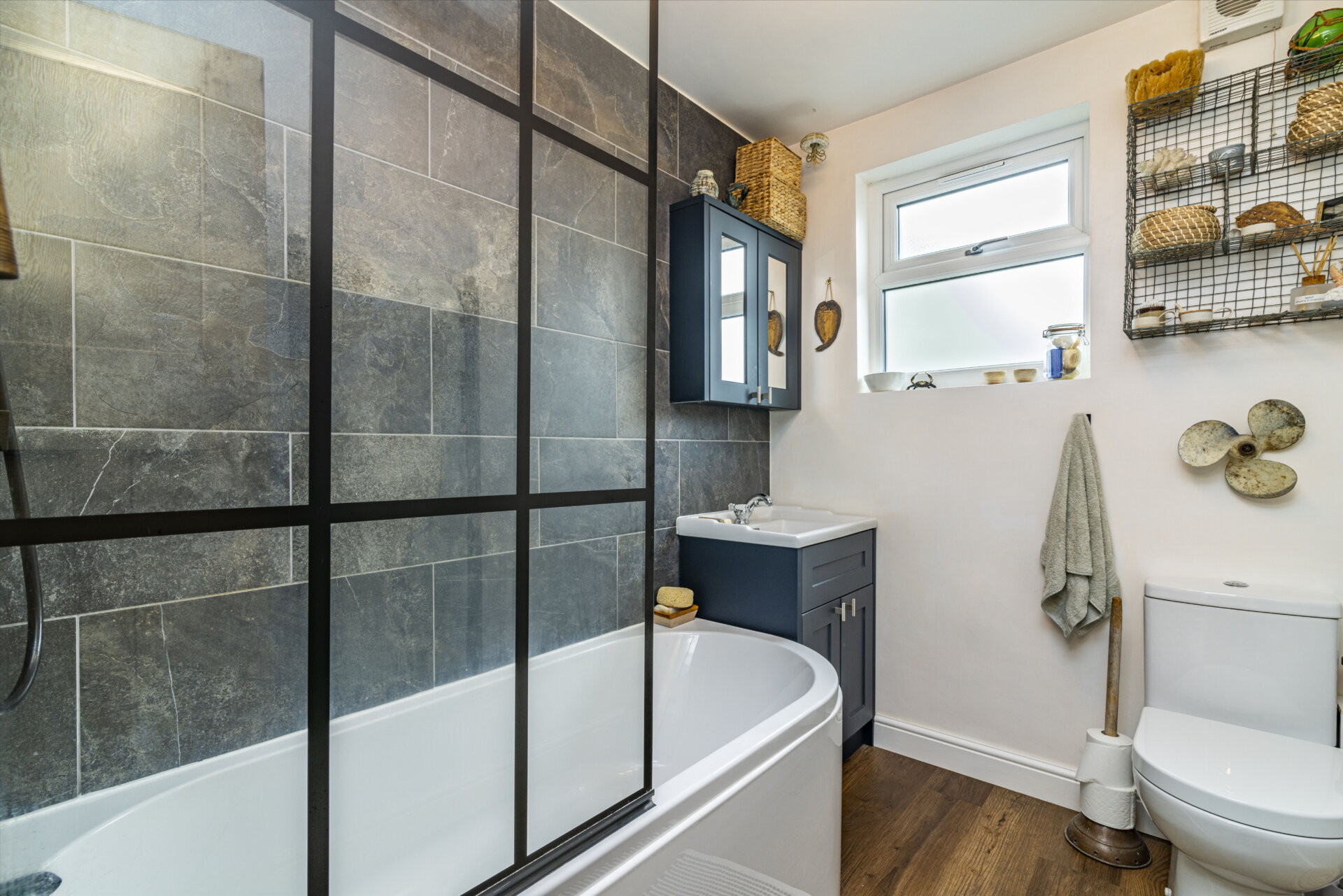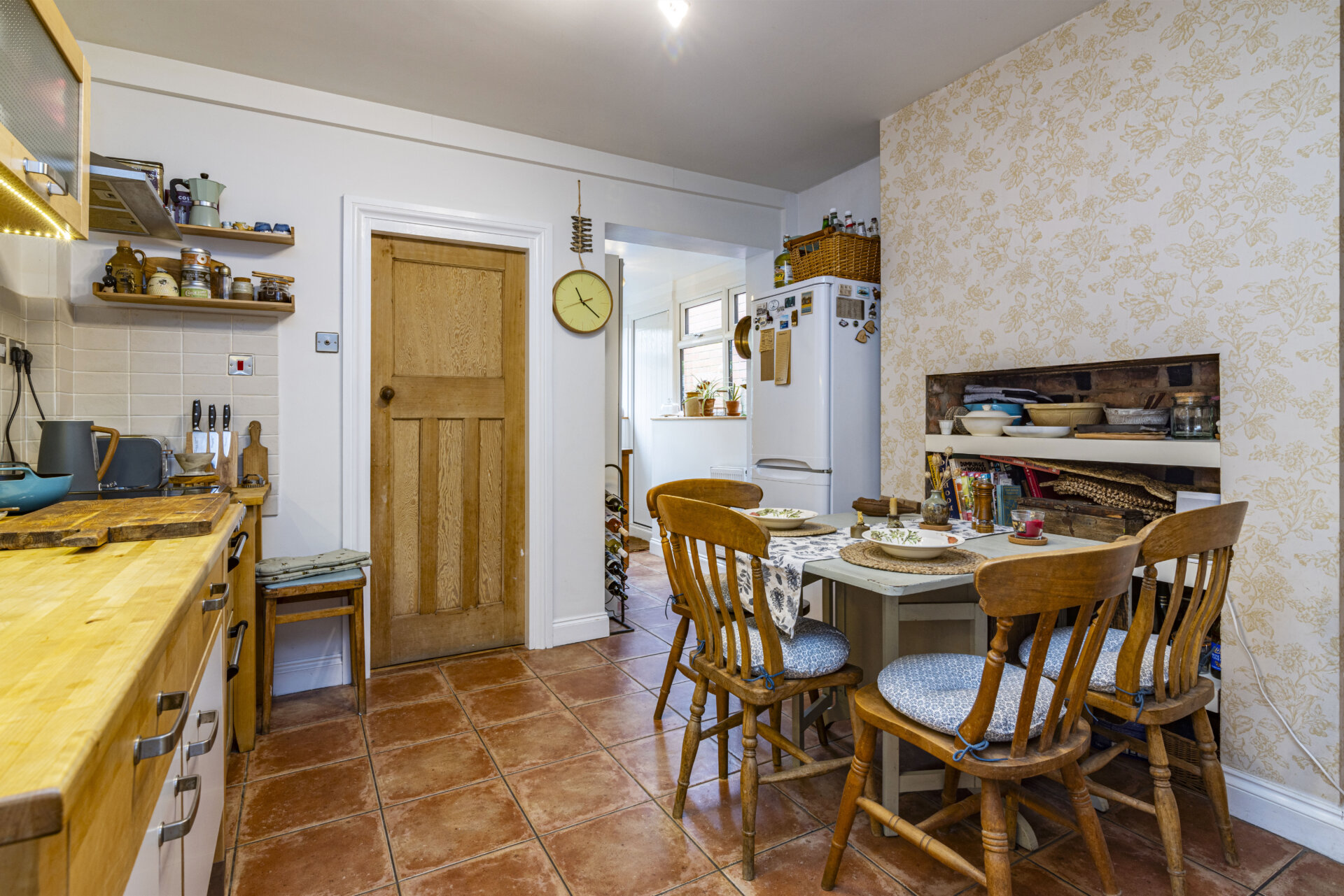 Moving through the home, you’ll discover a distinctive kitchen/diner that combines style and functionality, with an additional kitchen area at the rear for extra workspace and easy access to the garden. The modern family bathroom, the latest update to this beautiful home, is a true standout, offering a fresh and sophisticated space.