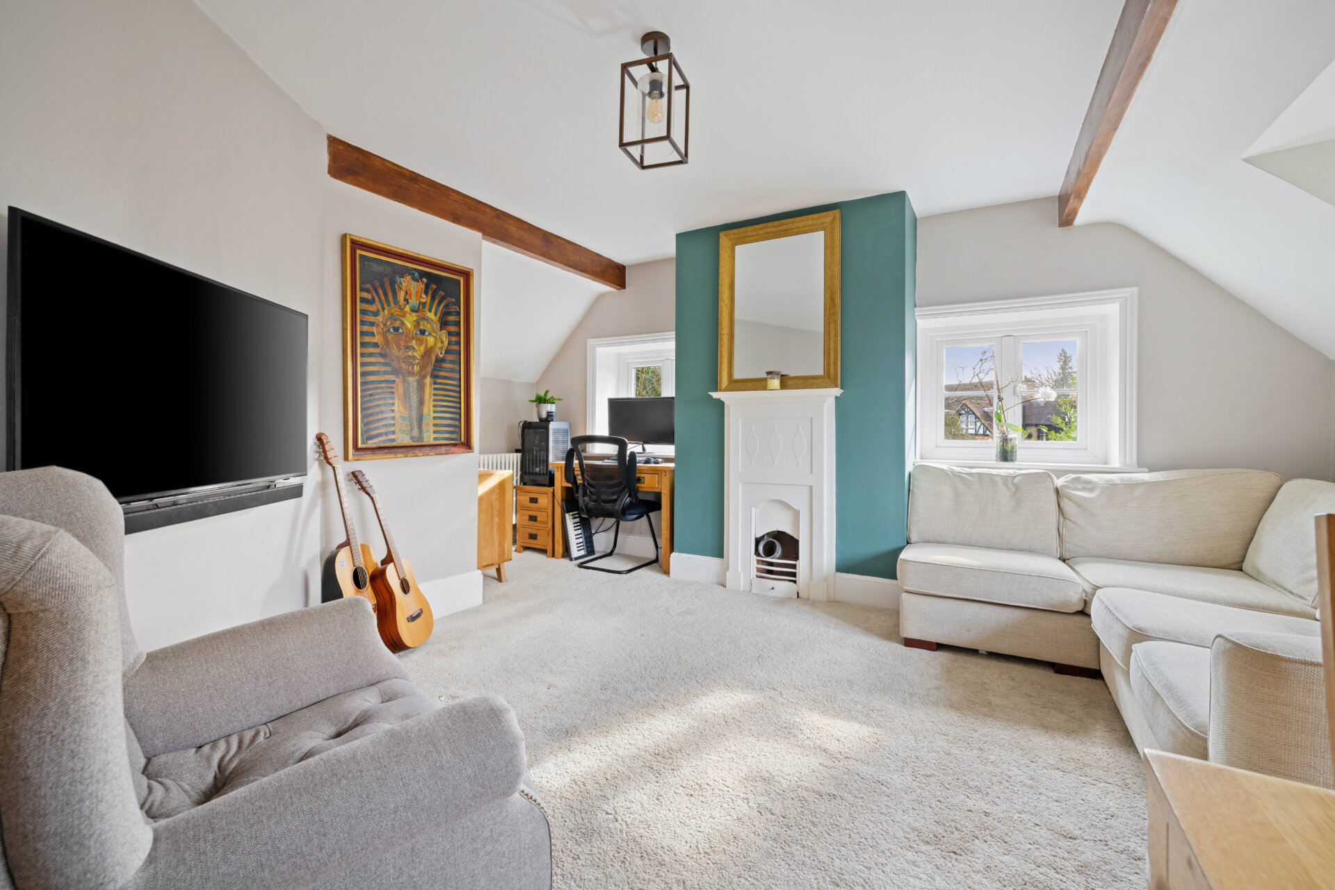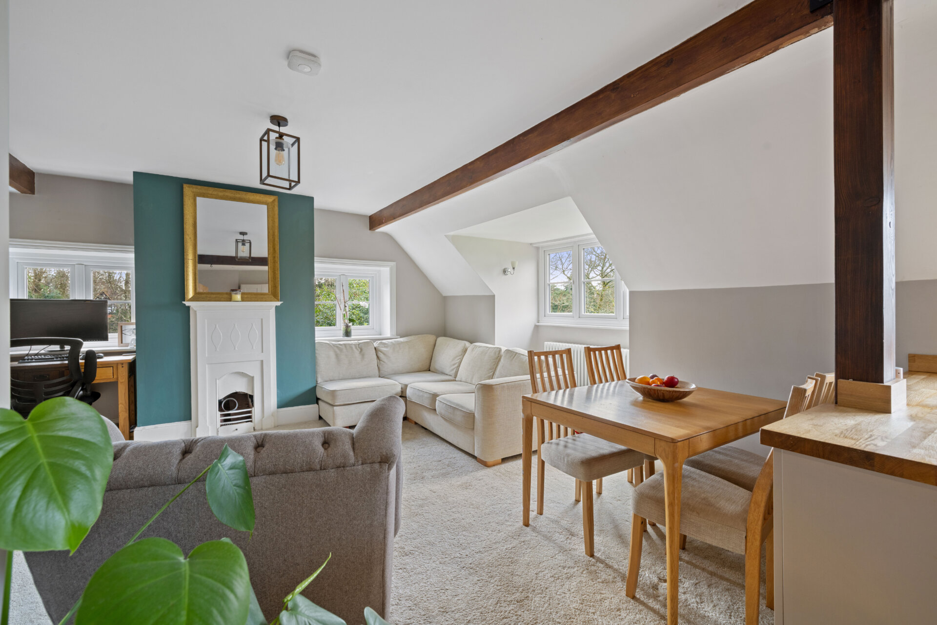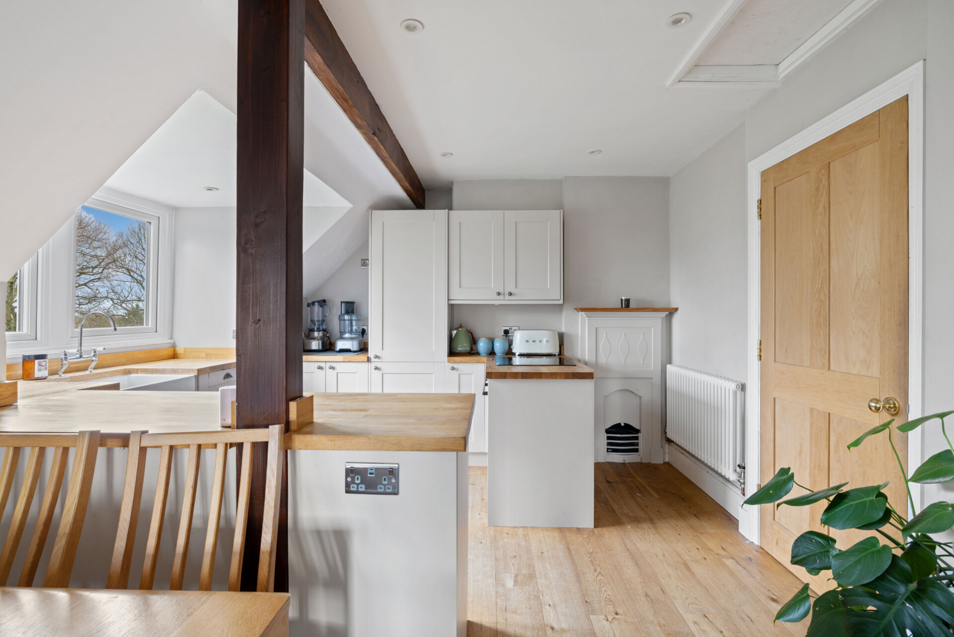 Tucked away on Tower Road in a tranquil setting, Brambledown is a charming two bedroom top floor apartment full of character. The modern country style kitchen, thoughtfully updated by the current owners, flows seamlessly into a spacious living room with ample space for dining, exposed beams and original fireplaces adding warmth and charm.
