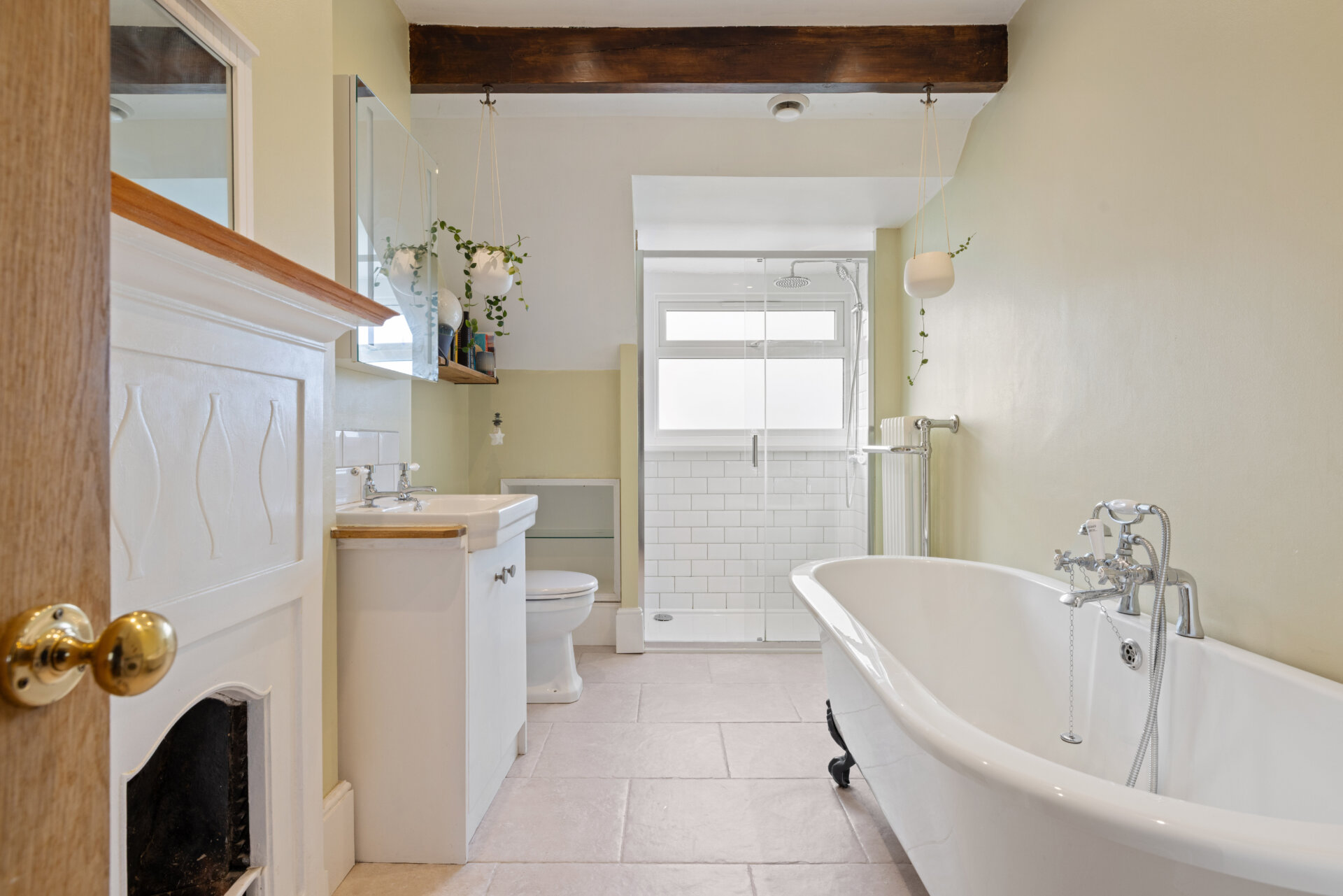 The generous principal bedroom benefits from built in storage, while the second bedroom also offers storage and a Velux window allowing natural light to pour in. The beautifully refitted family bathroom features a classic roll top bath and a generous separate shower with rainfall head, completing this delightful home.