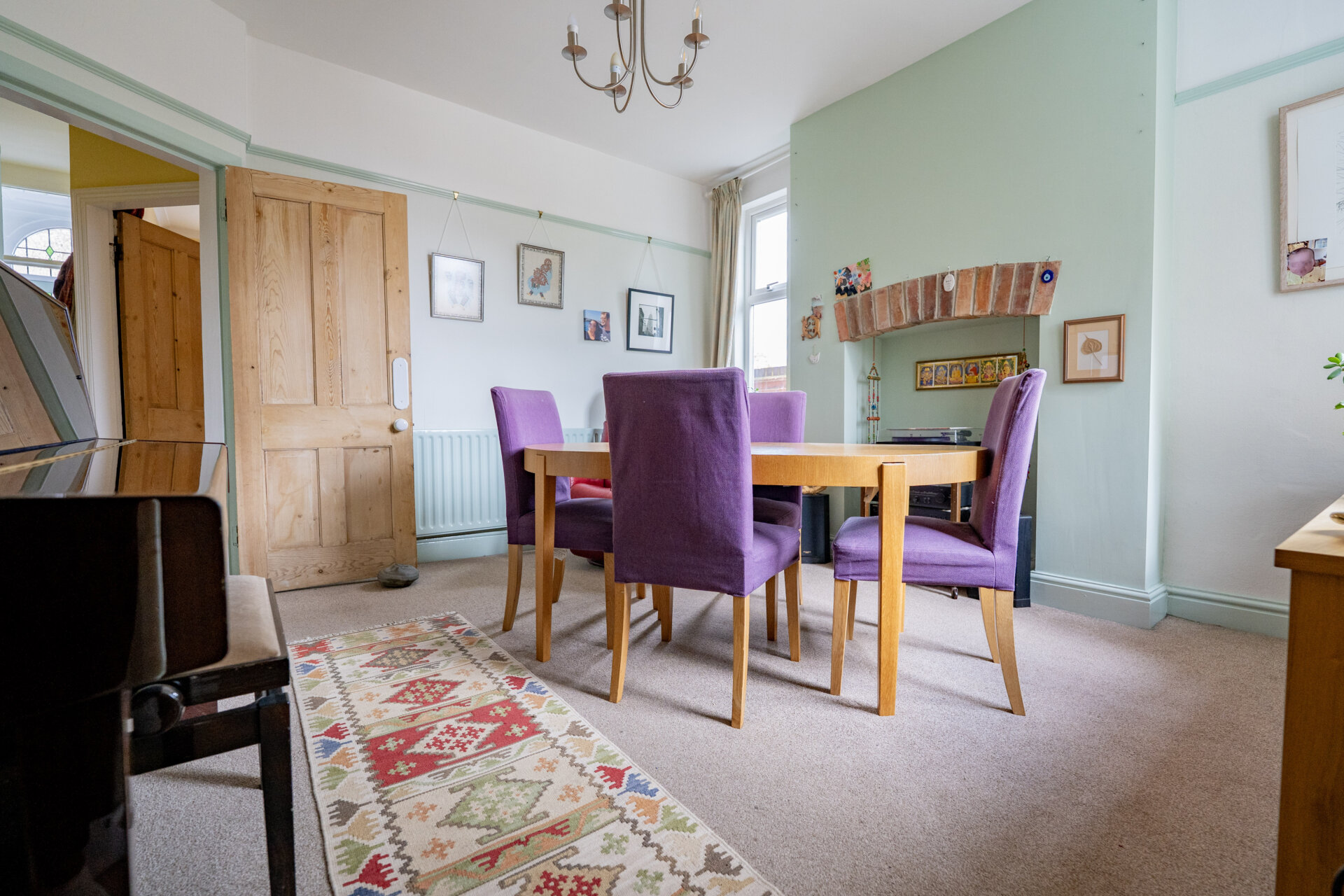Another great reception room with continued high ceilings, carpet flooring, radiator, double glazed window to the left elevation, chimney breast with insert with recess alcoves either side, double glazed window to the rear elevation and original door to kitchen .
