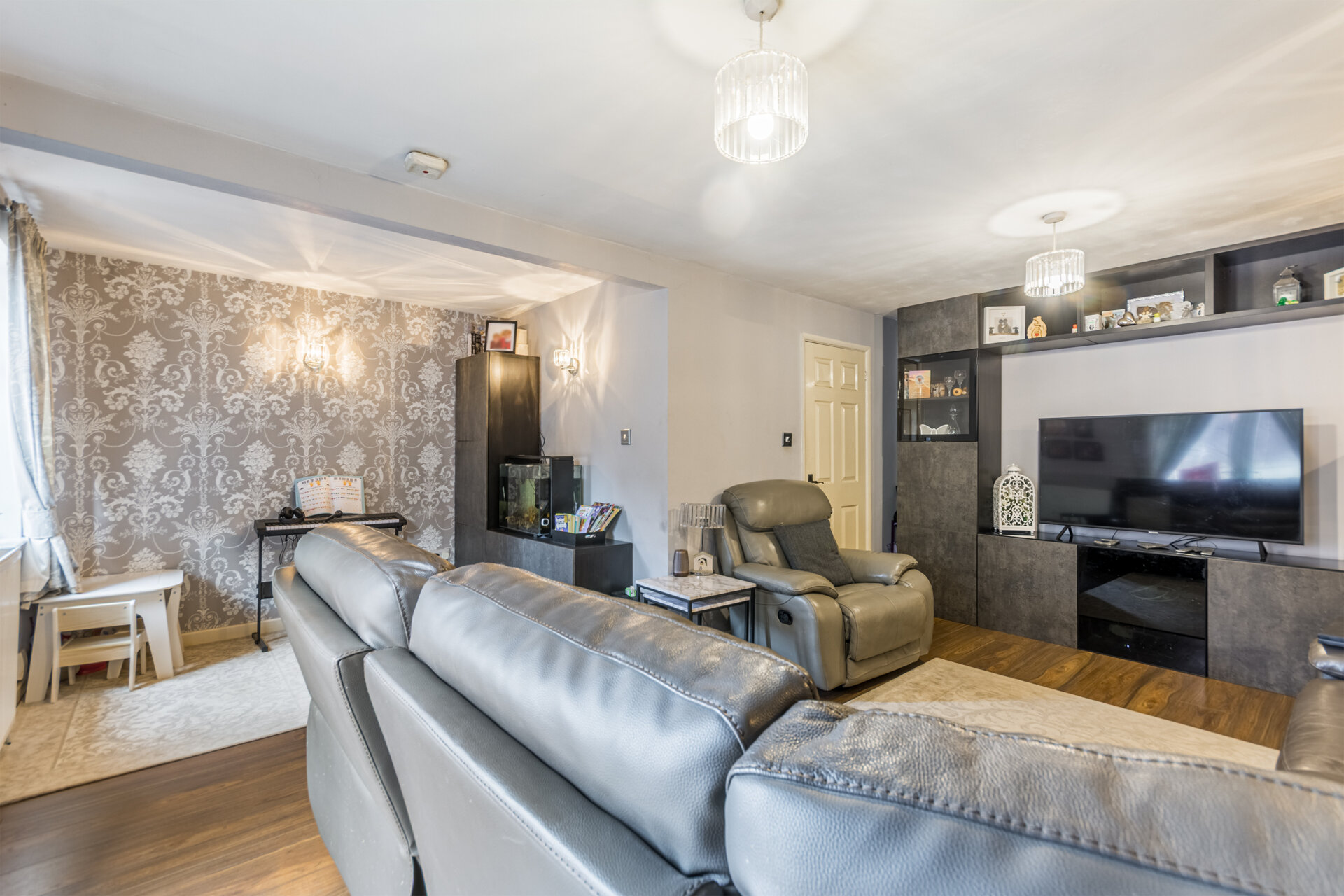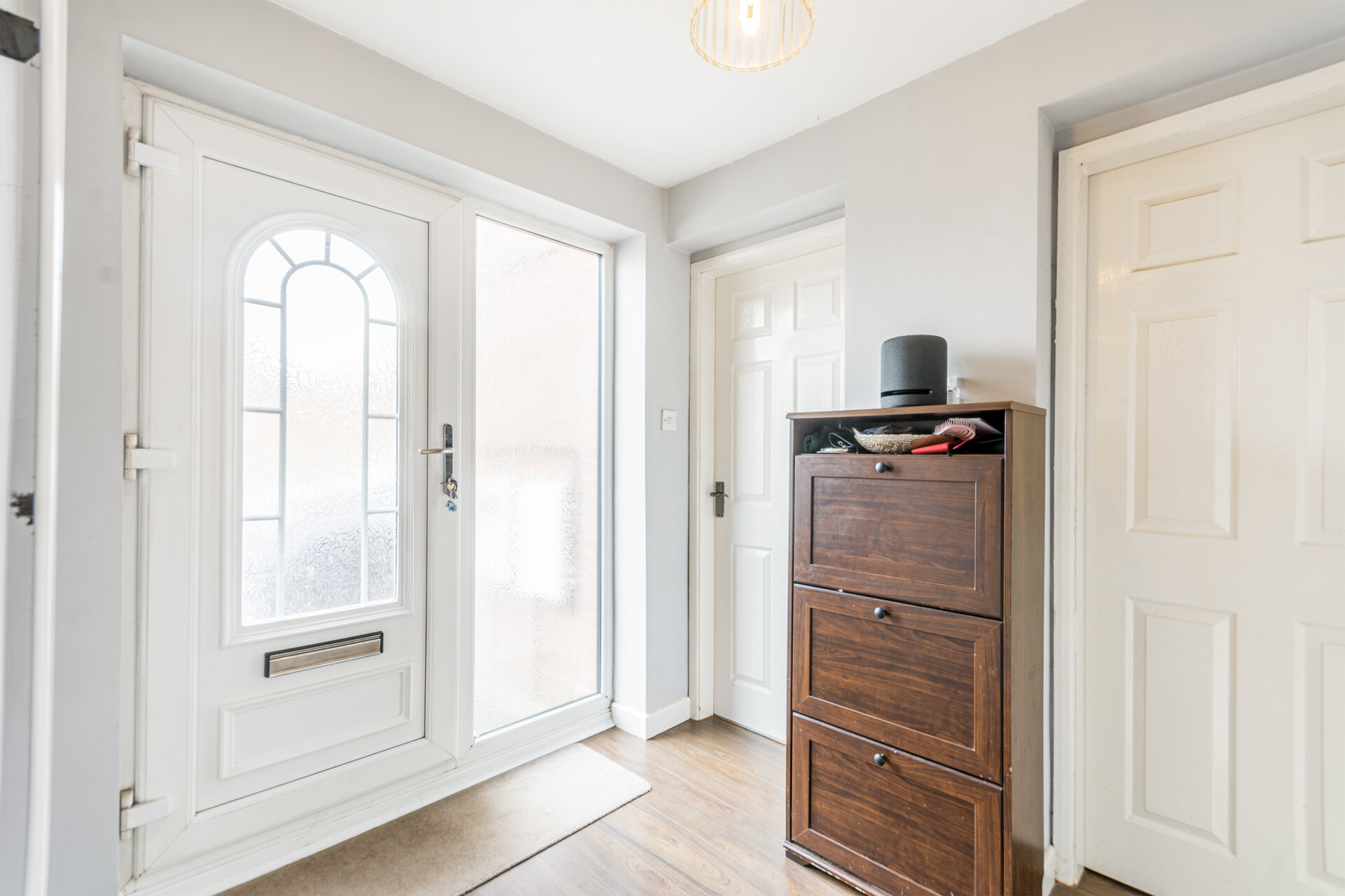Double glazed door to enter with window to the side into this bright and spacious hallway, with wood effect flooring and doors to reception rooms.