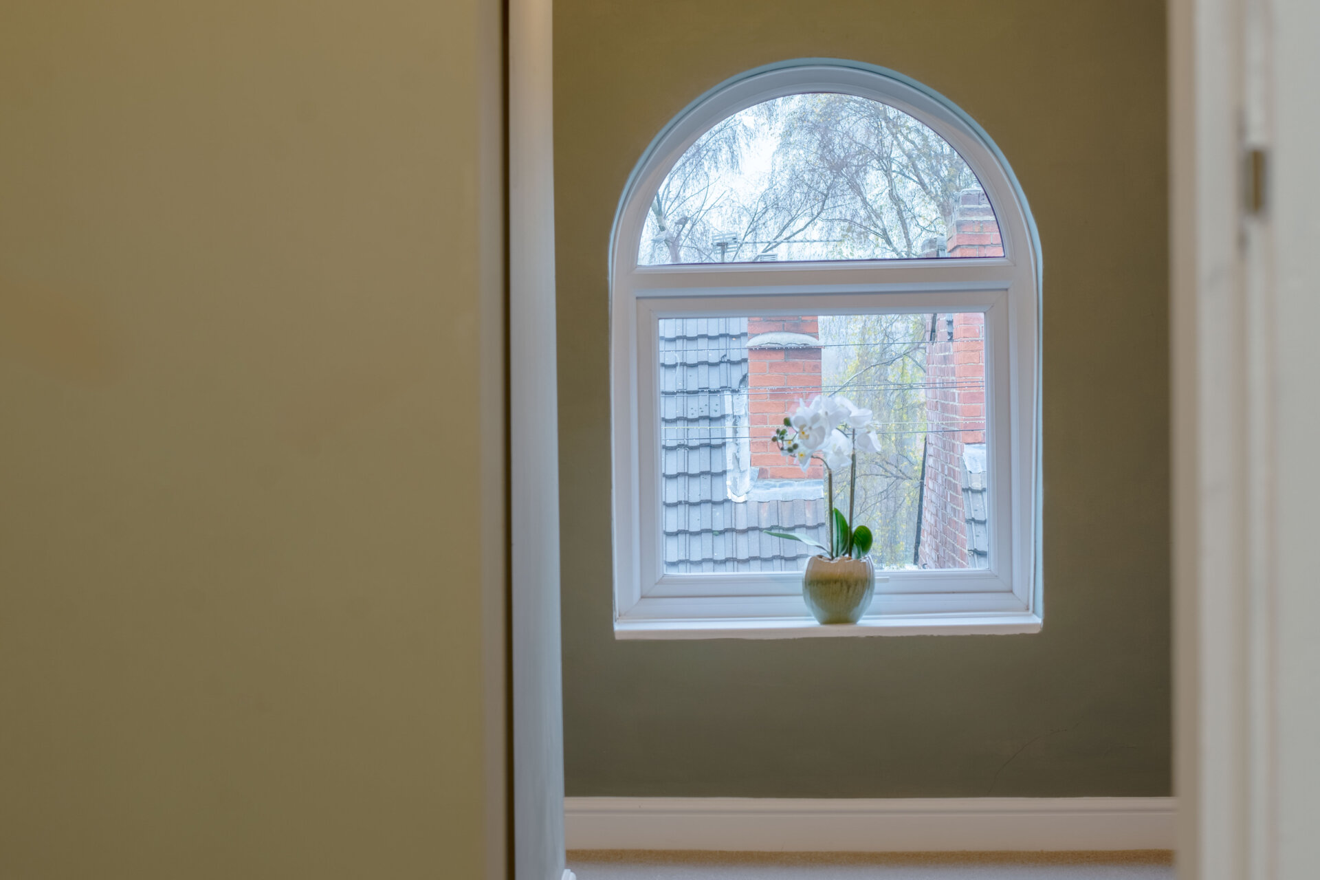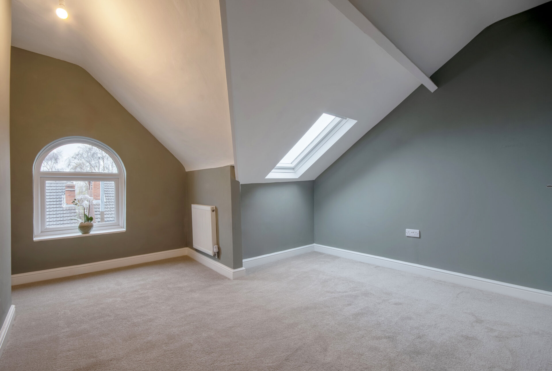 This superb room has so much character and space for a bedroom suite, with newly laid carpet flooring, curved feature double glazed window to the front elevation, radiator and stunning vaulted ceilings.