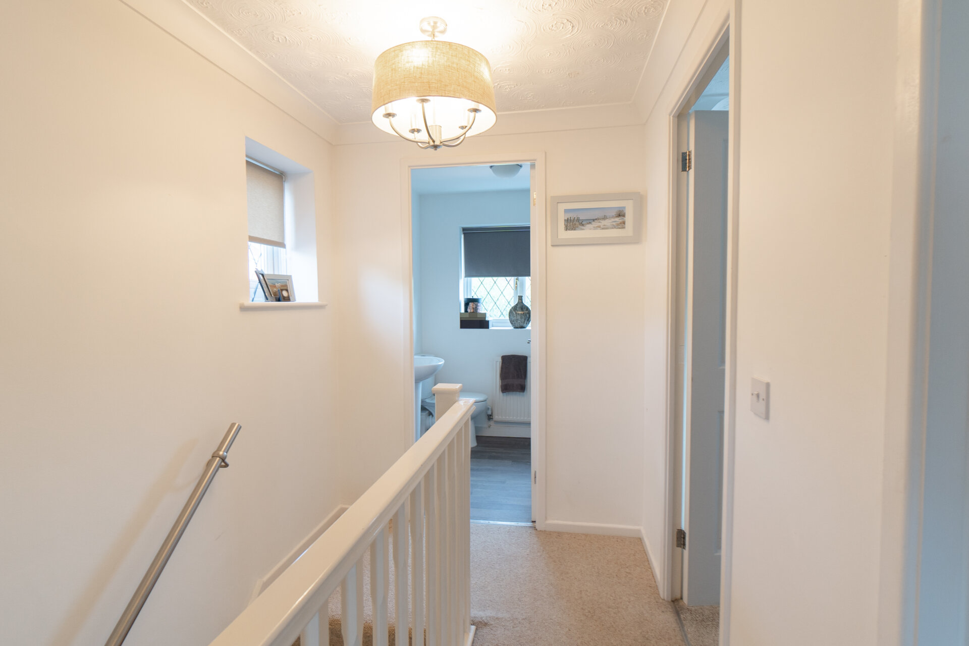 Carpet to both stairs and landing, double glazed window to the left elevation and doors to