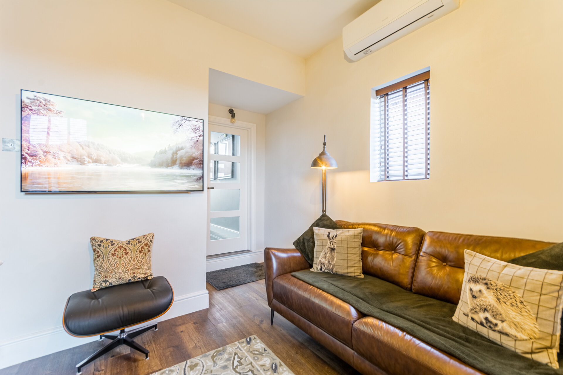 Another fantastic sized reception room, currently used as the lounge, high ceiling, chimney breast with wood burner and wood mantle piece, recess alcove to either side, vertical column radiator, double glazed sash window to the rear, air conditioning unit, cctv system and under stair storage, Amtico flooring stairs ascending and door to kitchen.