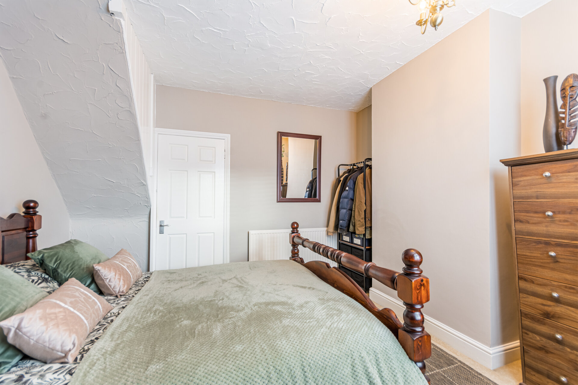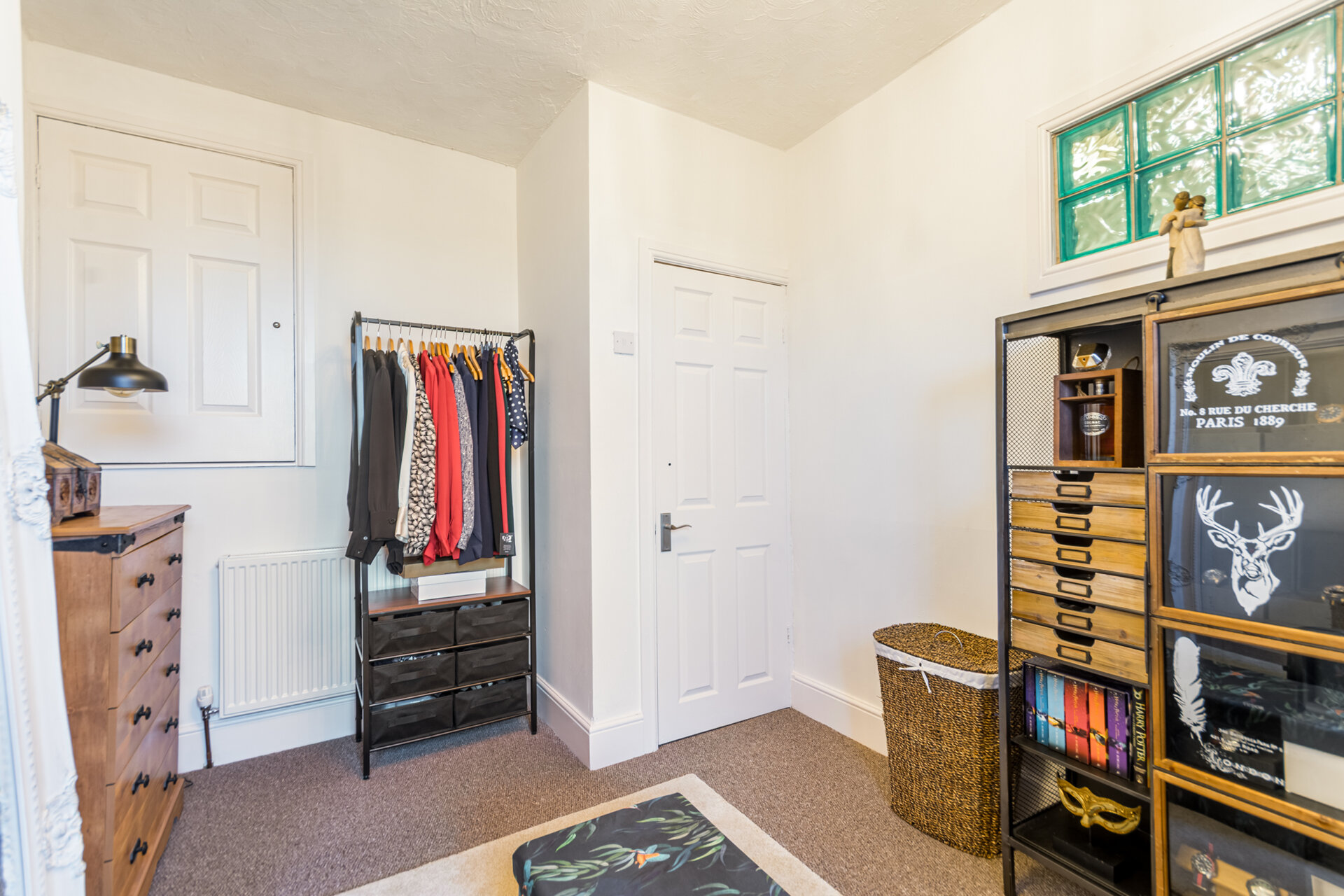 Another double bedroom with carpet flooring, double glazed sash window to the rear elevation, radiator, over the stairs cupboard.