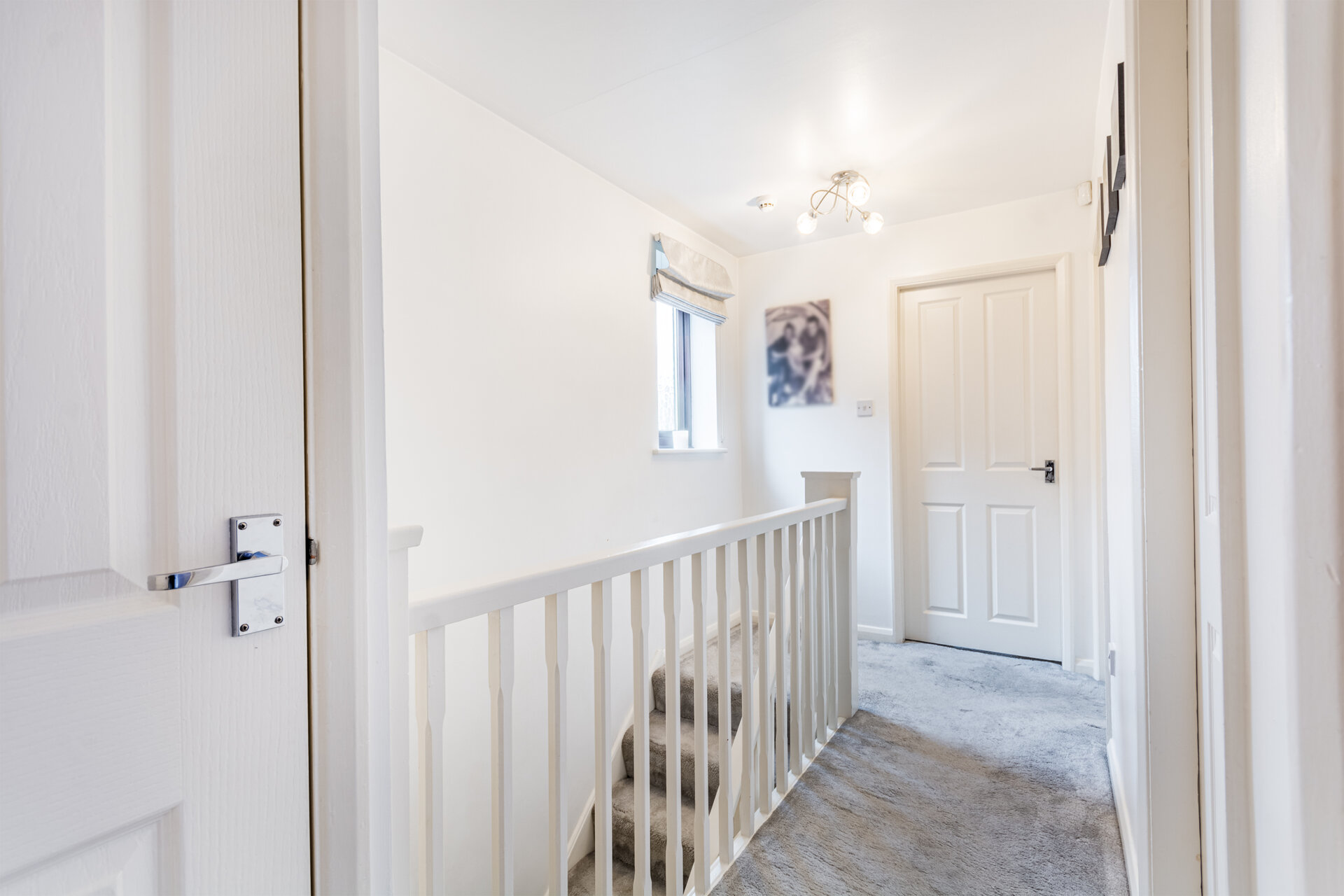 Carpet to both stairs and landing with access to the loft space, airing cupboard housing tank, radiator.