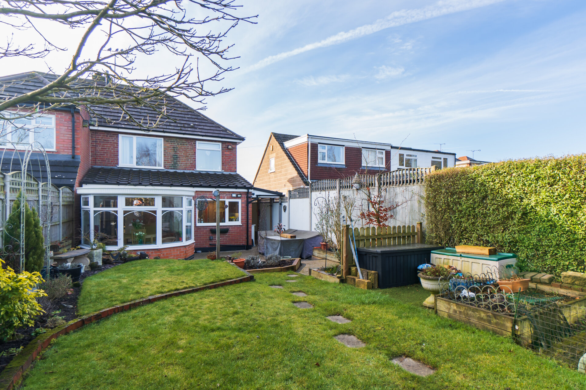 Outside, the property shines with its ample outdoor space, offering a beautifully landscaped garden with a high degree of privacy. The front of the property features a large driveway with lush borders of plants and shrubbery, providing a charming first impression for visitors. An undercover canopy leads from the side door to the rear of the property, offering additional dry storage space and convenient access. The rear of the property boasts a delightful patio area, ideal for outdoor seating and entertaining, overlooking a meticulously maintained lawn with sleeper borders. A vegetable plot and hardstanding area for a greenhouse add practicality to the outdoor space, while fencing surrounds the boundary, ensuring security and privacy. With open aspects to the rear, residents can enjoy peaceful views and serene surroundings, making this property a true oasis for relaxation and enjoyment.