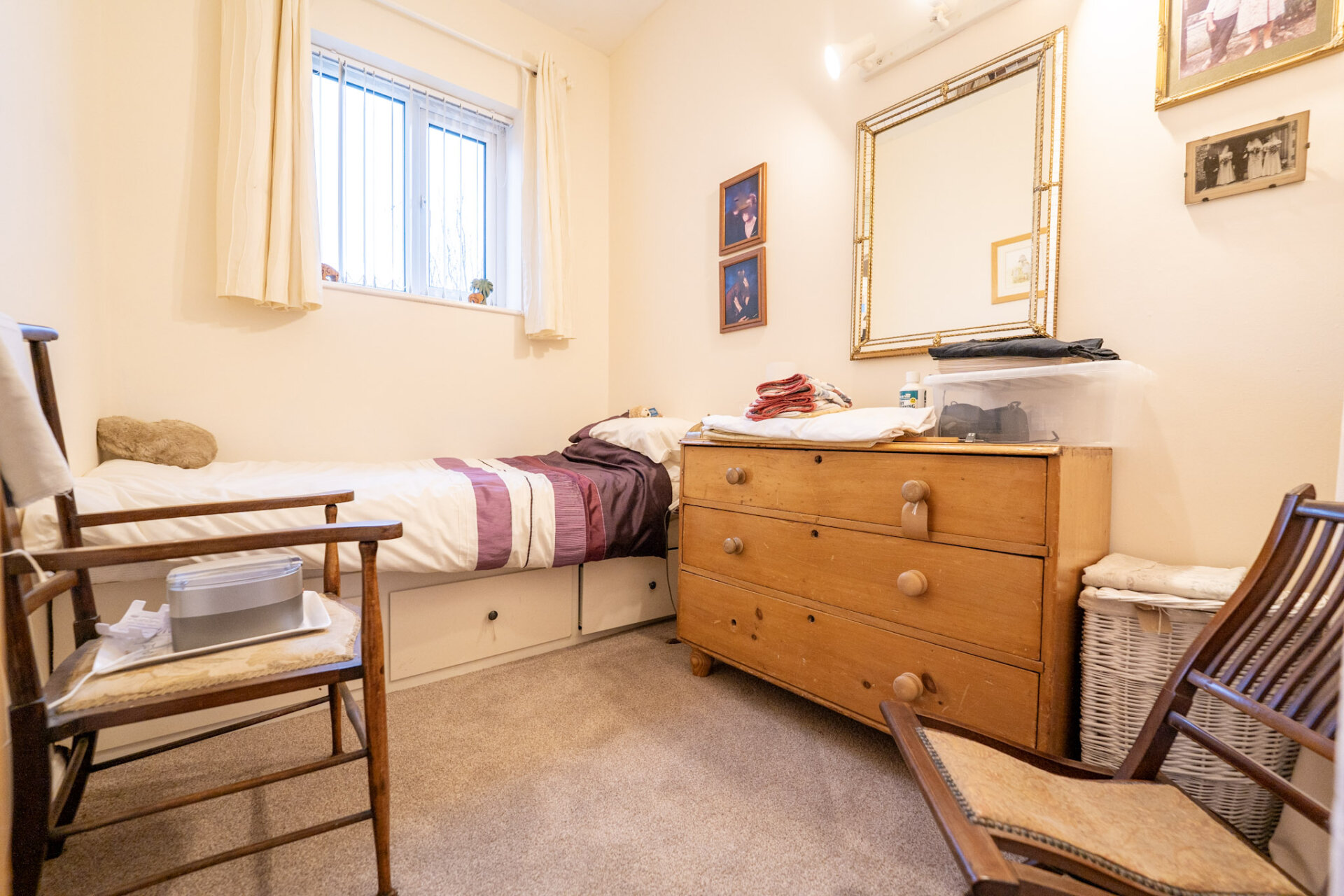 Currently used as an office, but has been a bedroom with a door to the wet room (door currently filled in) radiator, wood effect laminate flooring, stained glass double glazed window to the right elevation and double glazed window to the rear.